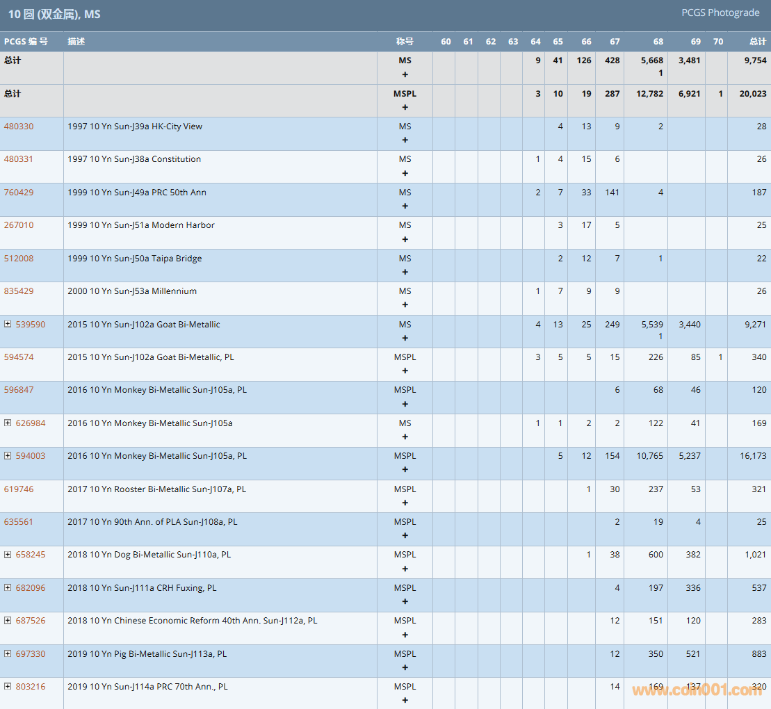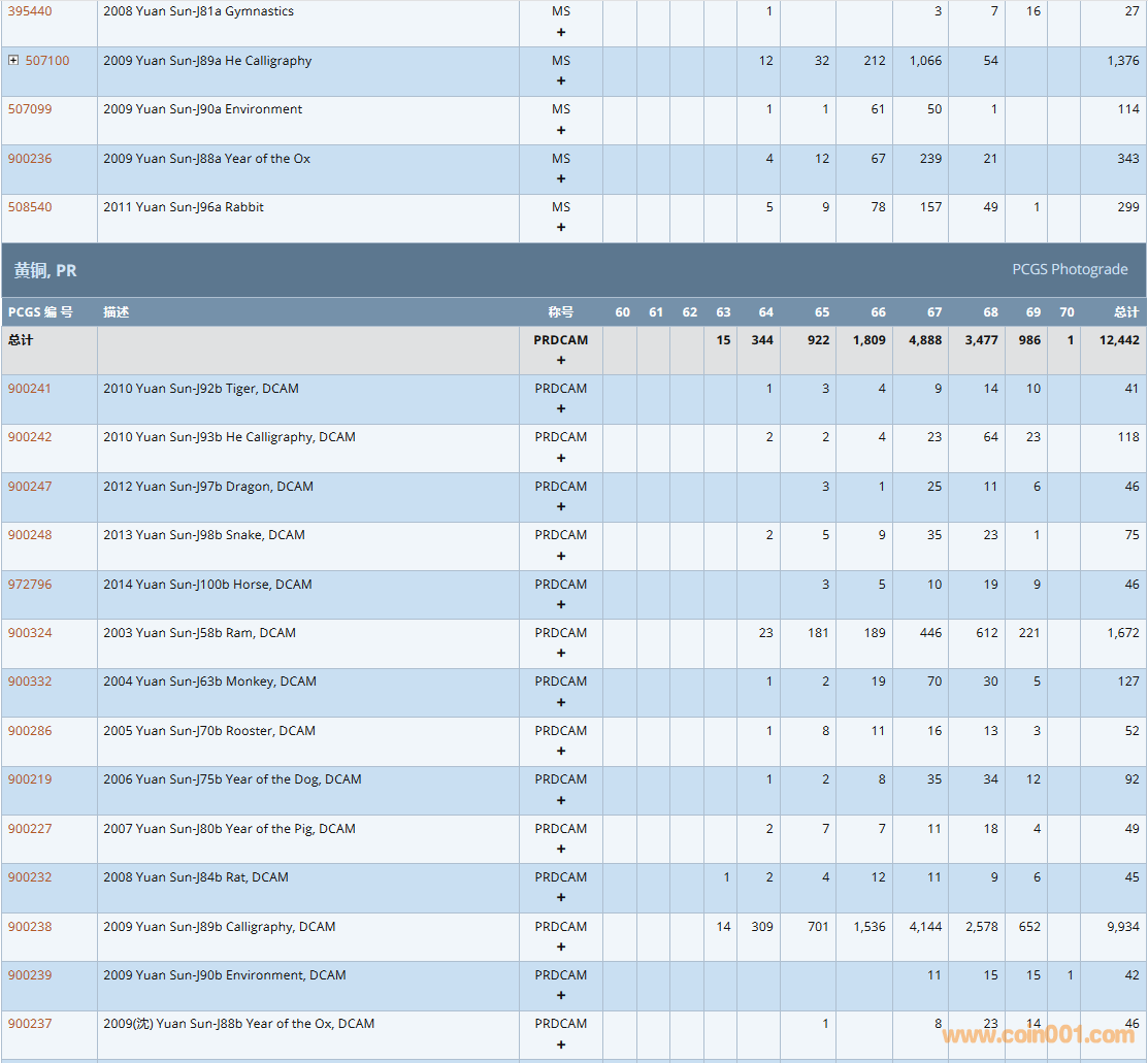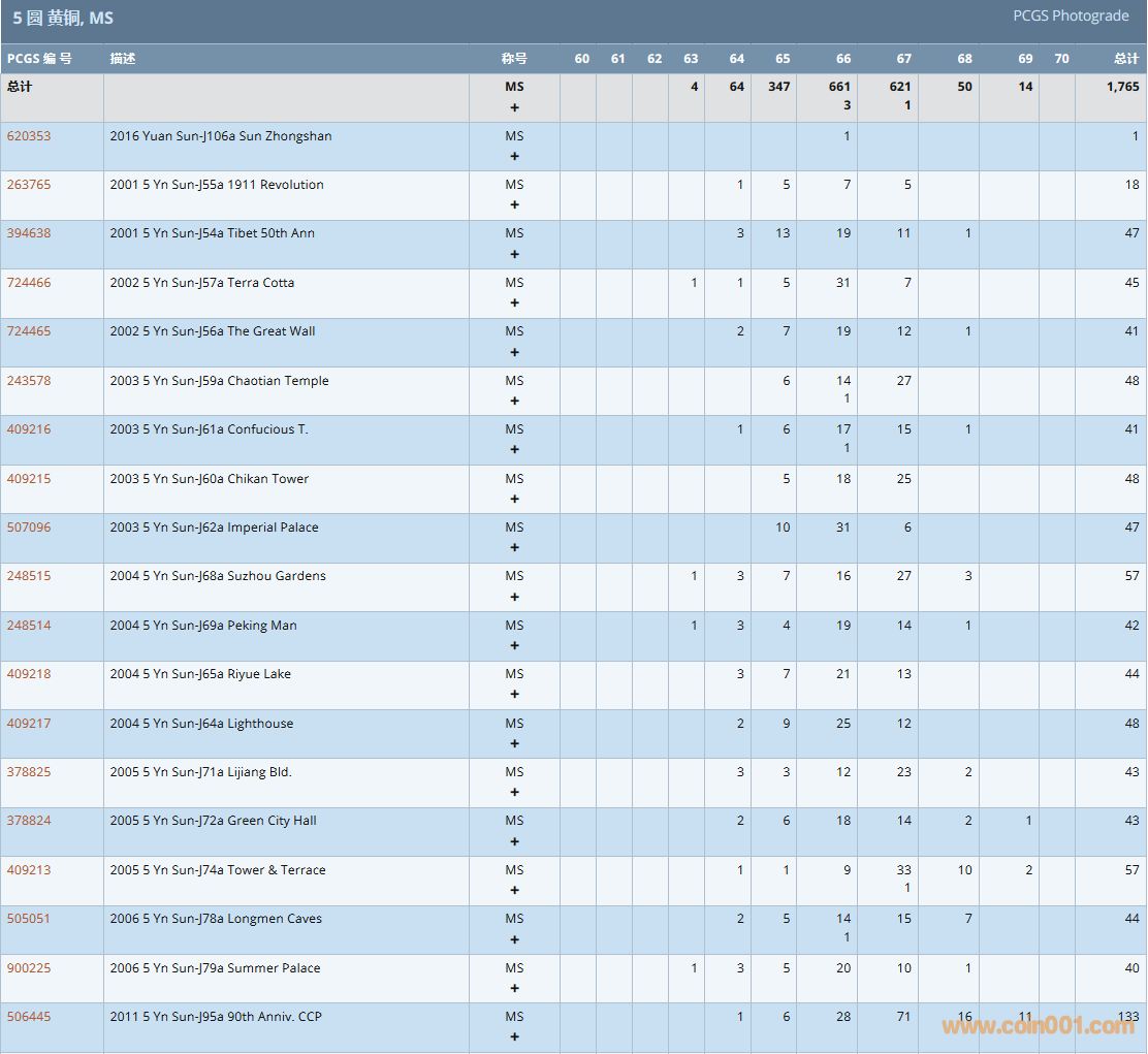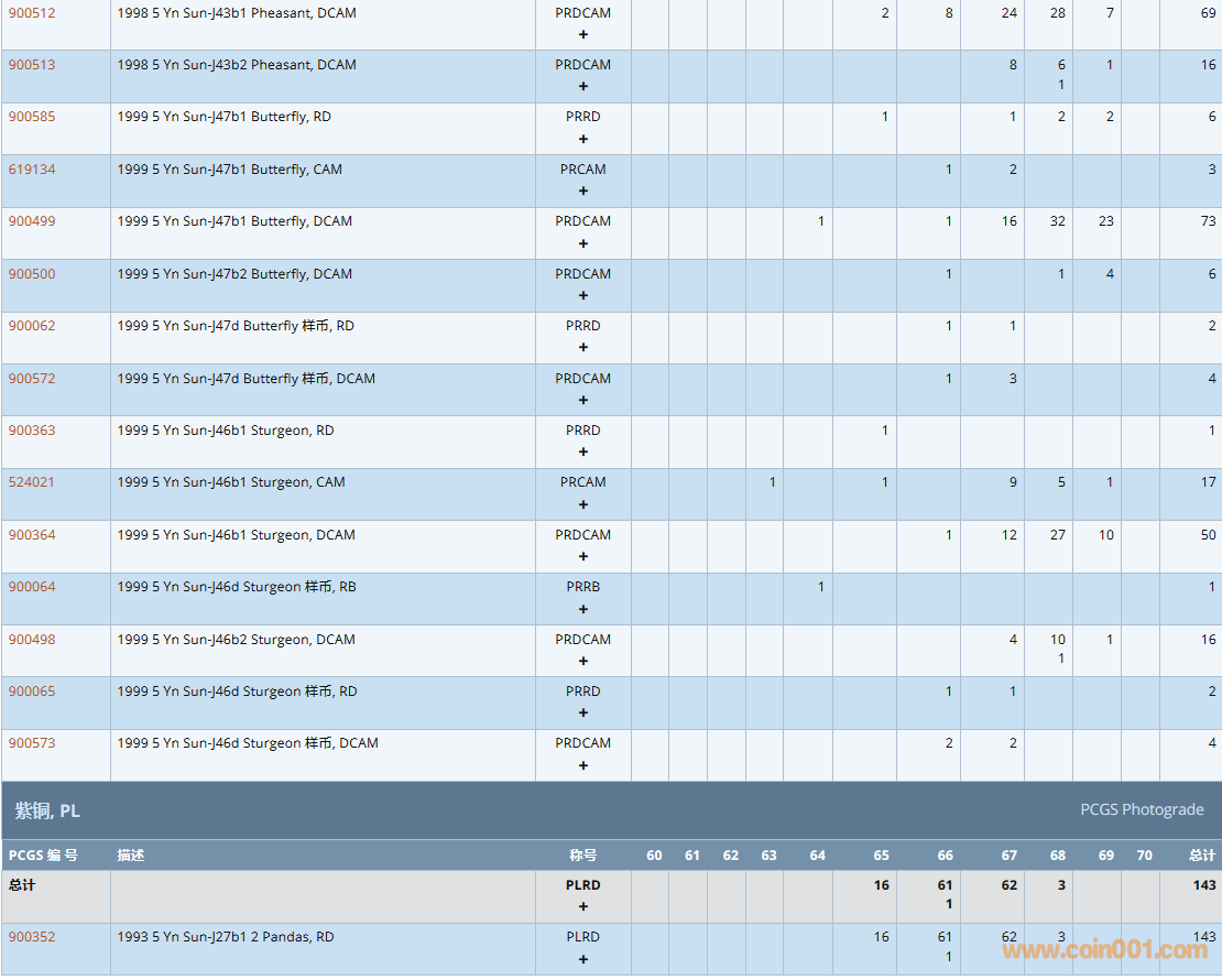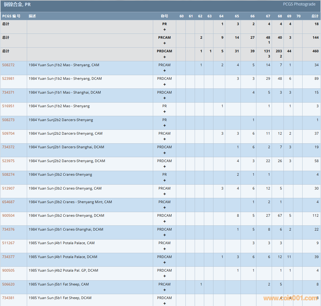 PCGS硬幣評級數(shù)量報告( ..