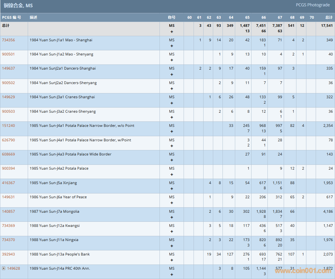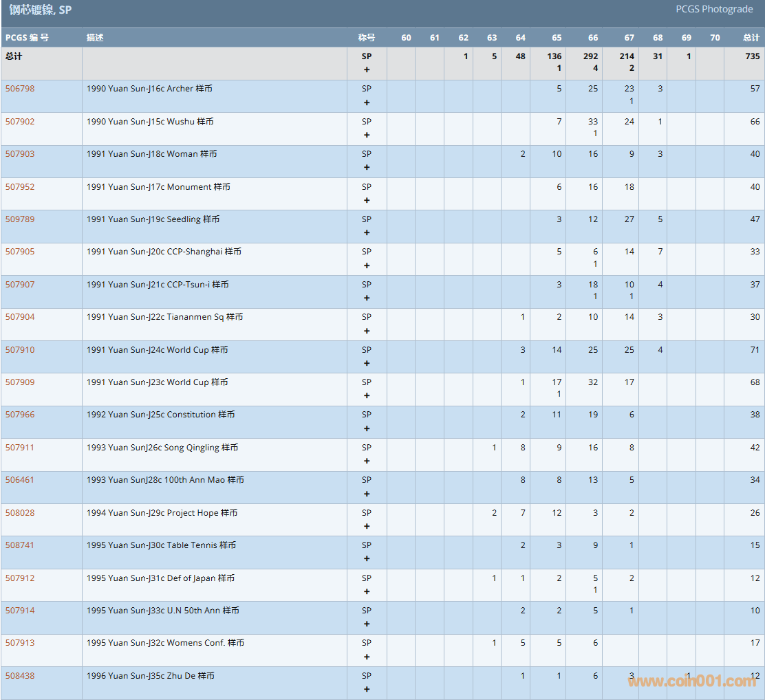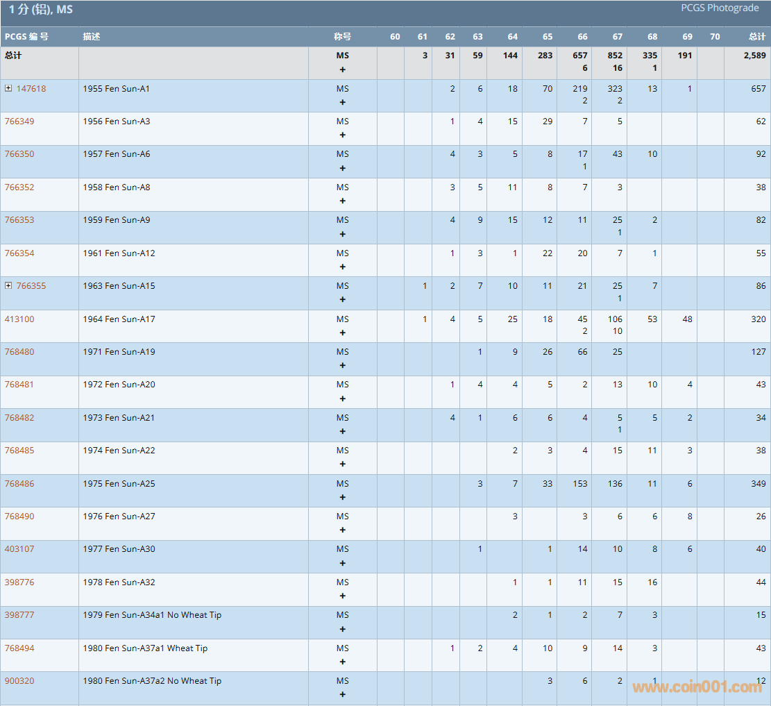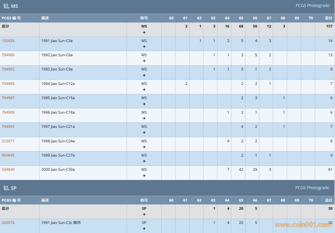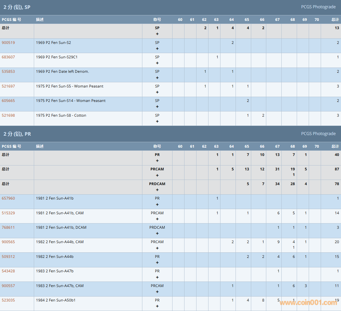 PCGS硬幣評級數(shù)量報告( ..