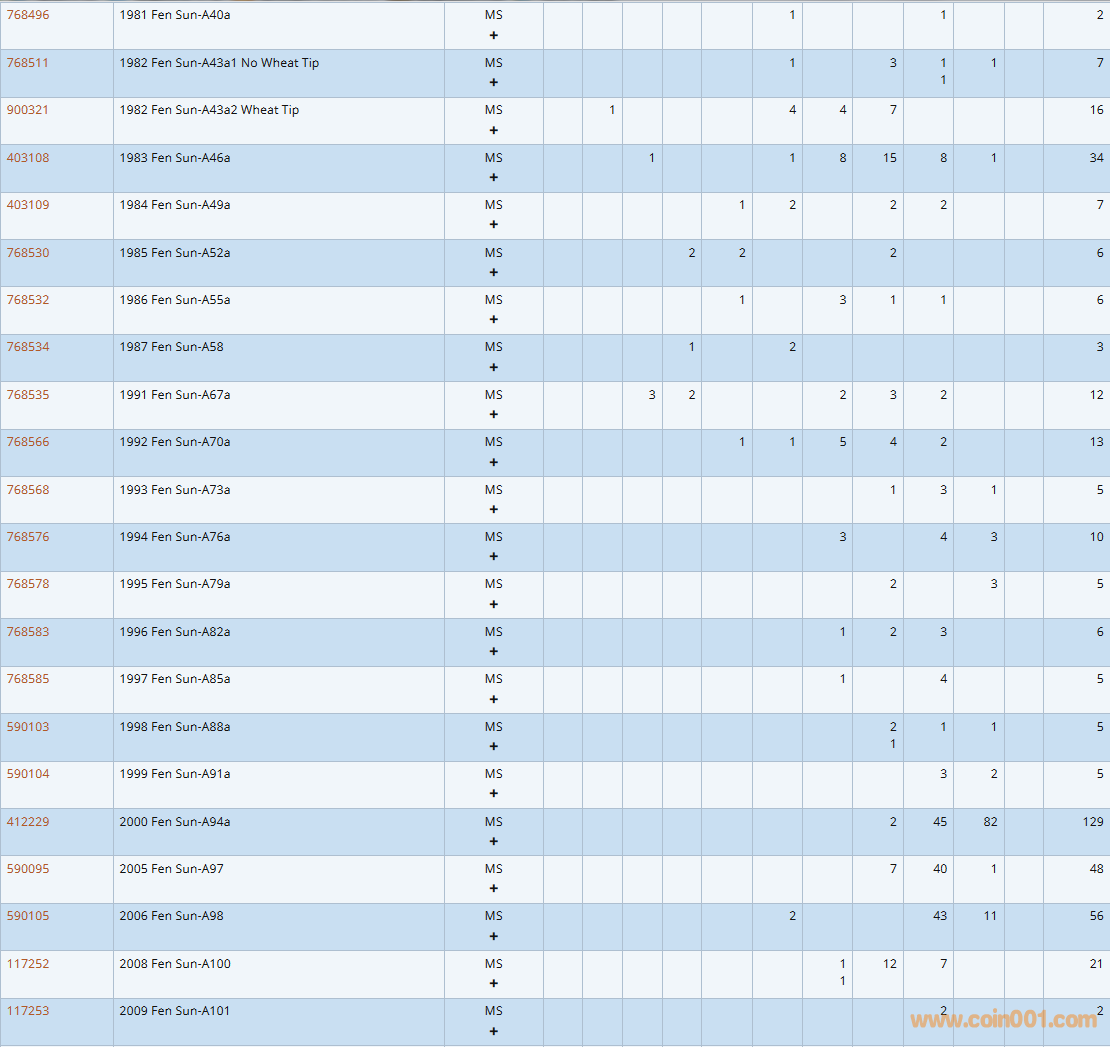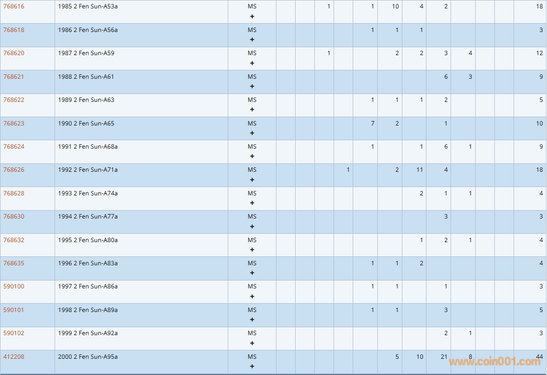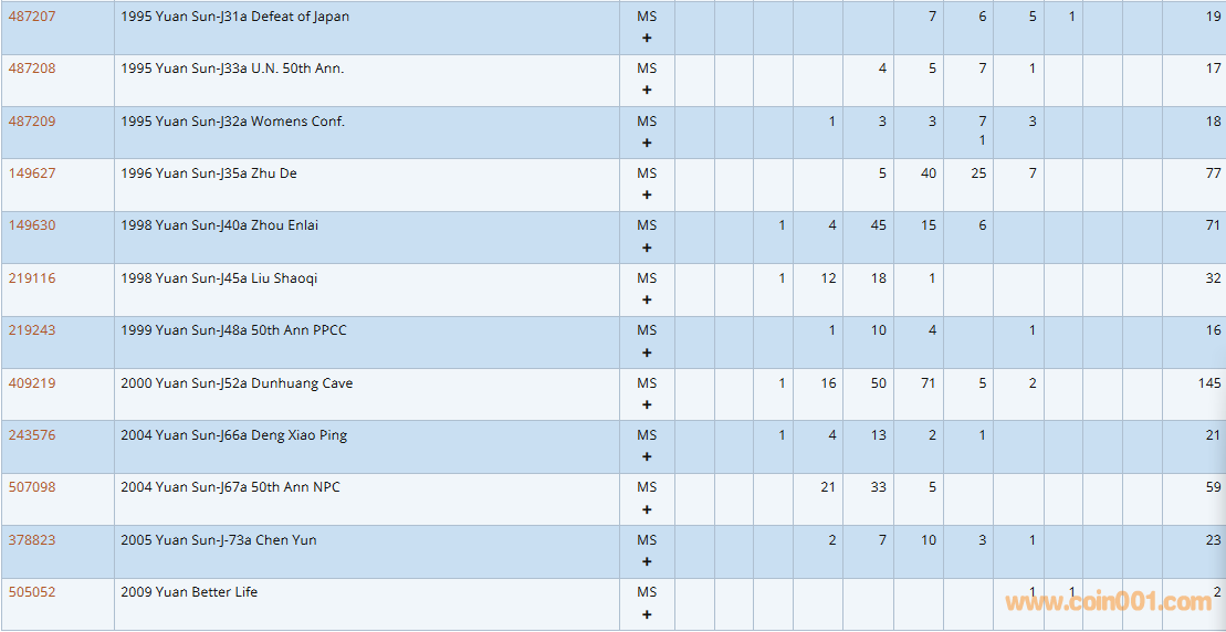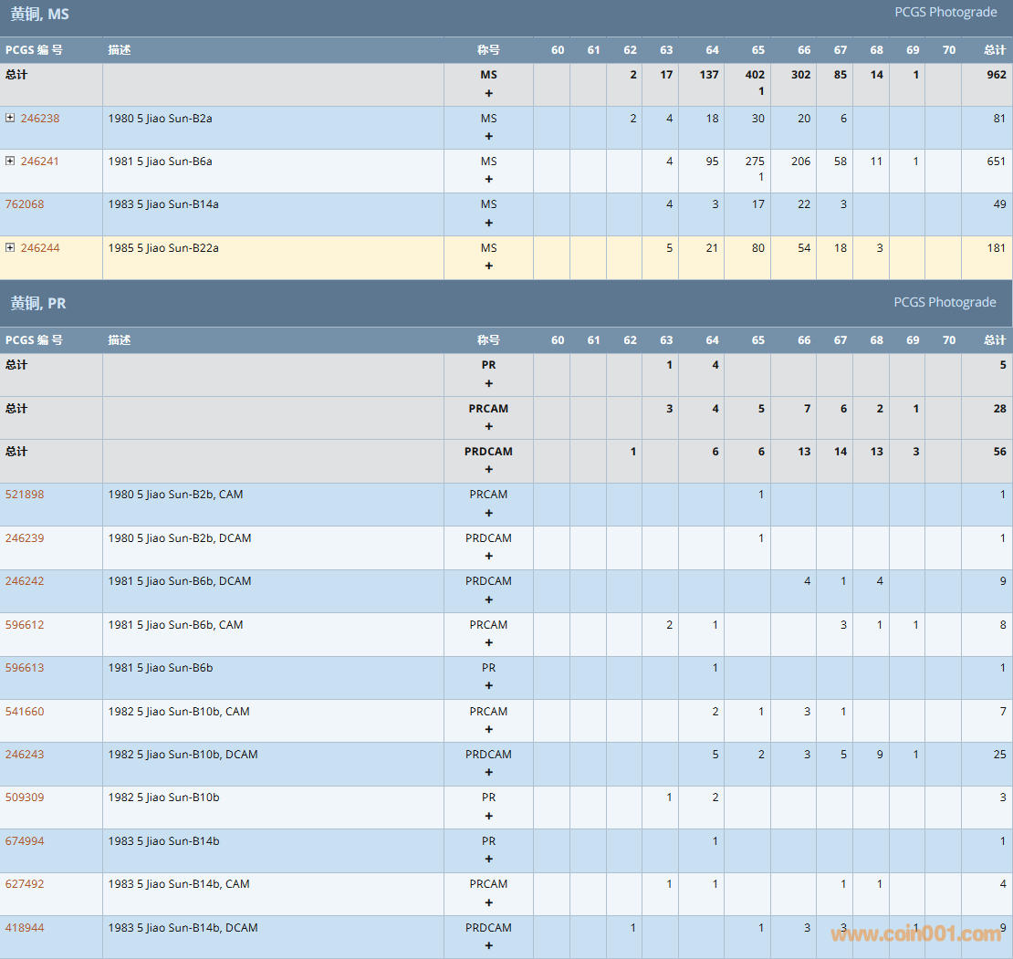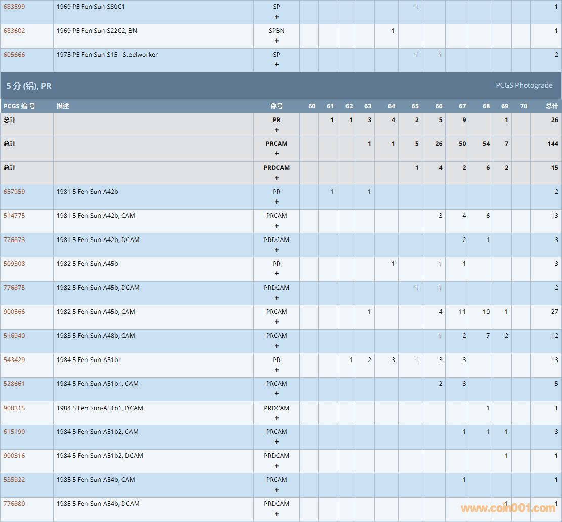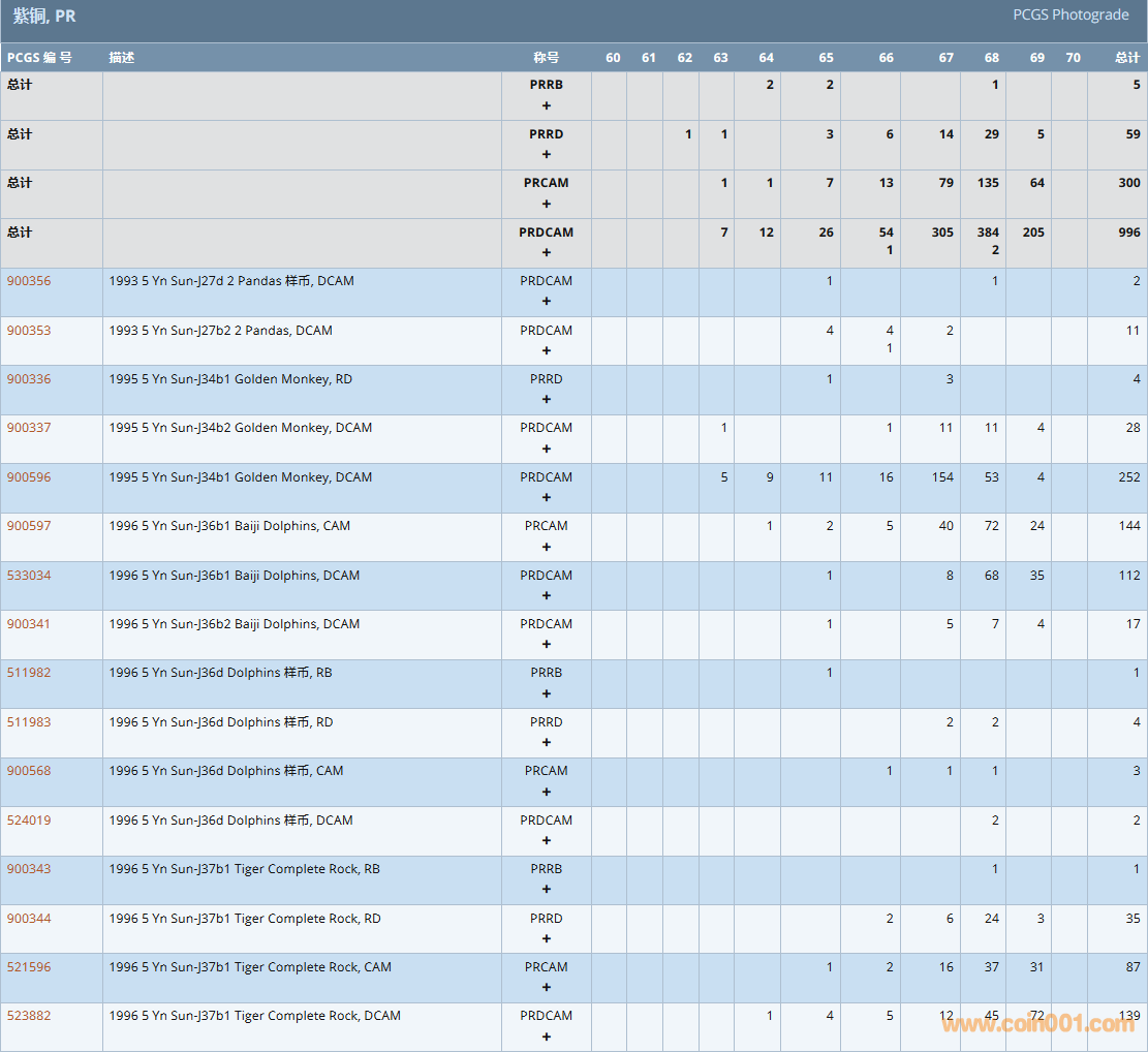 PCGS硬幣評級數(shù)量報告( ..