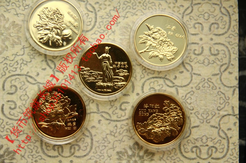 這套銅章巧妙的把武則天的故事\牡丹花卉\龍門石窟結合在一起,