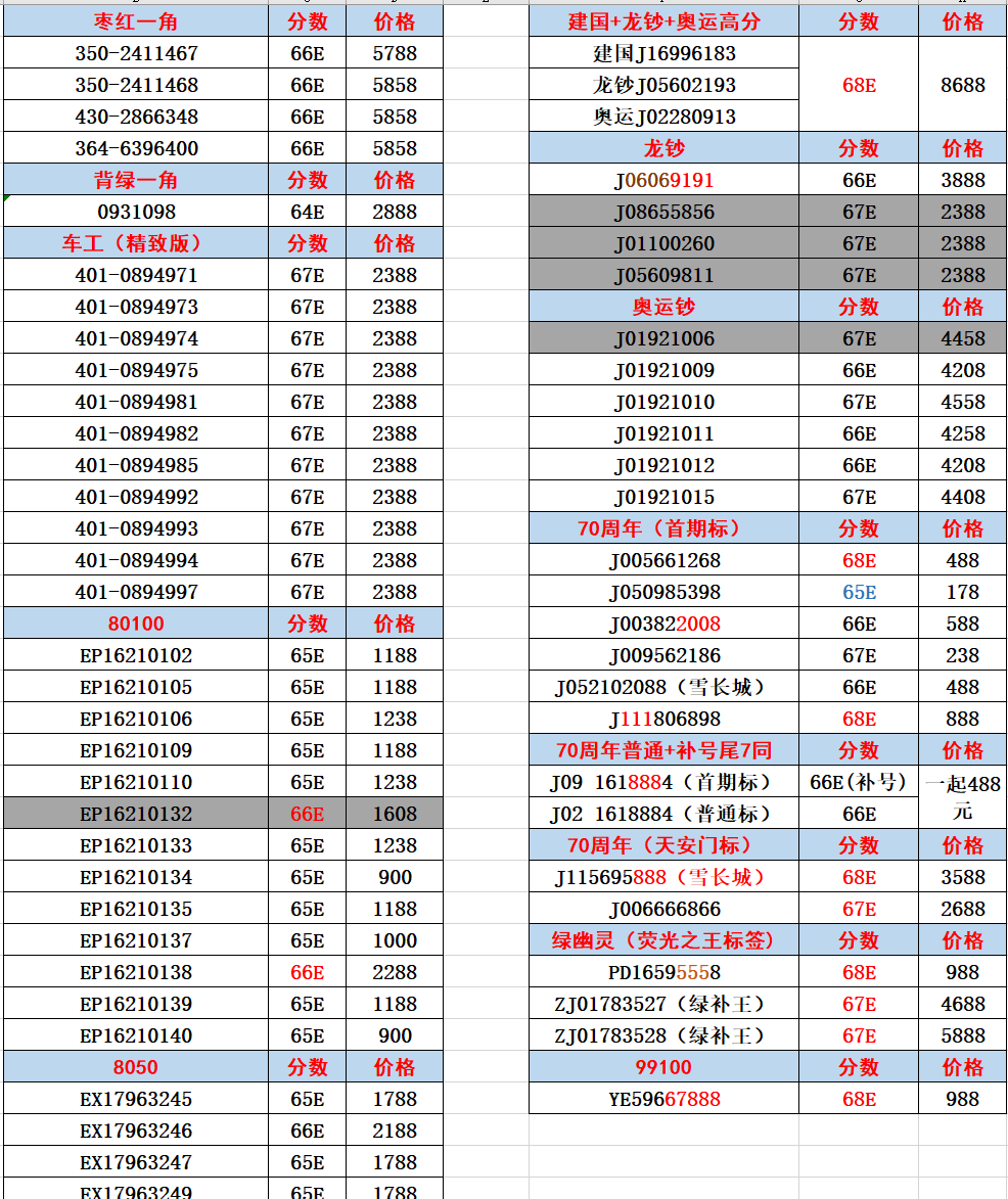 評級普通(精制)紀念幣交易