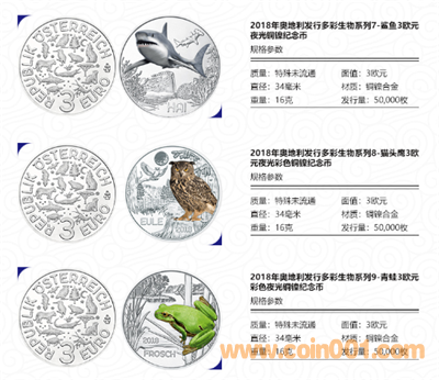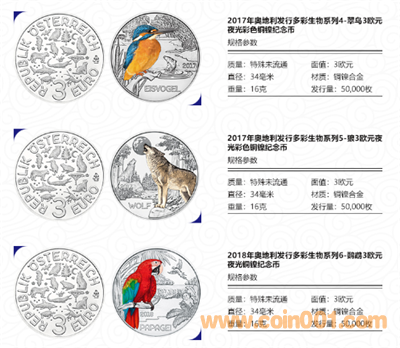 奧地利多彩夜光生物系列3歐元紀念幣, 上一輪12枚于2019年10月成功發(fā)行結(jié)束,5萬枚的發(fā)行量面對世界各國的收藏愛好者來說算是稀少品種了。