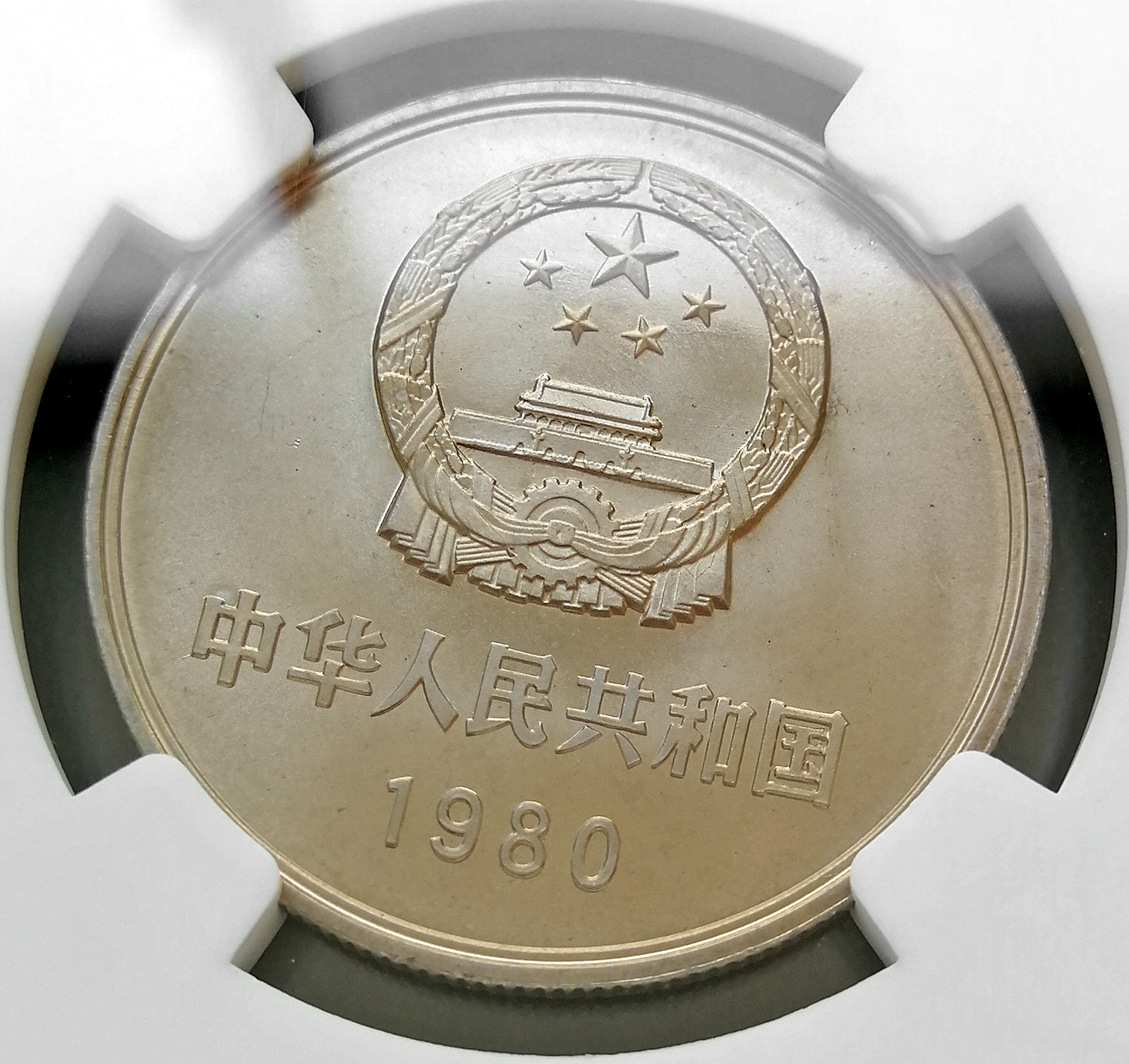 第2種幣如圖2所示,粗看也是初鑄狀態(tài),但細(xì)看就能發(fā)現(xiàn),長(zhǎng)城面和第1種幣基本無(wú)異,而國(guó)徽面存在明顯