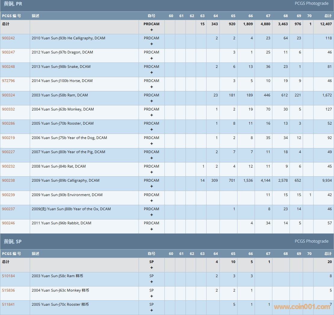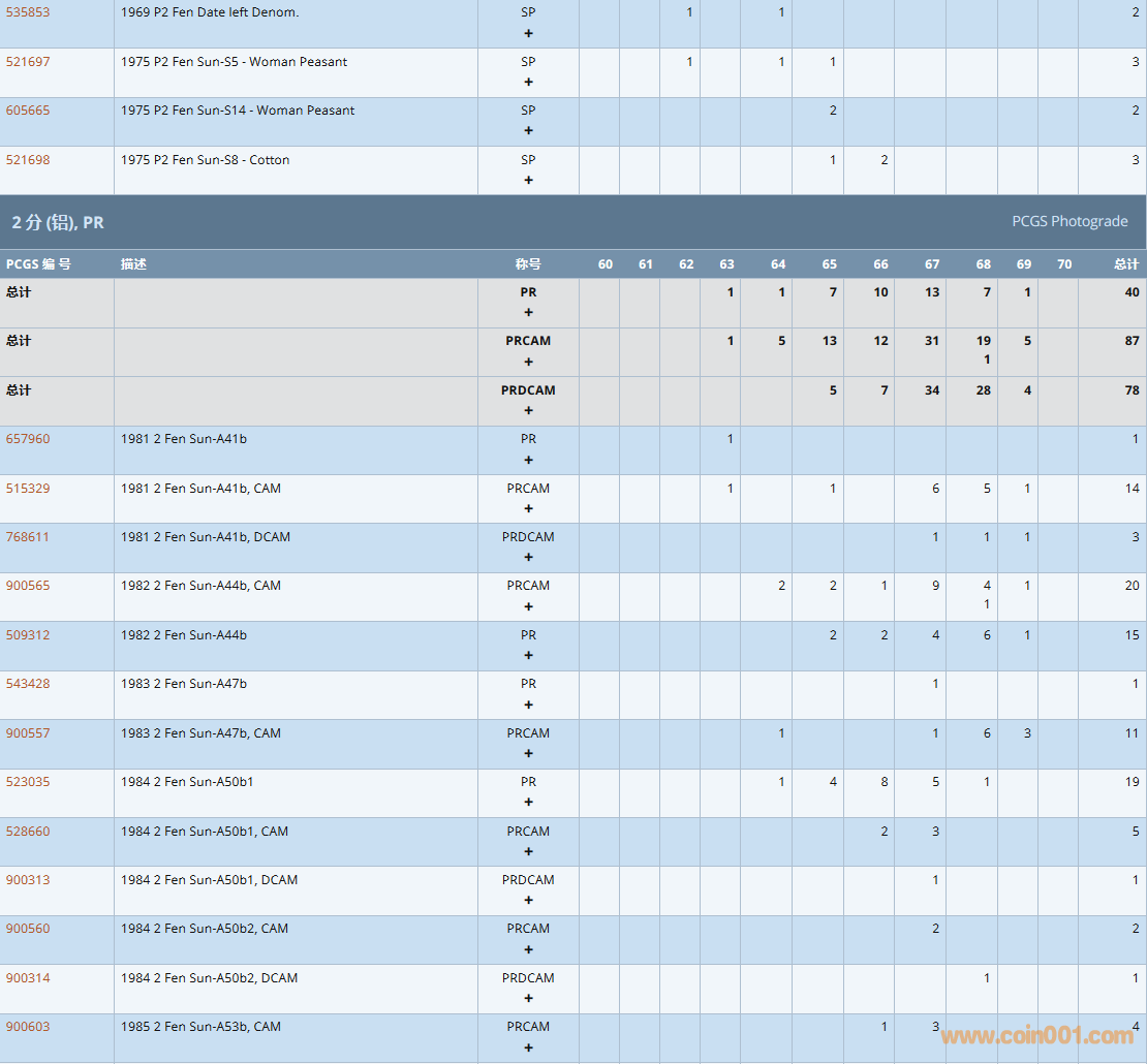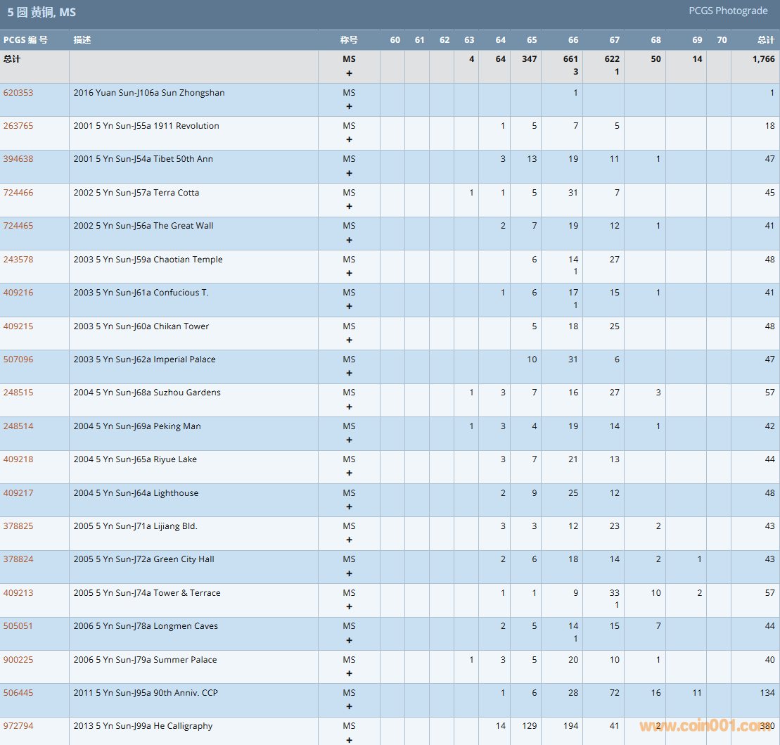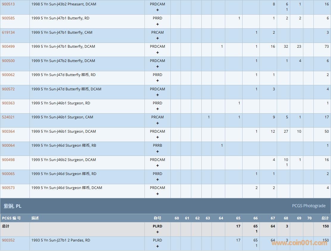 PCGS硬幣評級數量報告( ..