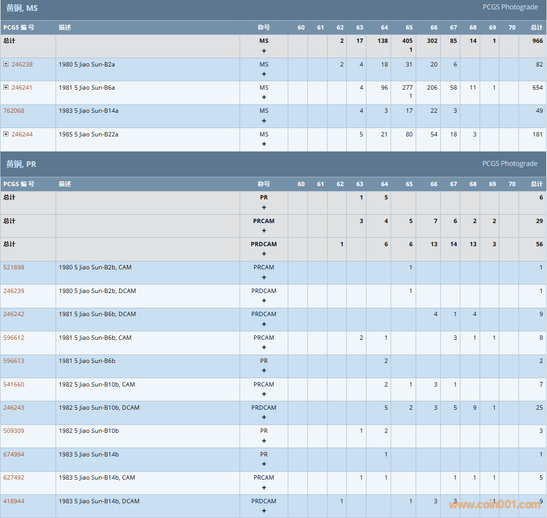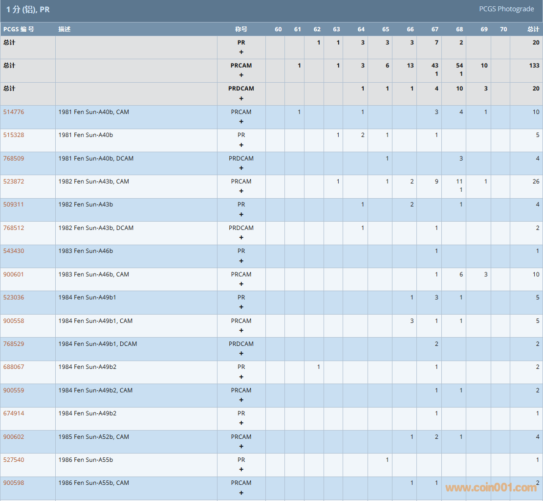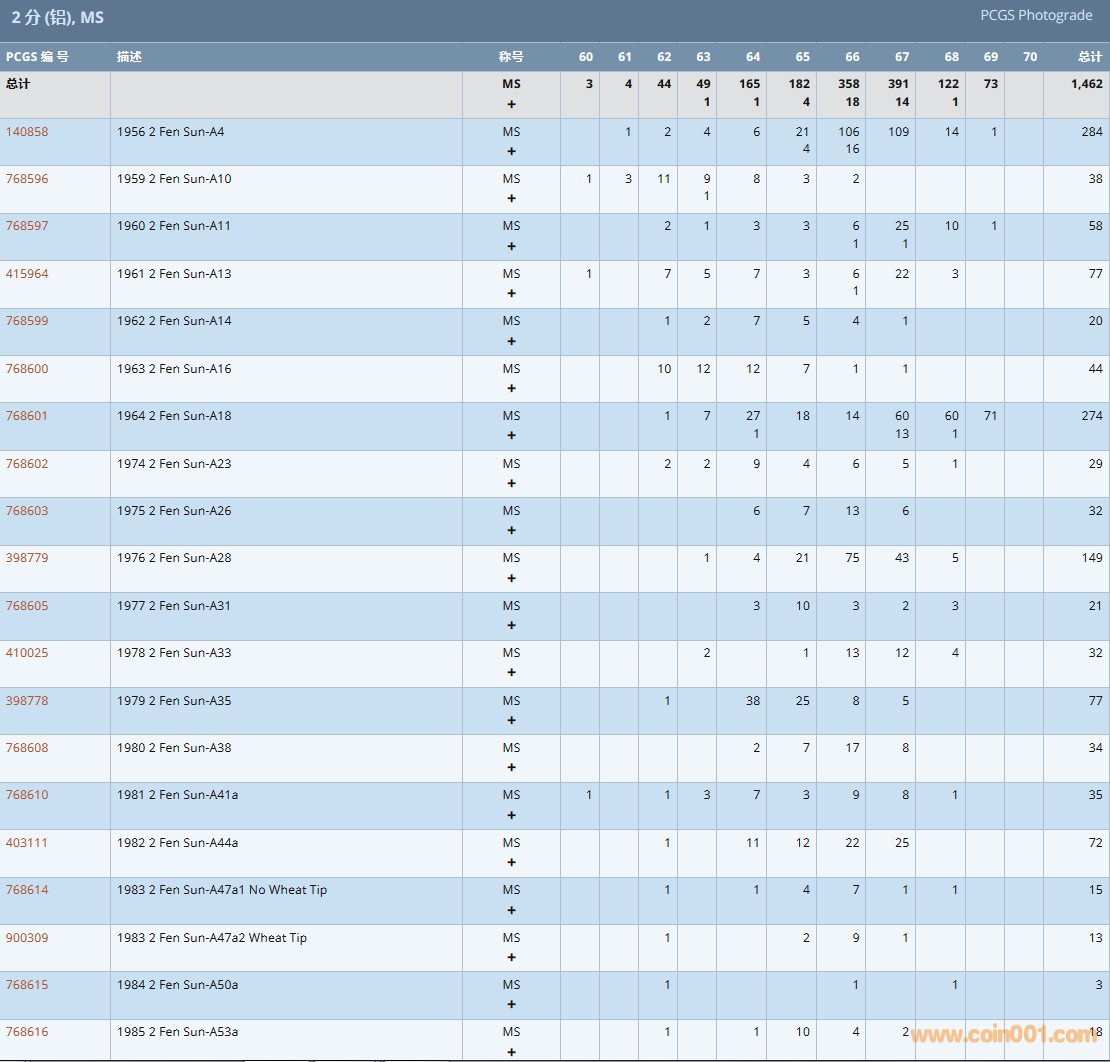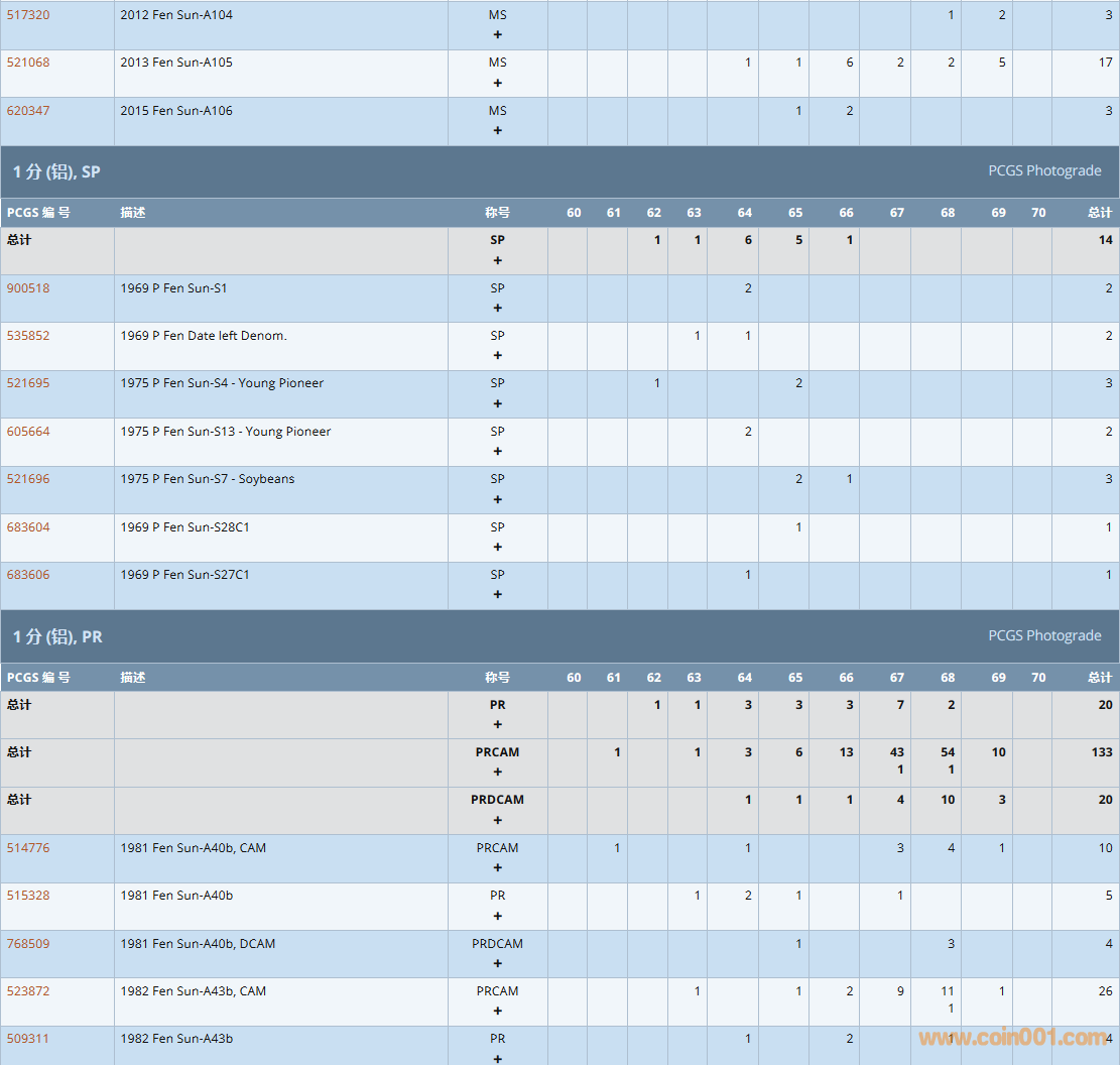 PCGS硬幣評級數量報告( ..
