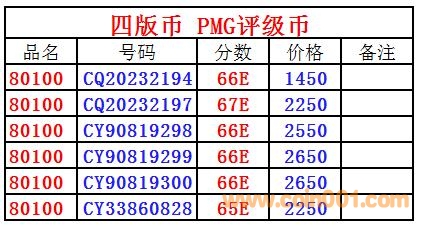 【新貨】PMG65/66/67E 8010 ..