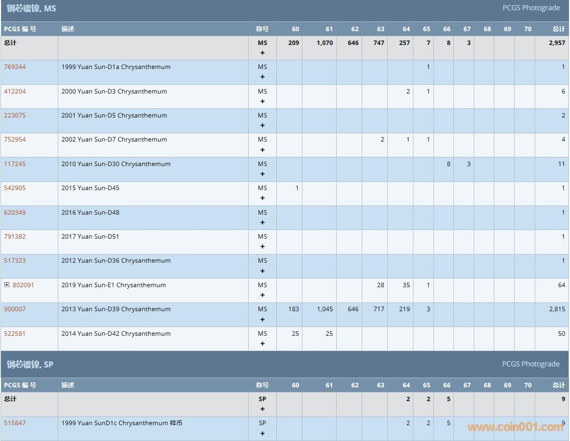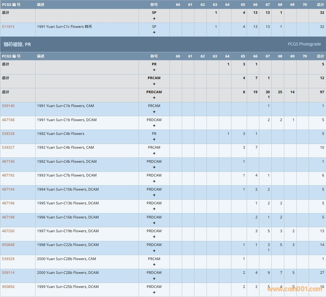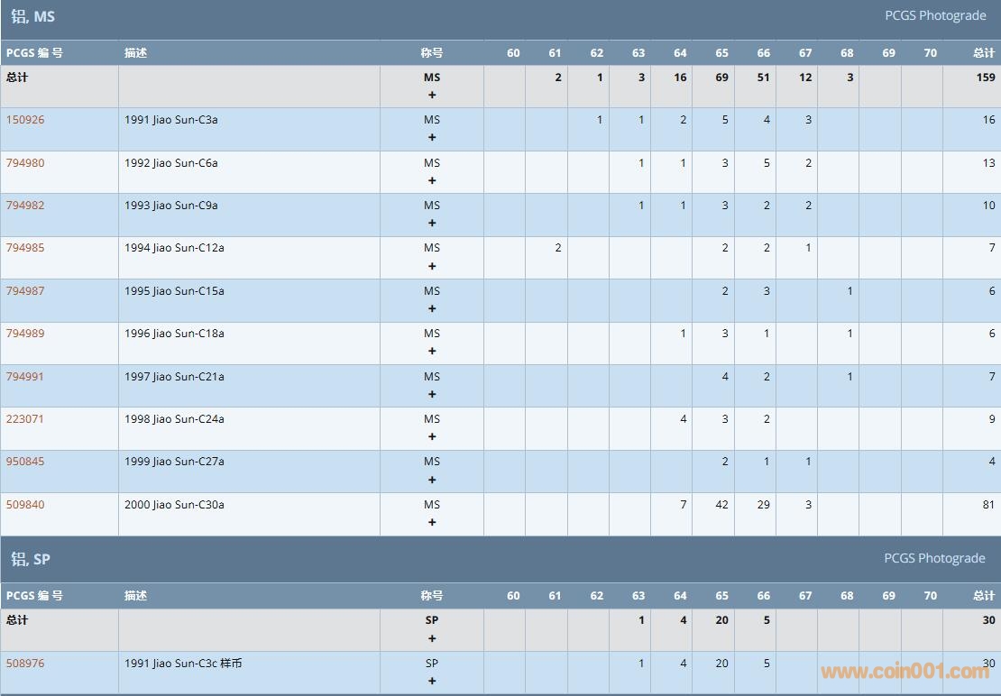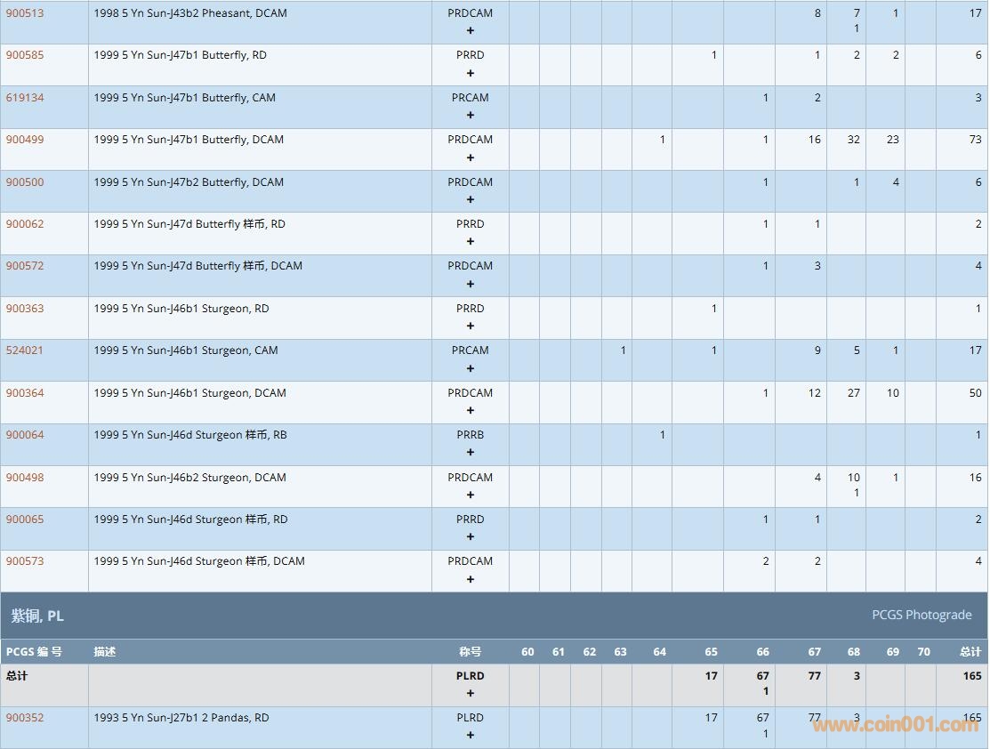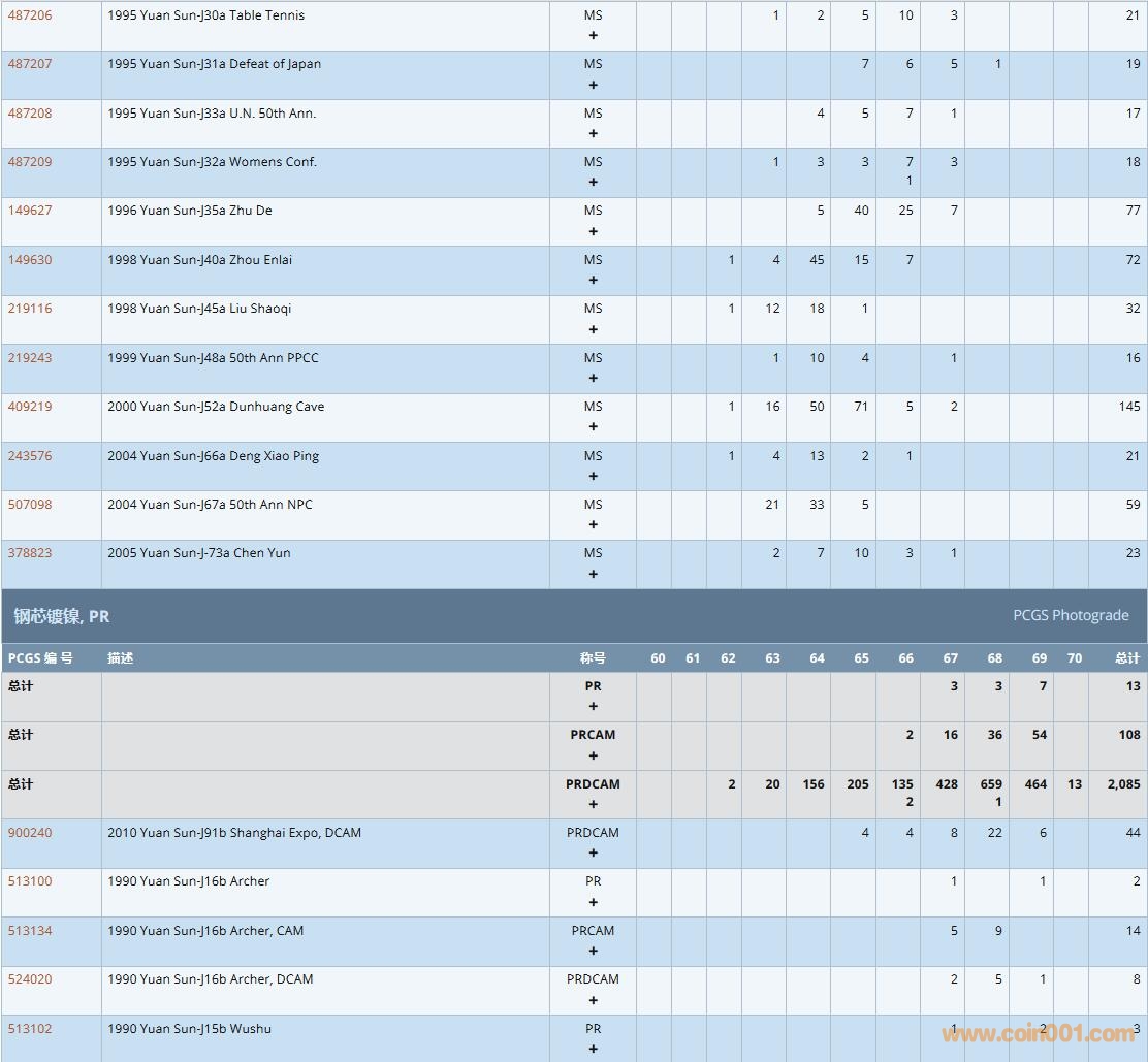 PCGS硬幣評級數(shù)量報告( ..