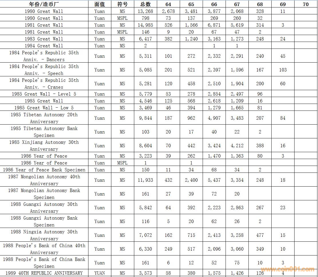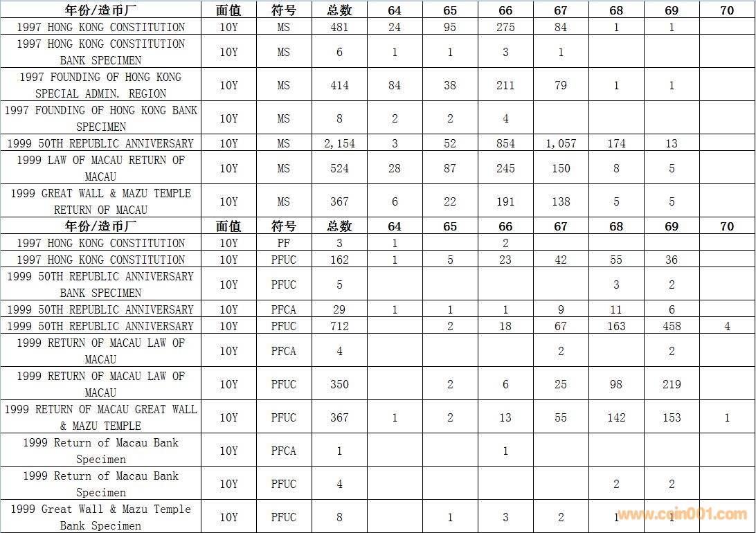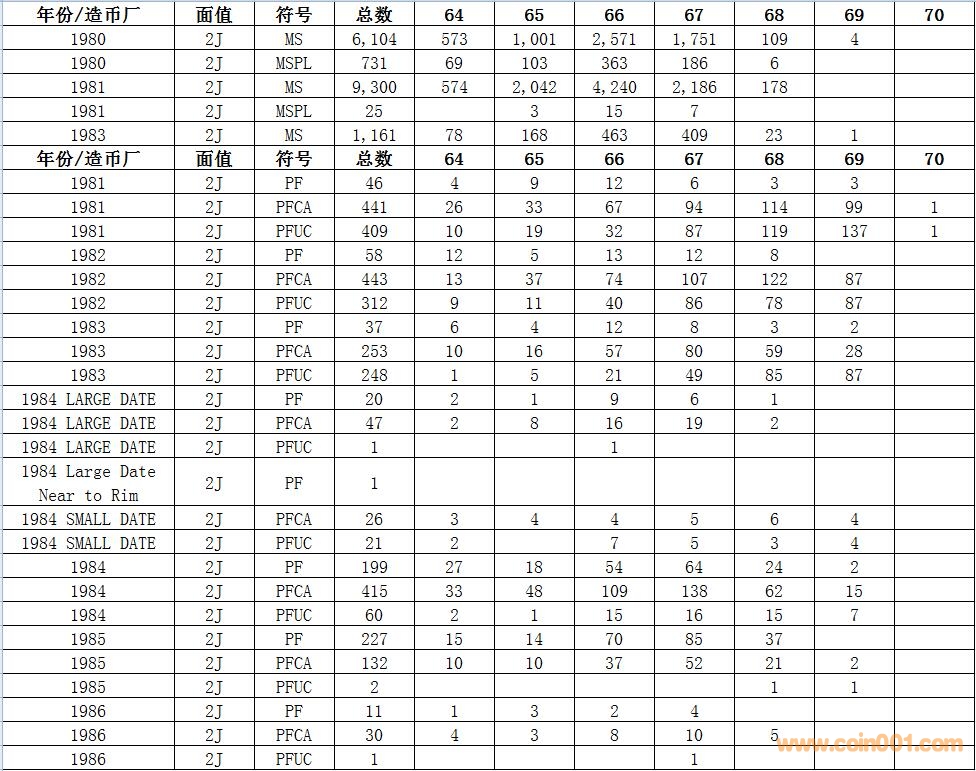 NGC硬幣評級數量報告 ..