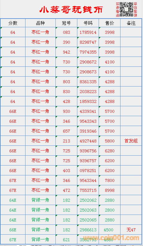 連號棗紅一角,背綠 ..