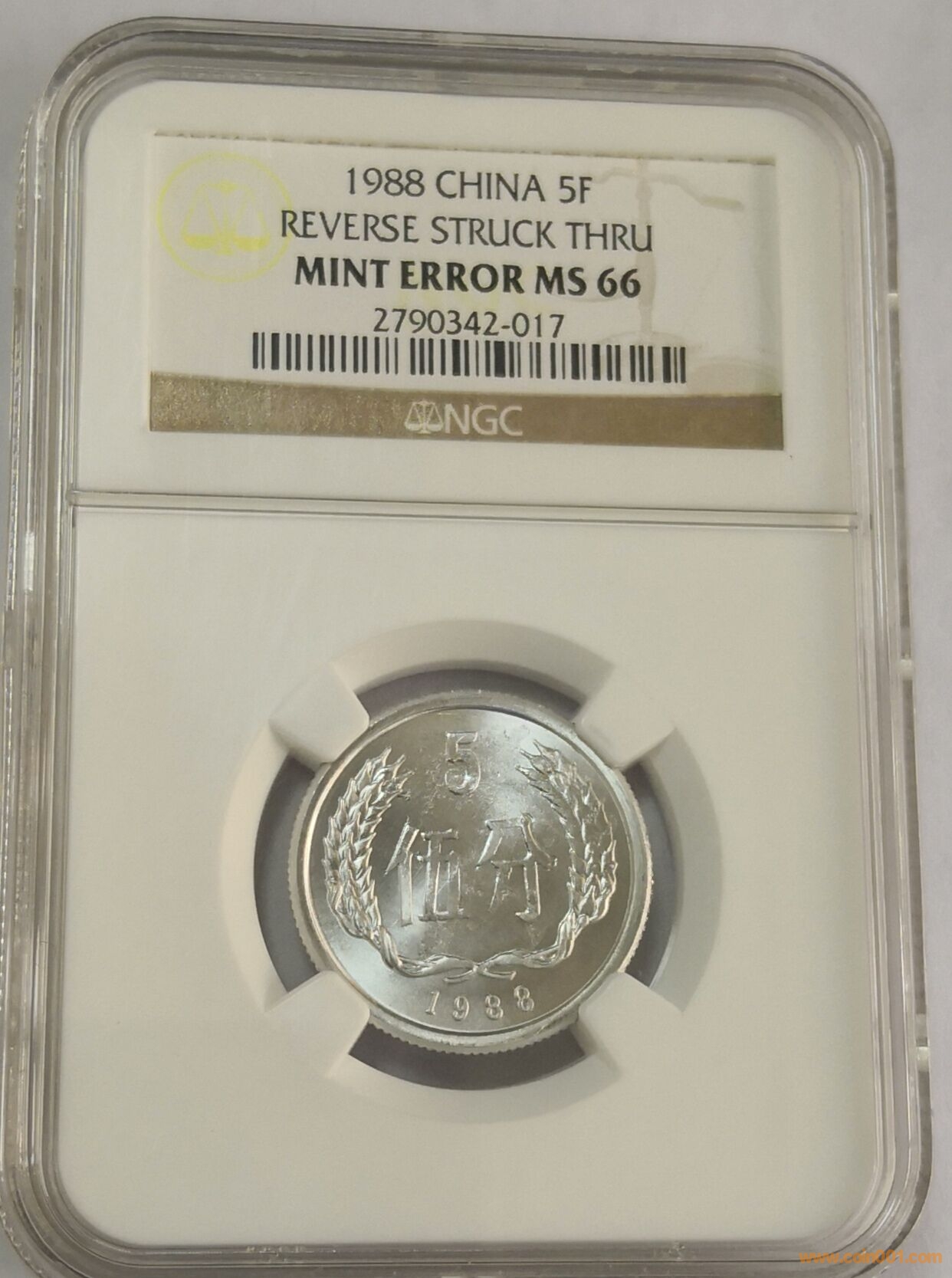 1983年1分開(kāi)片幣 和1988年5分幣面凹凸不平。都是NGC評(píng)級(jí),錯(cuò)幣標(biāo)識(shí)。分?jǐn)?shù)都是MS66。