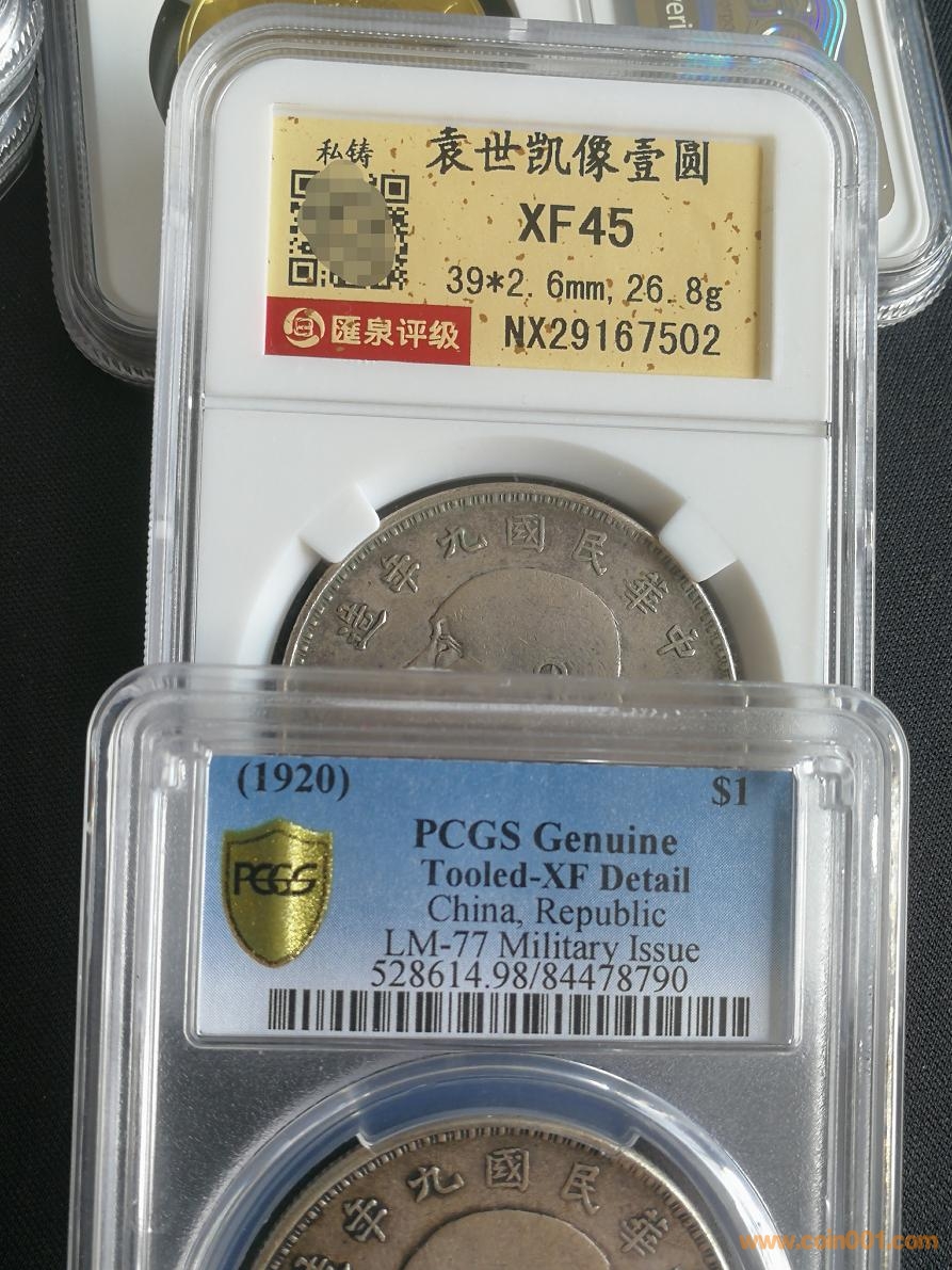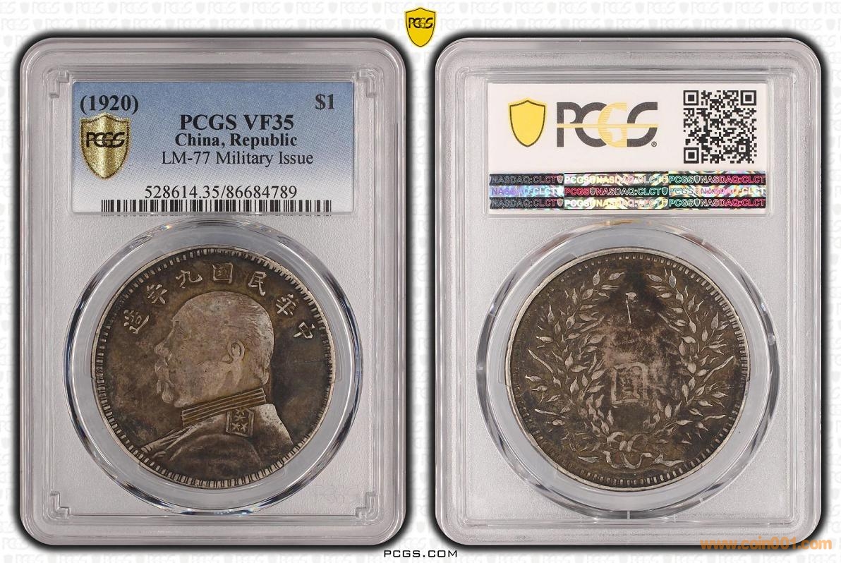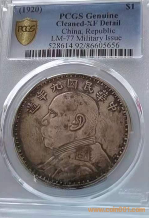 紅軍版九年大頭屬于私鑄(軍閥)類,在三年、九年、十年三個(gè)公認(rèn)私鑄版別中數(shù)量最少,有資料記載,私鑄銀元三年占70%,十年占10%多,九年占比不足10%。九年私鑄,市面有若干版別,因?yàn)樯僖?,真?zhèn)尾缓门袛唷D中展示的為九年紅軍版,改版目前有四枚入盒可查,除圖中兩枚外,還有兩枚為86開頭的pc評(píng)級(jí)35和98。該兩枚品相xf以上,從最新評(píng)定的VF35品相看,早期給予98評(píng)級(jí)很可能是評(píng)級(jí)師認(rèn)為如此卡通形象,該有認(rèn)為修葺。如果現(xiàn)在送評(píng),有可能給分。兩枚完全同版,同出不拆,15000元。