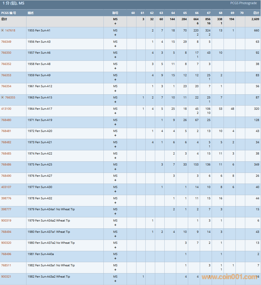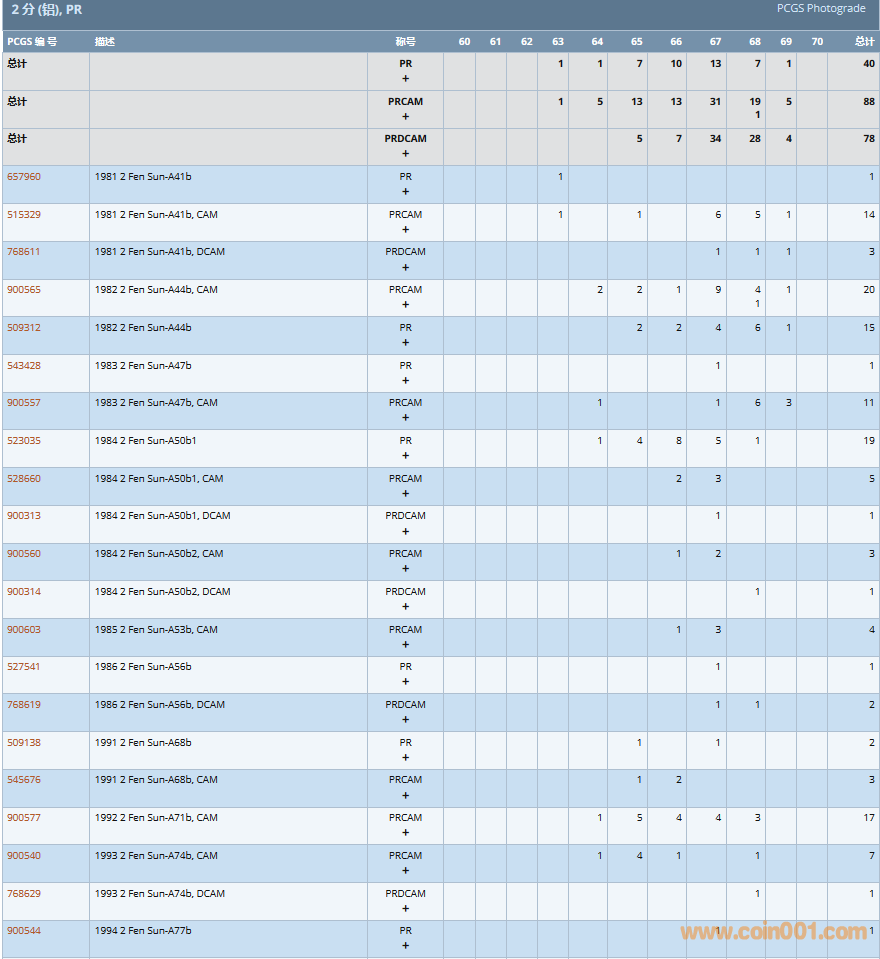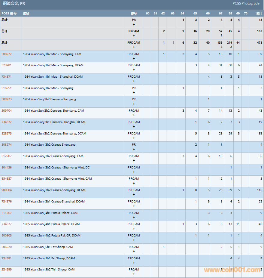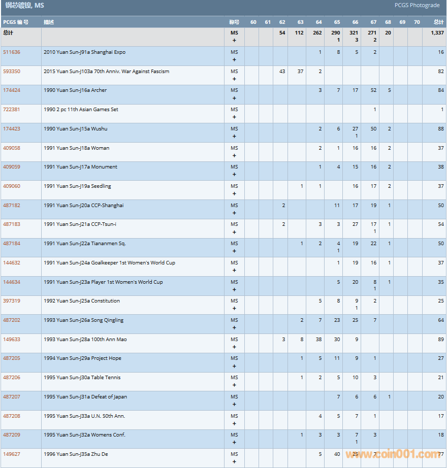 PCGS硬幣評(píng)級(jí)數(shù)量報(bào)告( ..