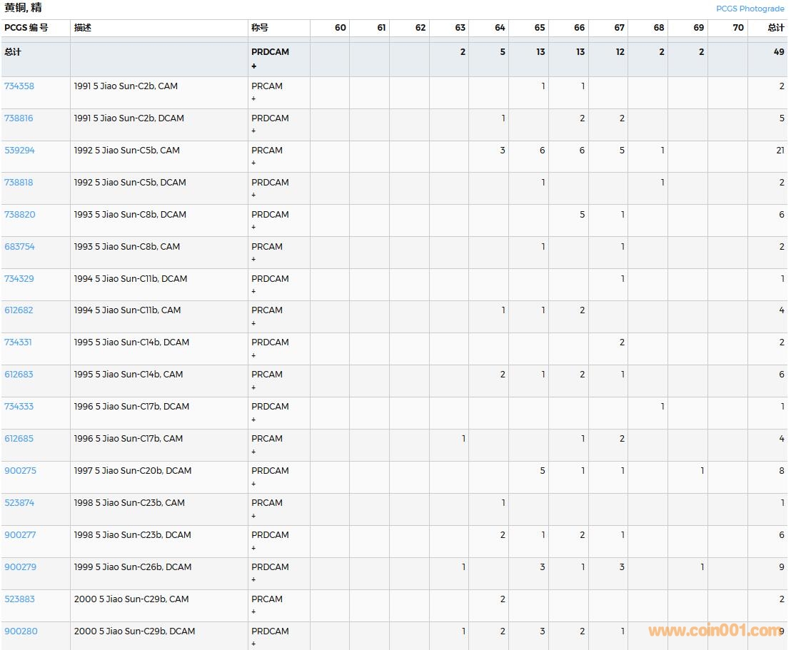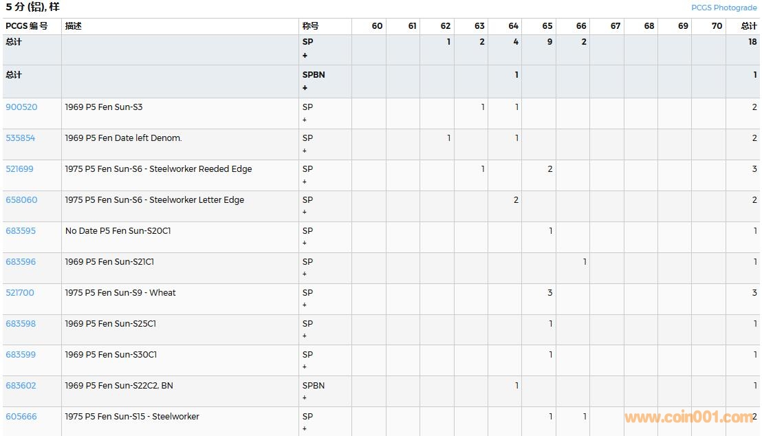 PCGS硬幣評級數(shù)量報告( ..