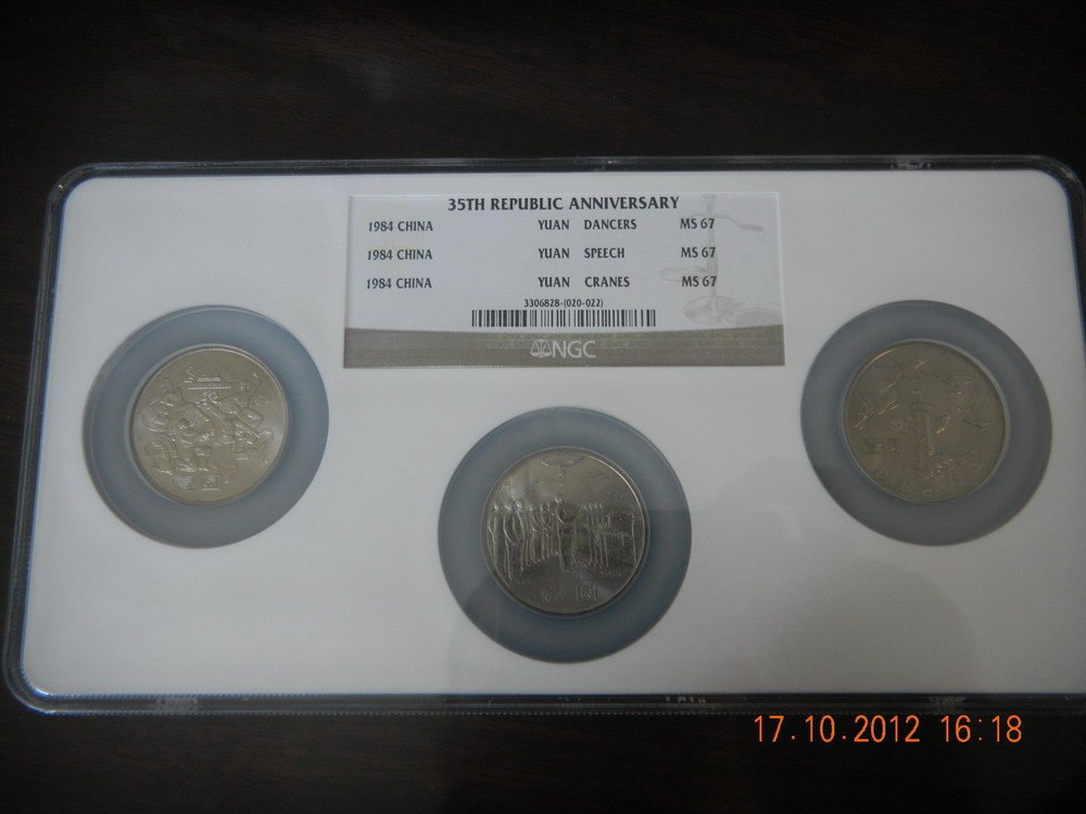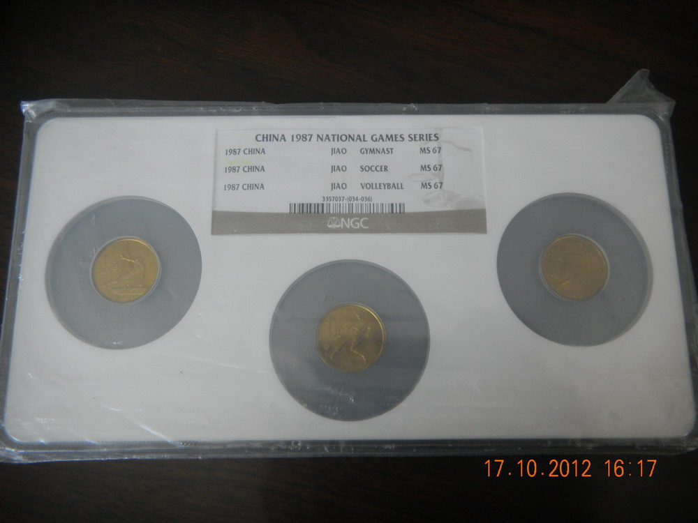 67分NGC多幣封裝紀(jì)念幣,每個品種多幣封裝,市場上單枚的NGC評級幣常見,但打成多幣的很少見,同分?jǐn)?shù)多幣的更是少見,以下紀(jì)念幣同分?jǐn)?shù),全部為67分。六運會:2880元,三枚裝;35周年:2780元,三枚裝;亞運會:1880元,兩枚裝;五大自治區(qū):6880元,5枚裝。