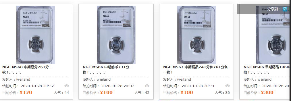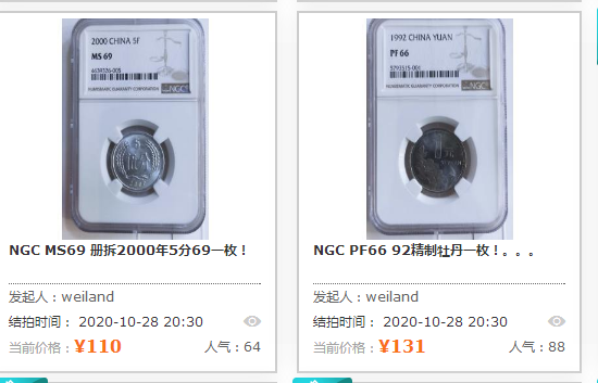 評級普通(精制)紀念幣交易