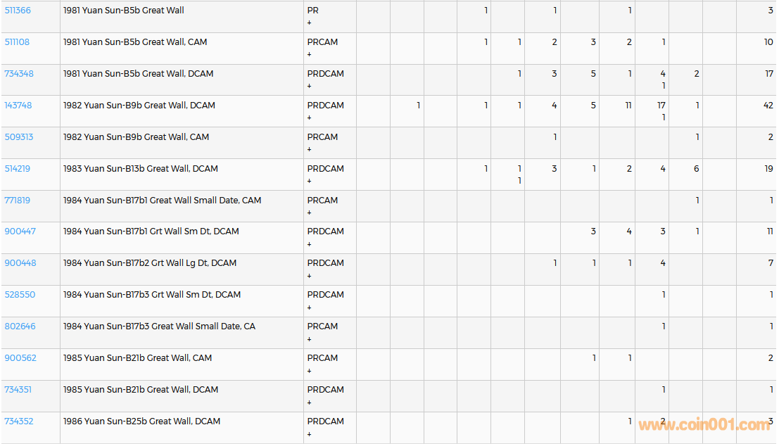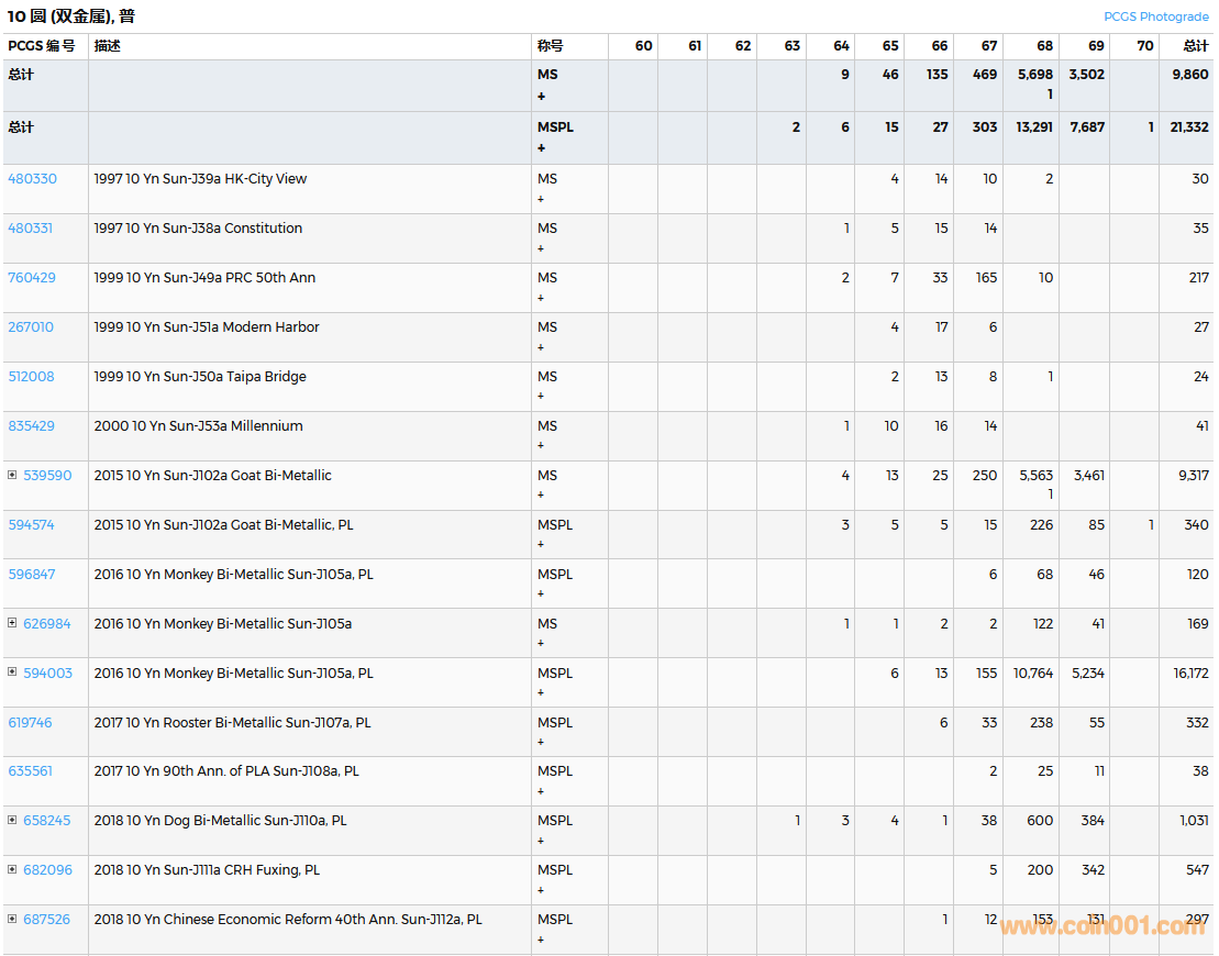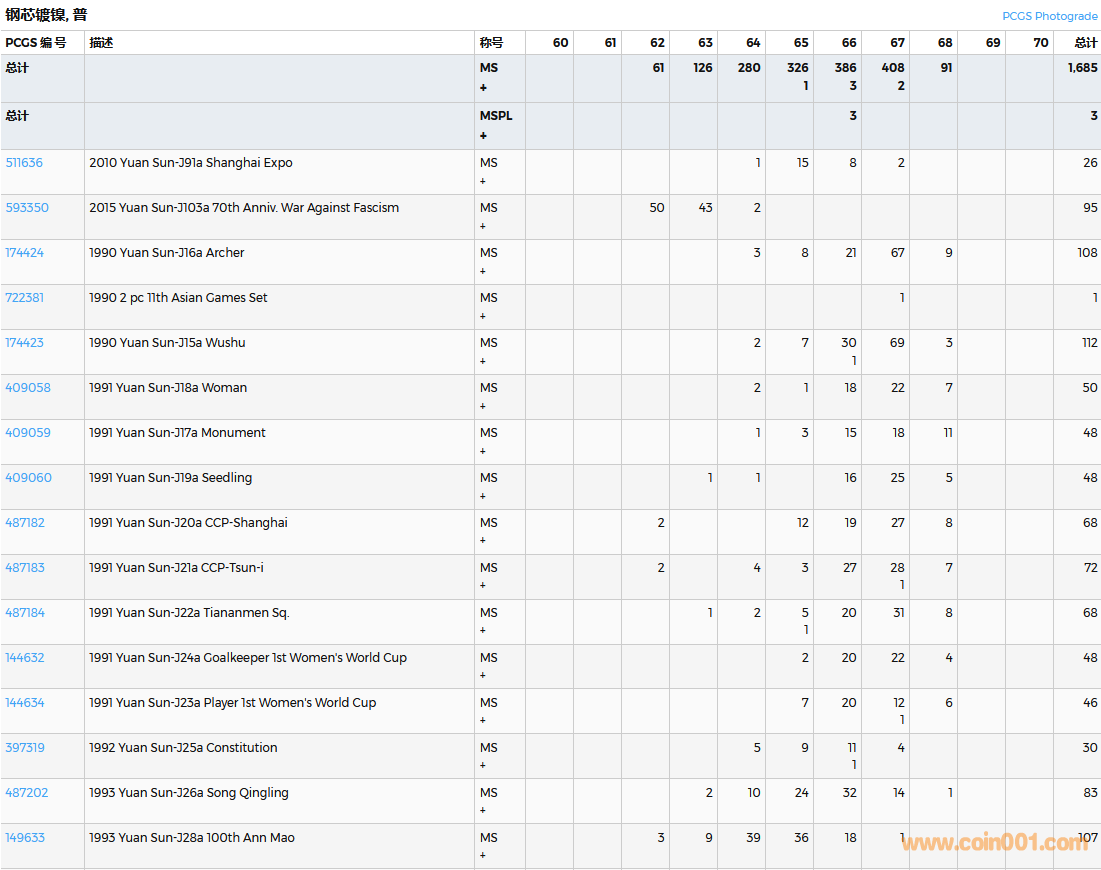 PCGS硬幣評(píng)級(jí)數(shù)量報(bào)告( ..