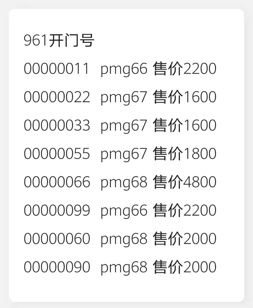 961開門號 00000011/22/33/5 ..
