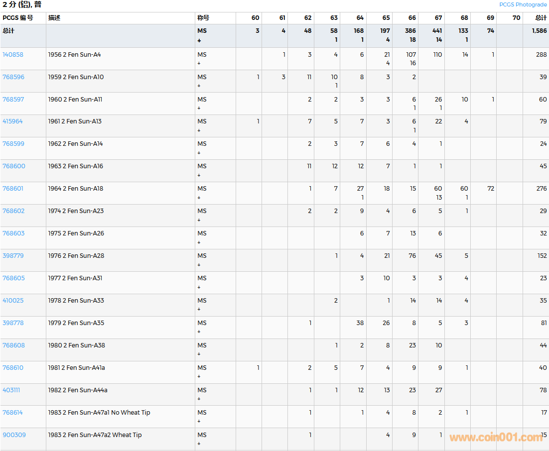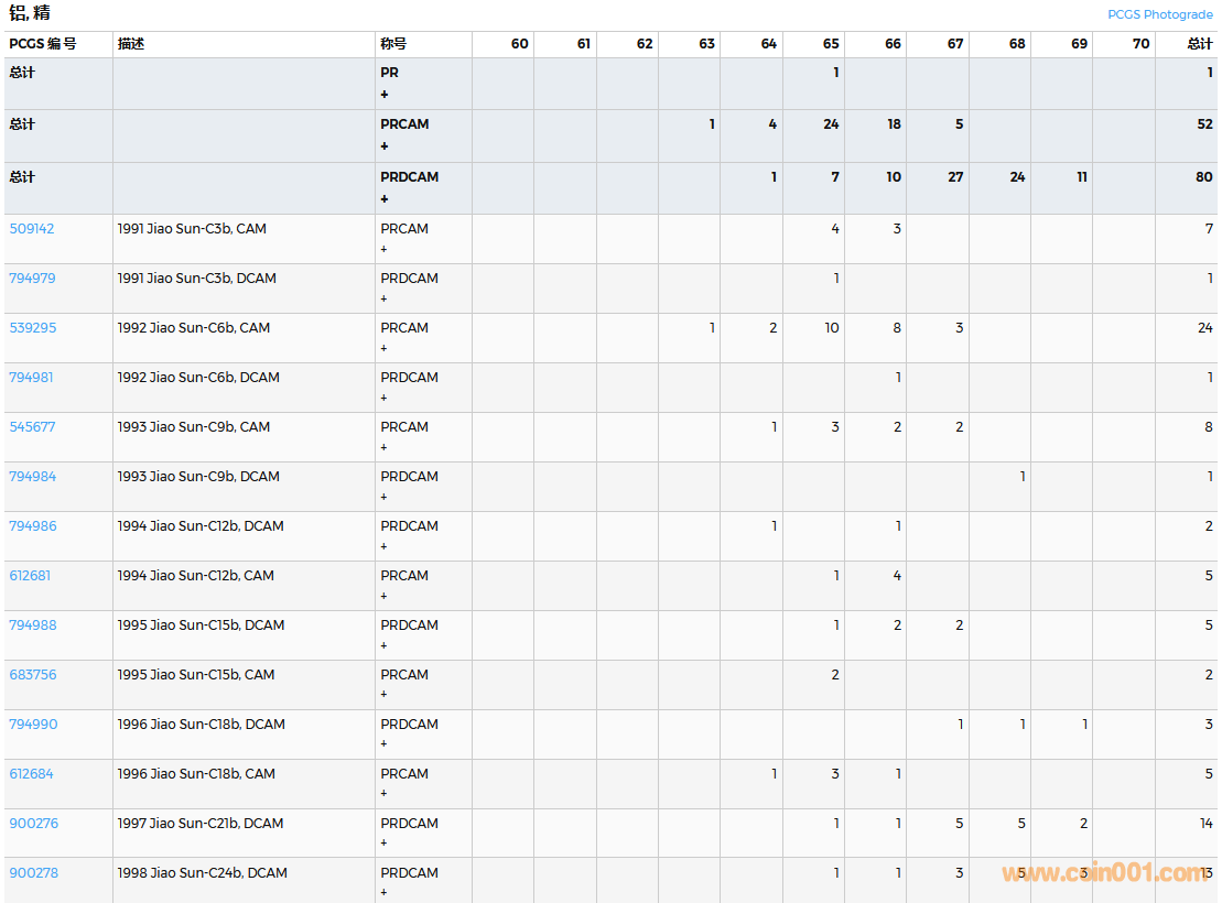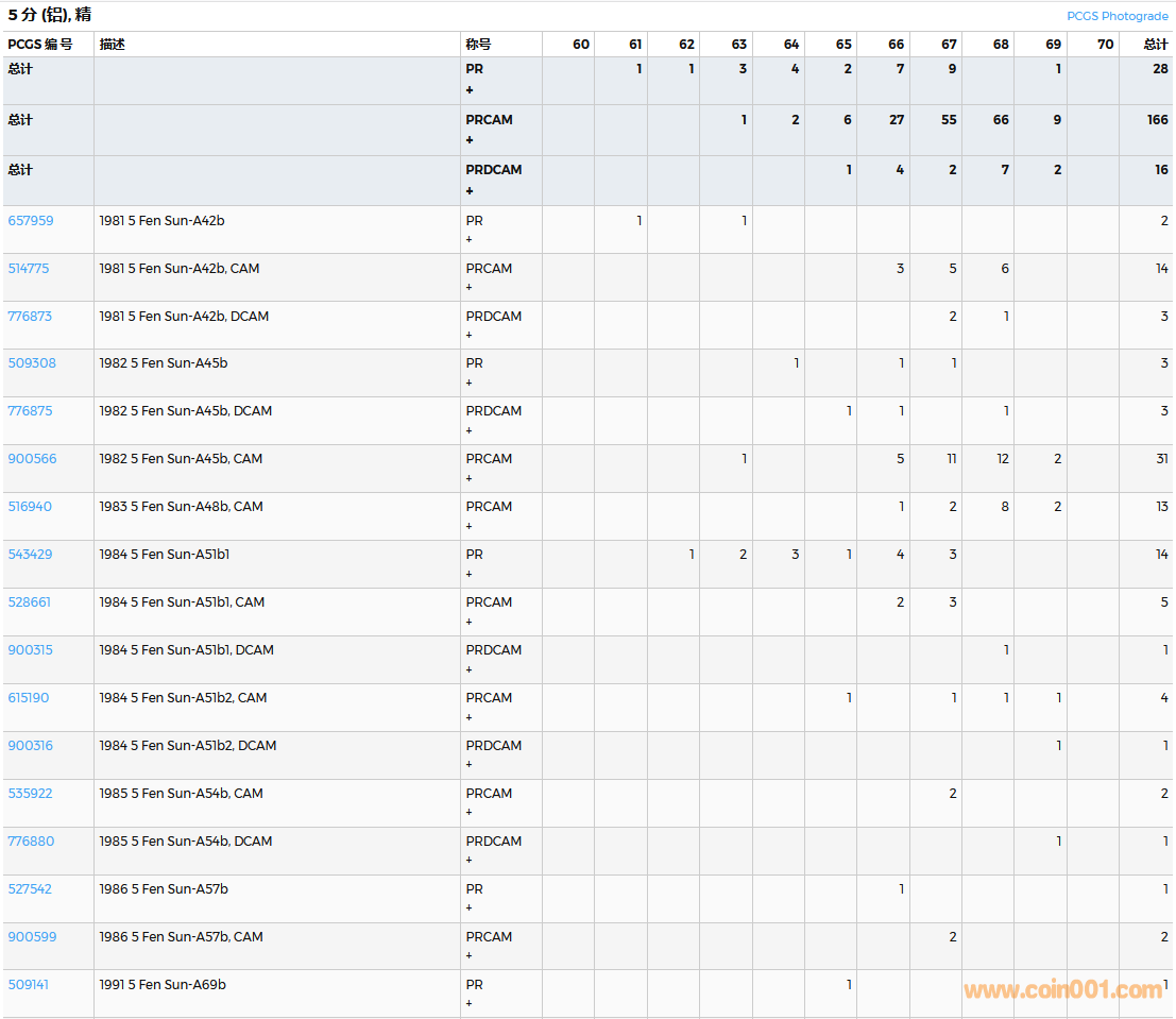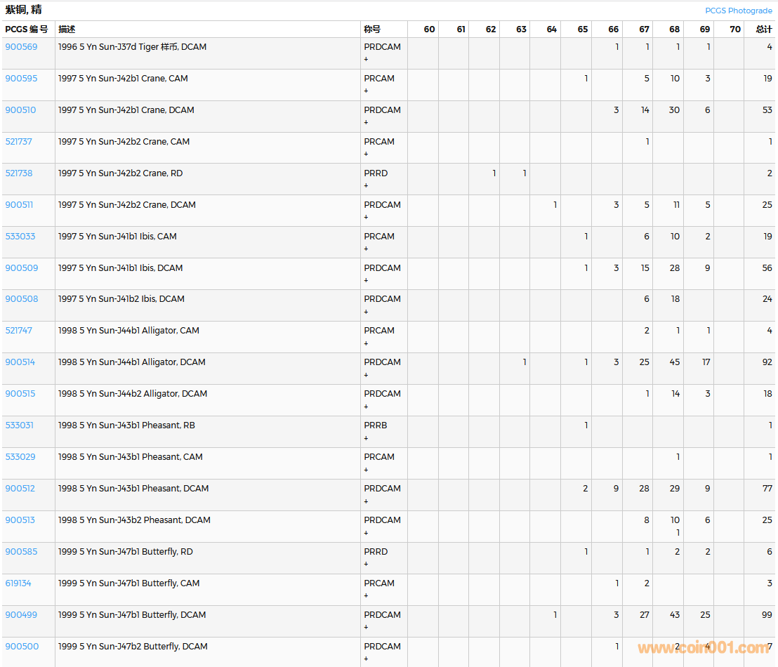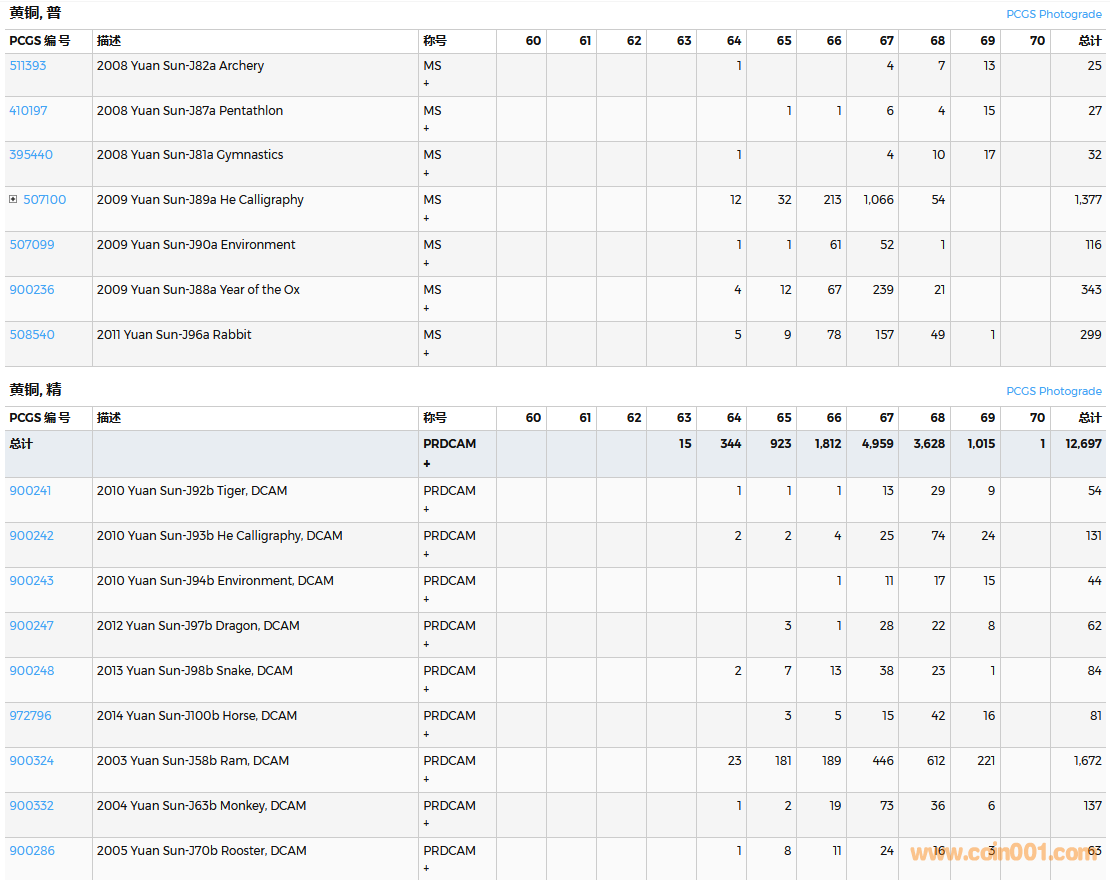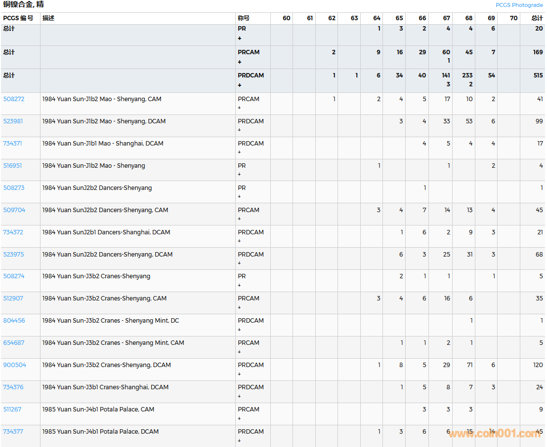 PCGS硬幣評級數(shù)量報告( ..