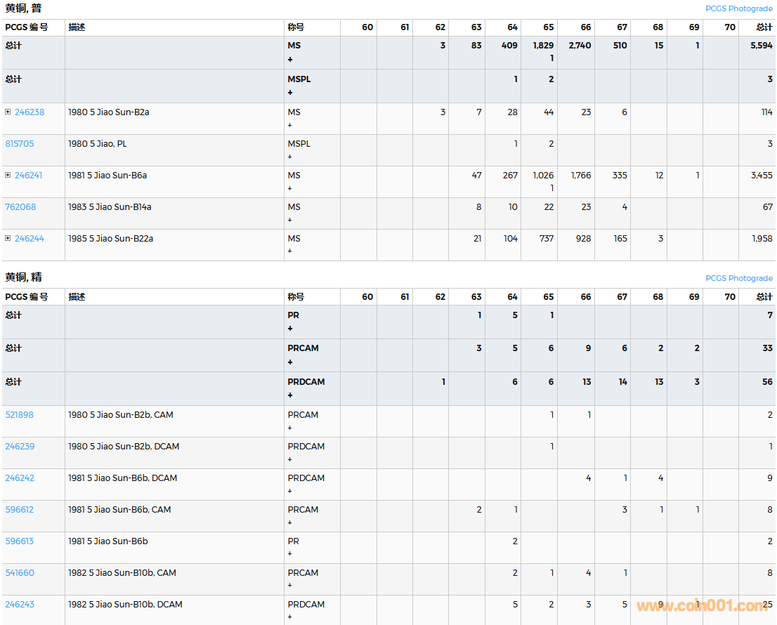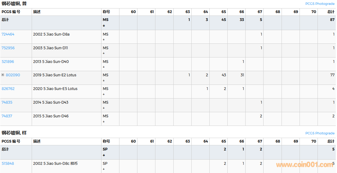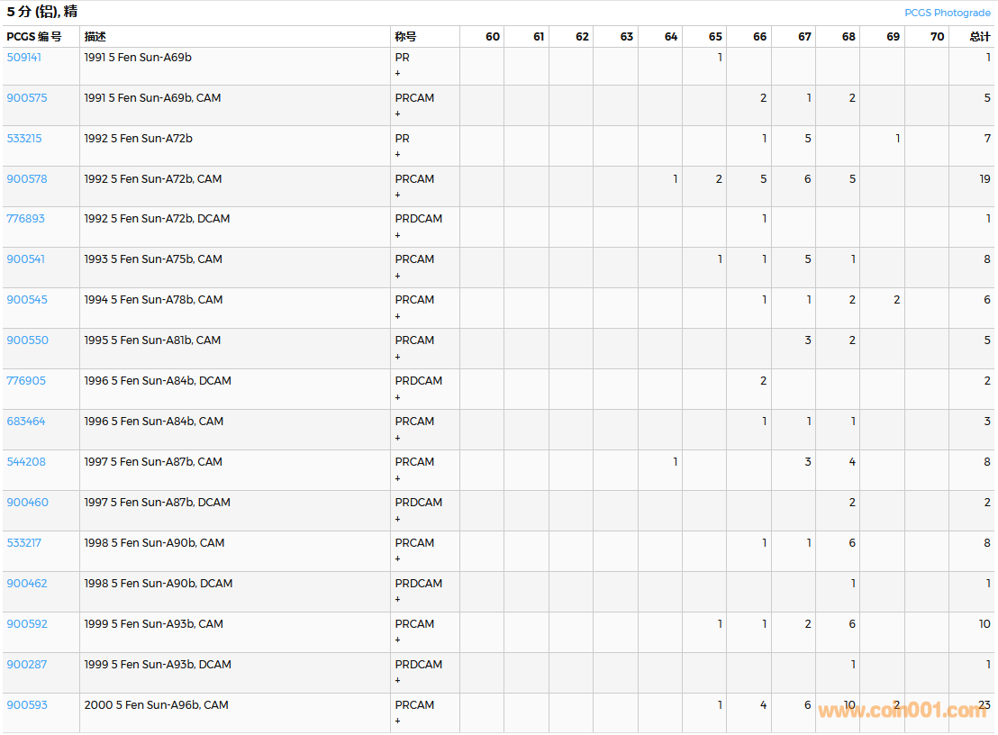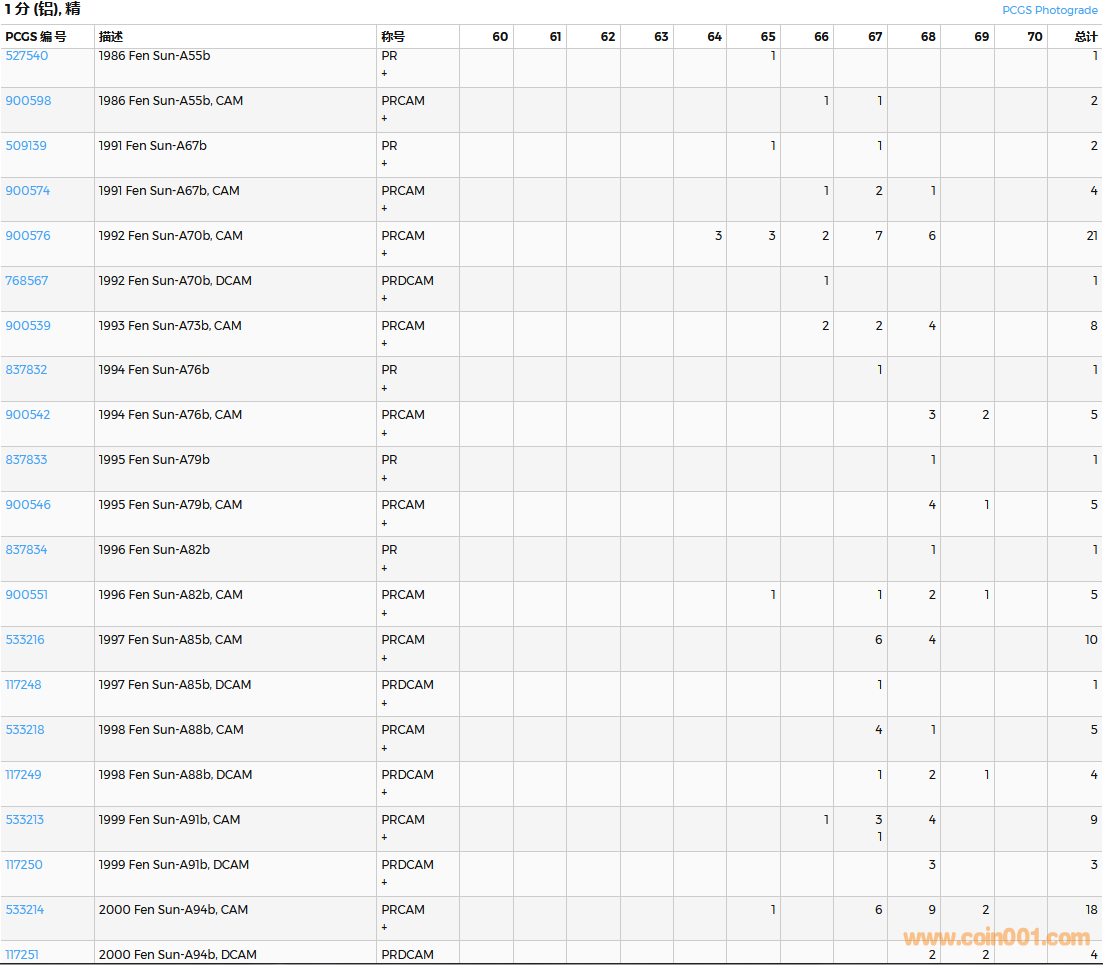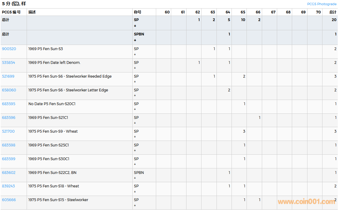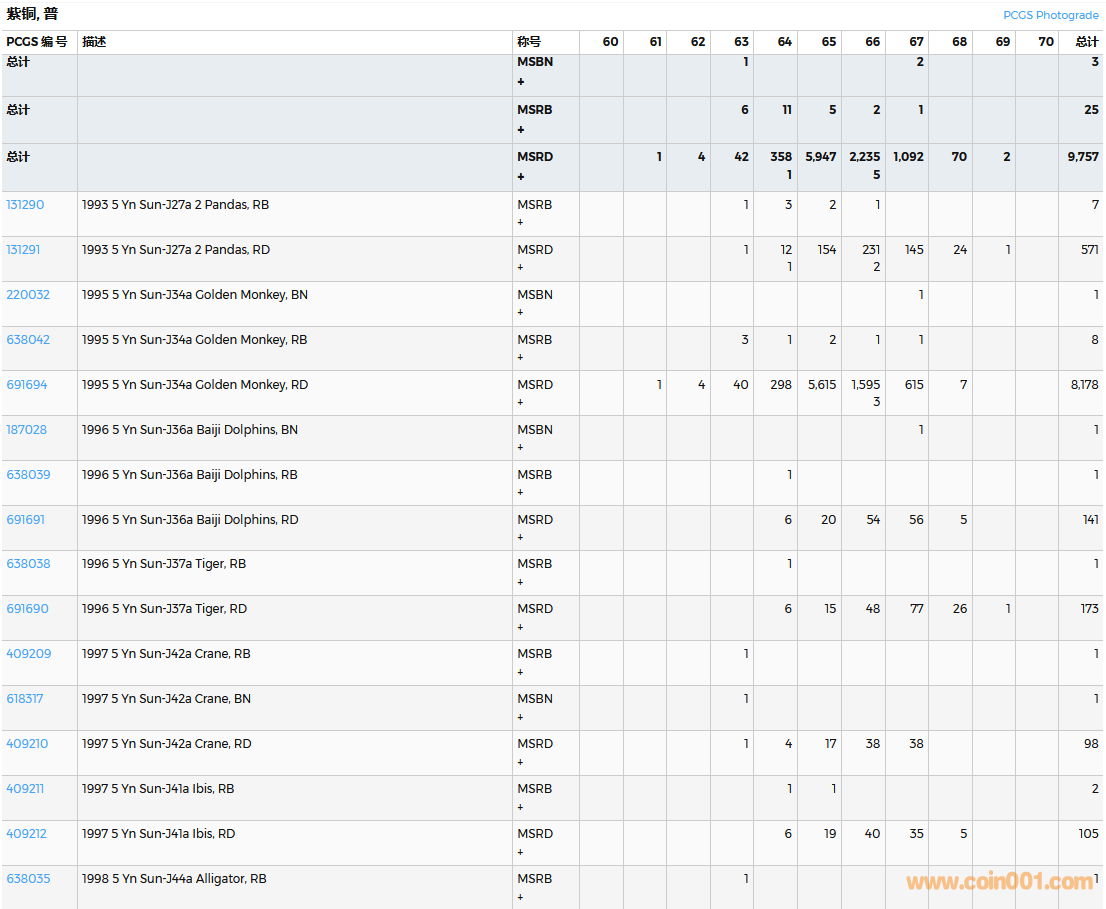 PCGS硬幣評級數(shù)量報告( ..