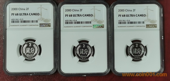 2000年1分NGCMS69- 195      2分NGC MS66-120    5分NGCMS69--210