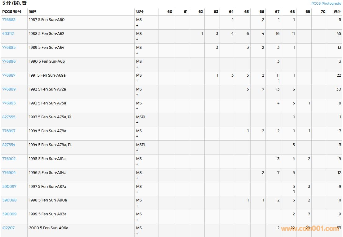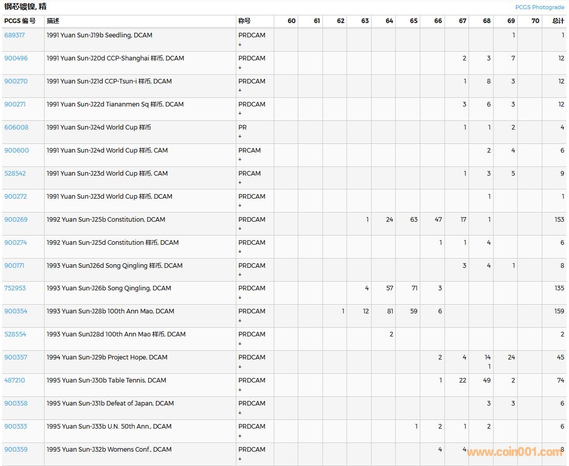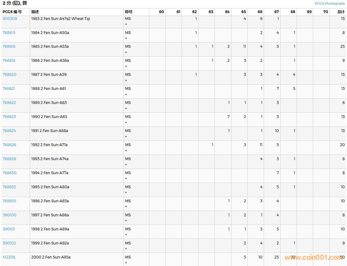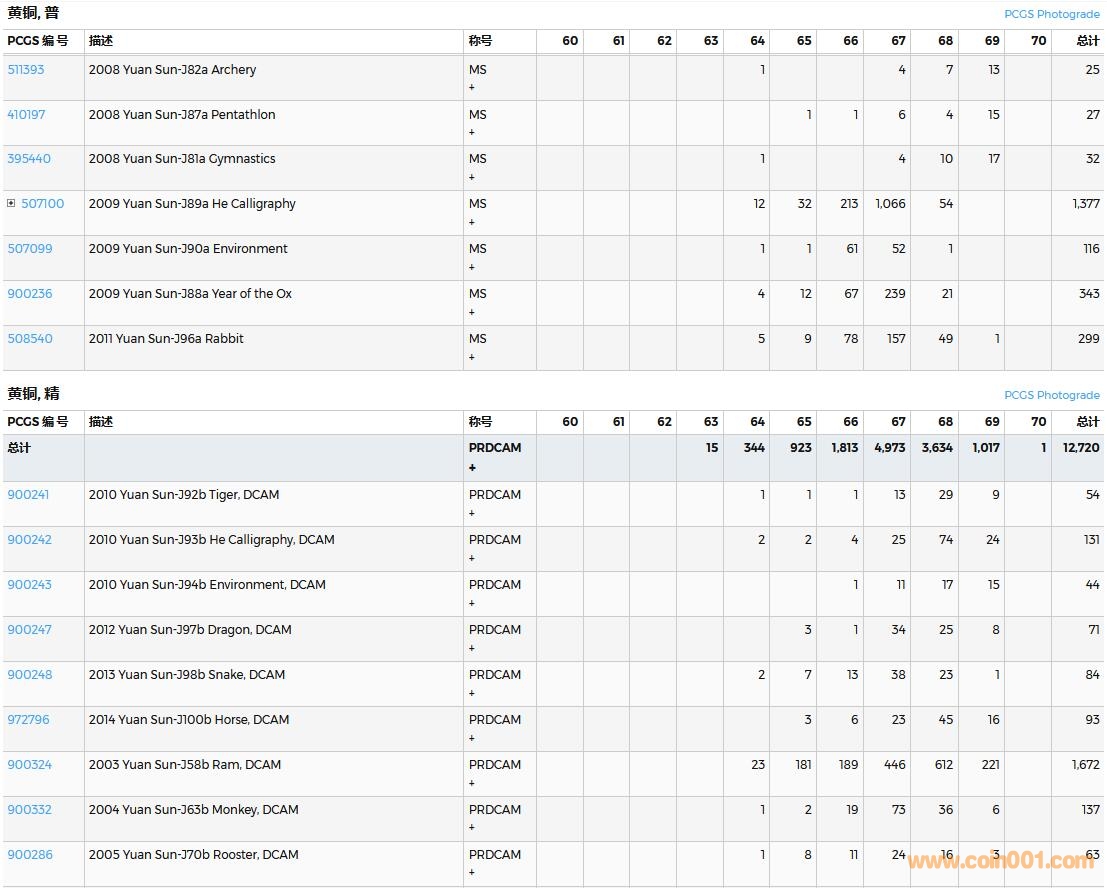 PCGS硬幣評級數(shù)量報告( ..