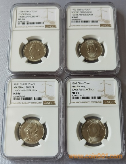 毛 宋 周 朱--4枚NGC MS66 同分同尾號9/10/17---470/4枚
