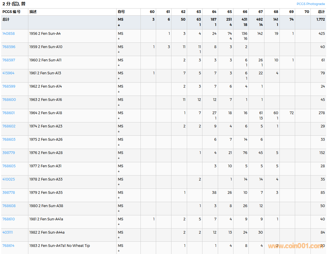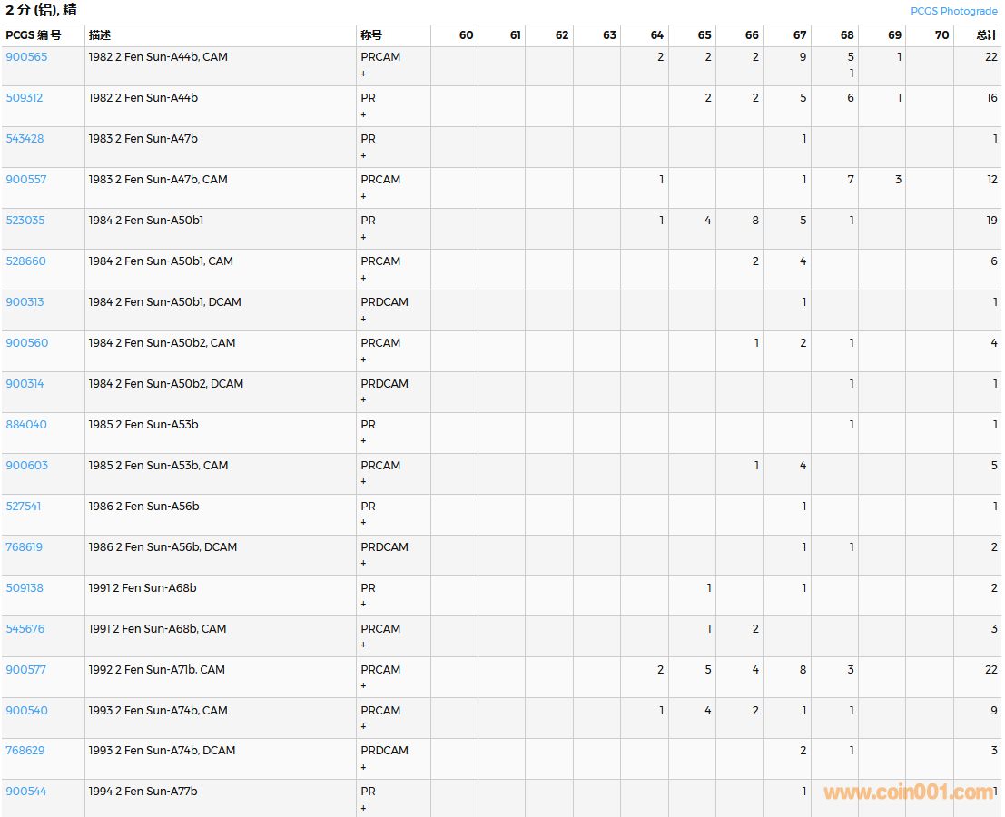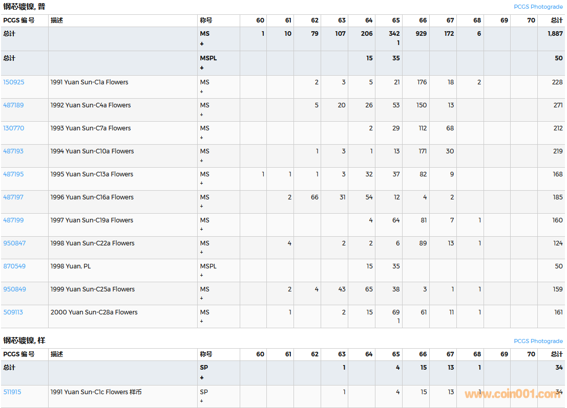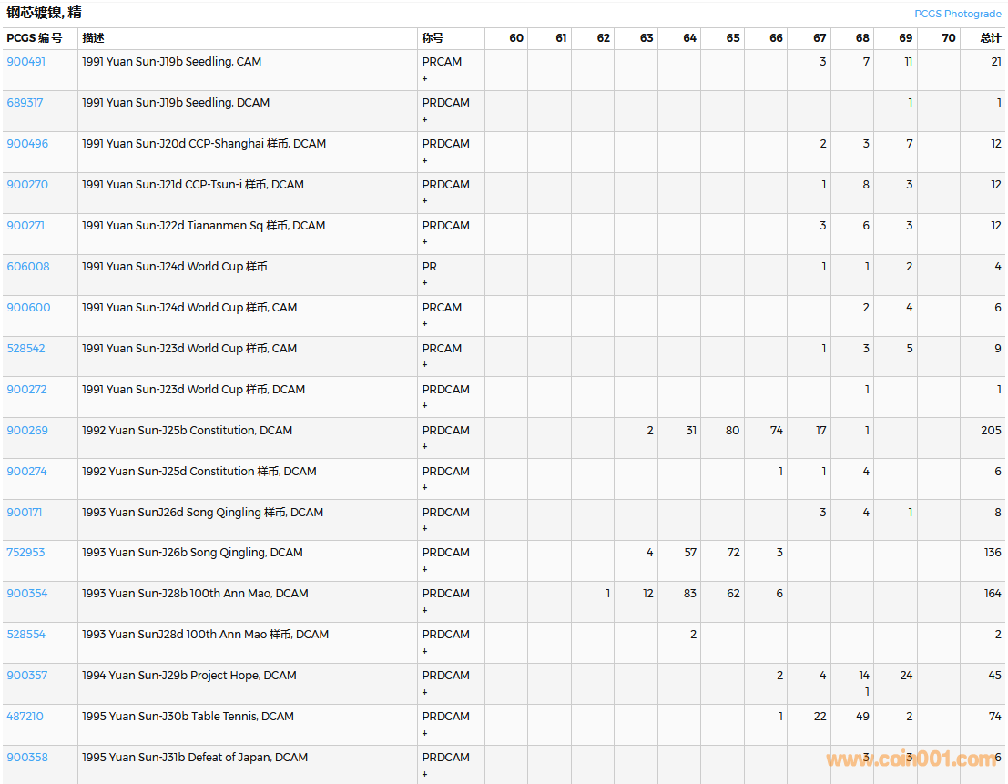 PCGS硬幣評(píng)級(jí)數(shù)量報(bào)告( ..