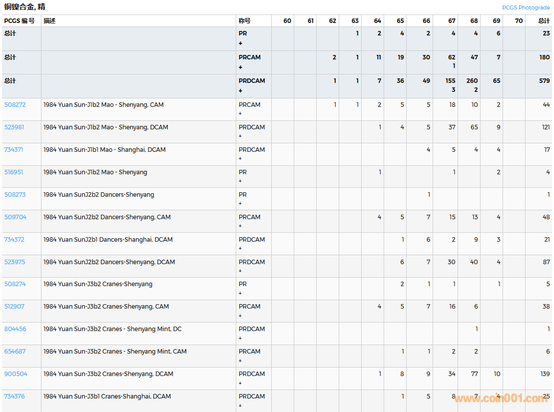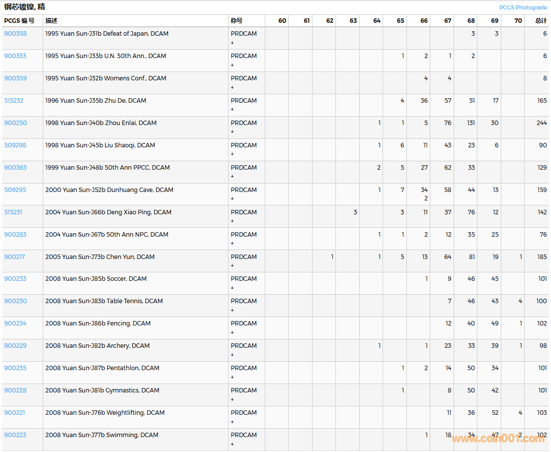 PCGS硬幣評(píng)級(jí)數(shù)量報(bào)告( ..