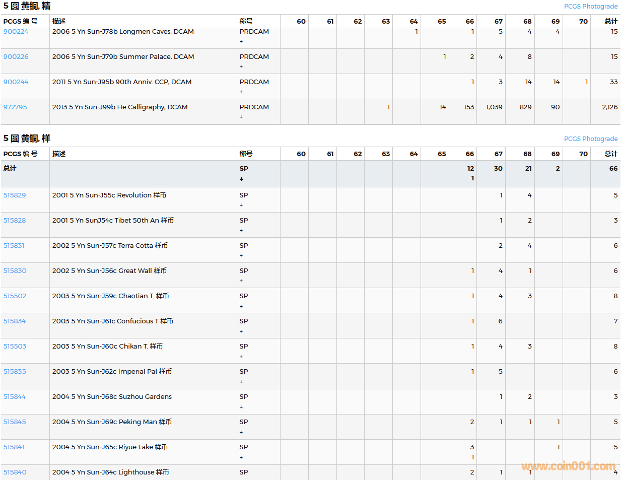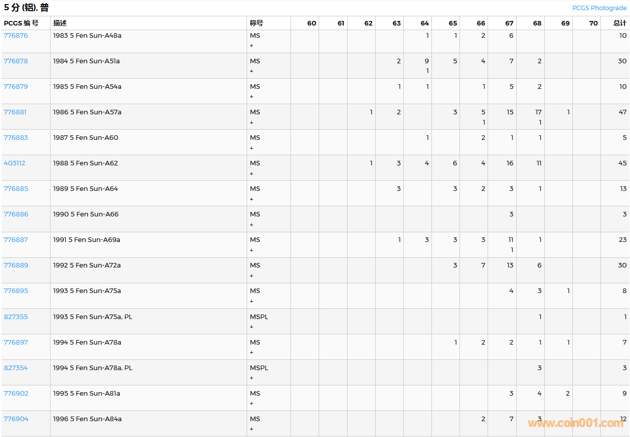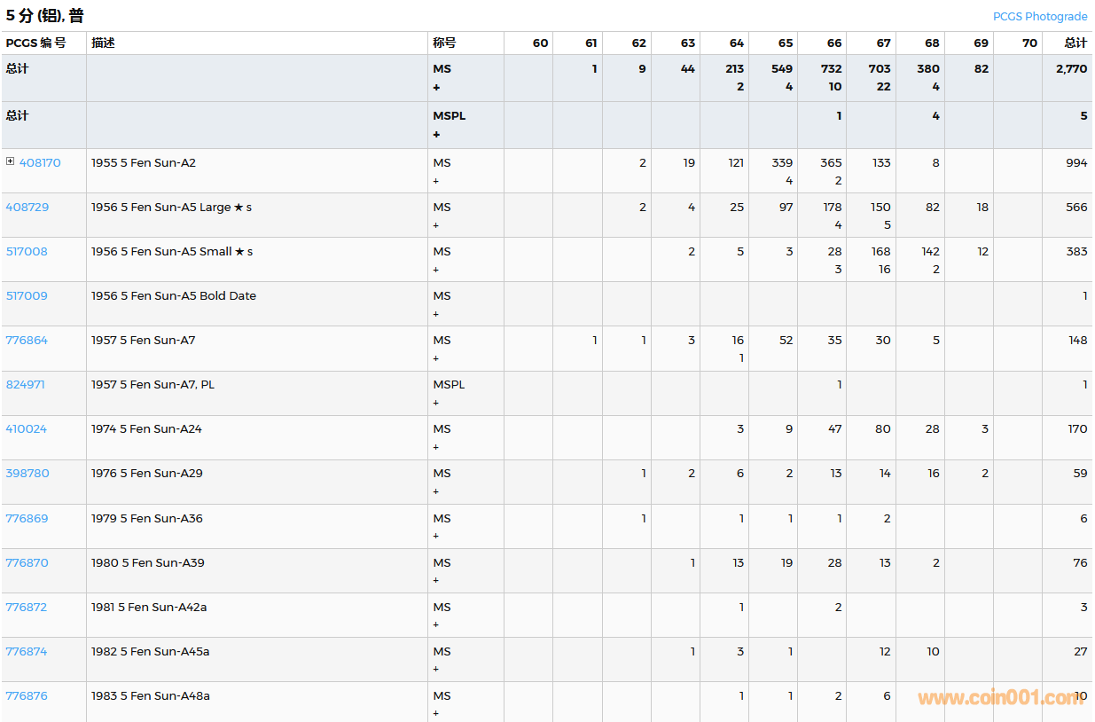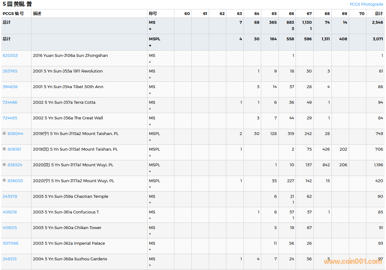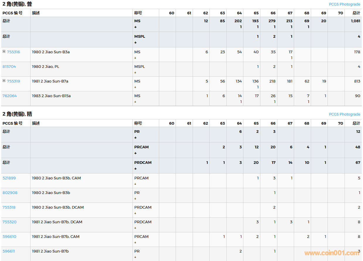 PCGS硬幣評級數(shù)量報(bào)告( ..