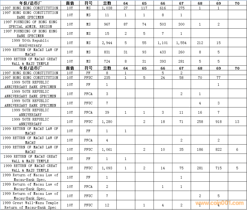 NGC硬幣評級數(shù)量報告