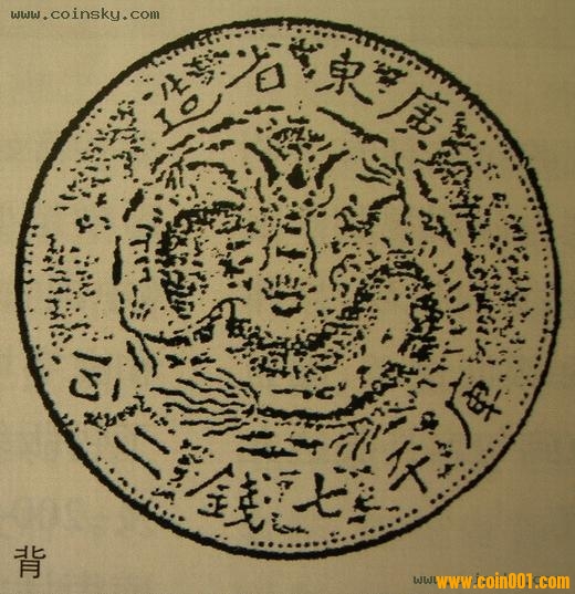 圖1所示為“廣東七二反版”銀幣。清光緒十五年(1889年)廣東省曾鑄造光緒元寶銀幣一種,設計者將英文置于錢幣正面“光緒元寶”4字之外圈,受到一些清政府官員的非議,認為“將洋文列于中國年號之內,體制尚有未合,應請飭令該督(兩廣總督)將洋文改鏨蟠龍之外,以廣東省造庫平七錢二分漢文改到正面,其半元以下銀元以次照改,較為妥協(xié)”。清政府采納了上述意見,將錢幣正面的英文移至背面,這種被稱為“廣東七二反版”的銀幣遂即停鑄。此錯版銀幣沒有正式發(fā)行,存世很少,百年來一直是錢幣收藏者關注的焦點。