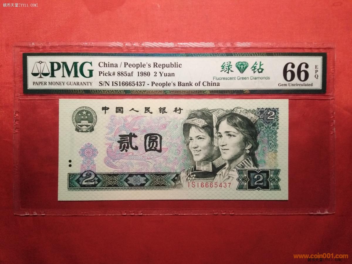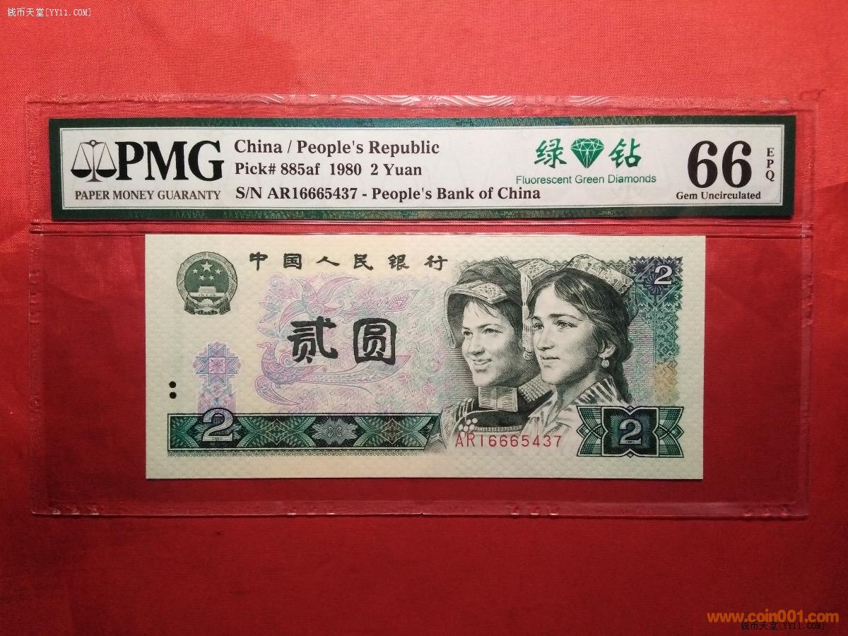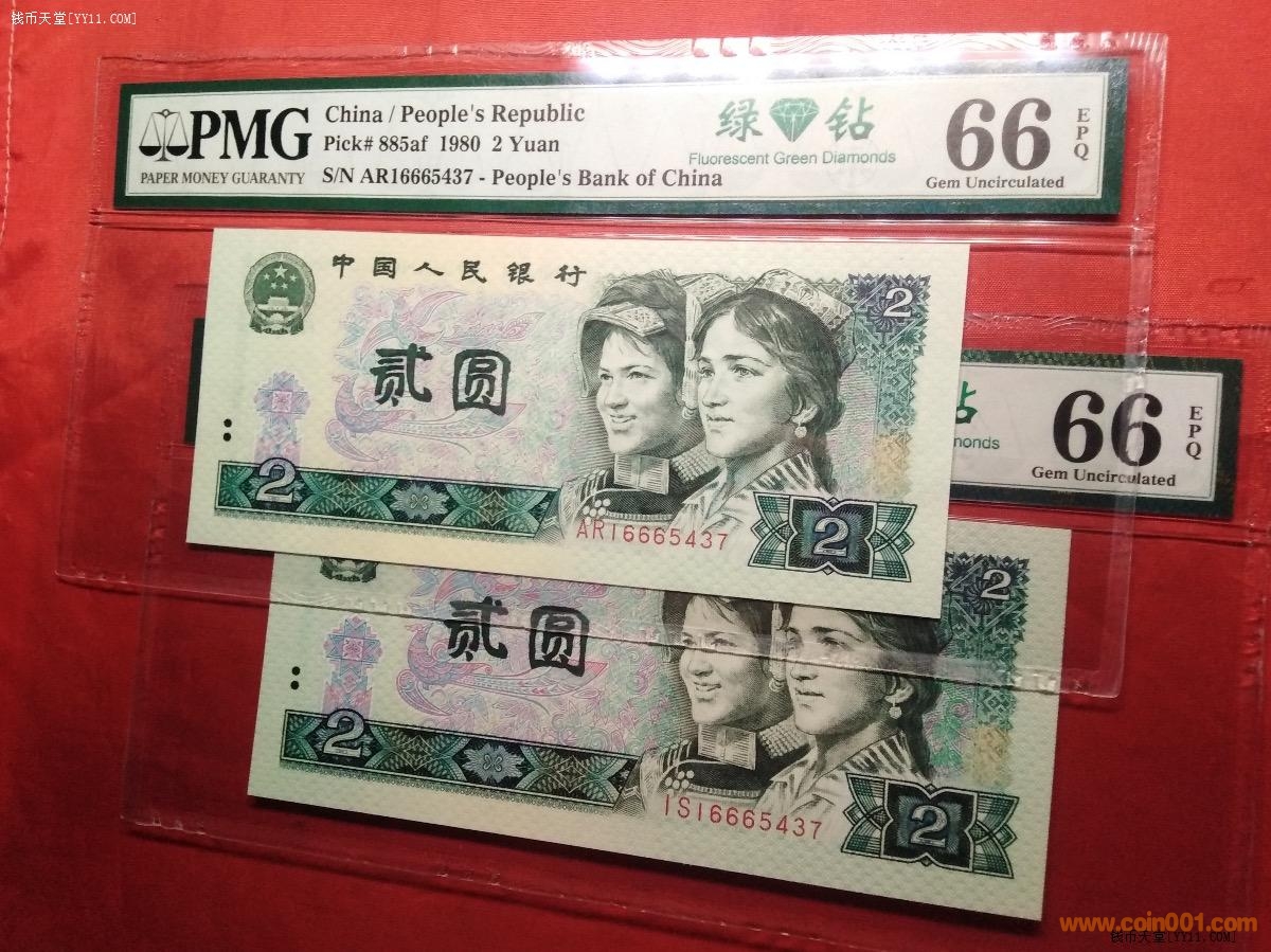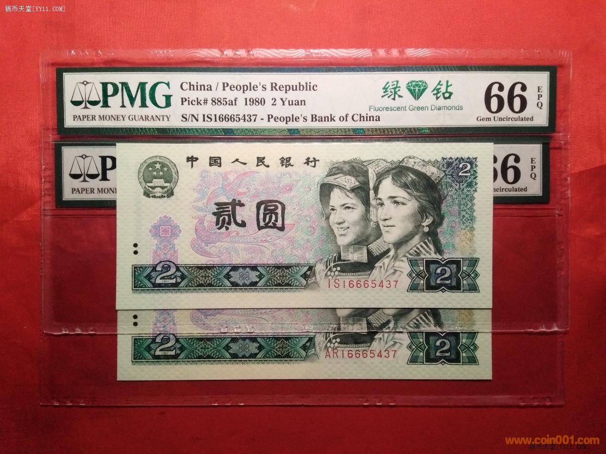 孿生兄弟PMG66分80年貳元全同號(hào)綠鉆(中文標(biāo))