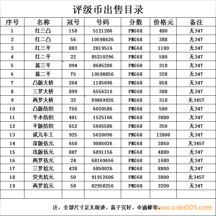 評級普通(精制)紀念幣交易