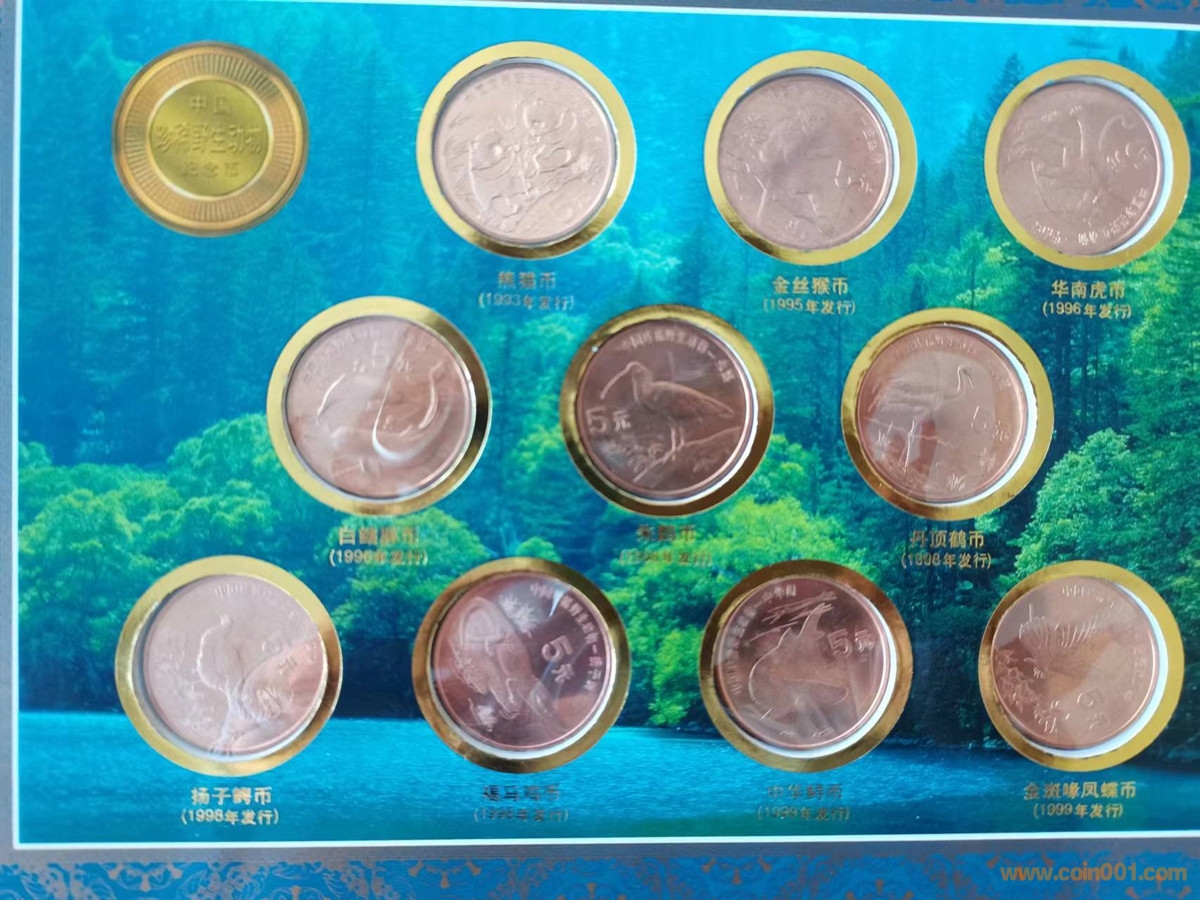 代友售:1、中國珍稀野生動物紀(jì)念幣豪華珍藏冊一套,由人民銀行發(fā)行,授權(quán)北京康銀閣,全套共10枚,含1993年熊貓、金絲猴、華南虎、白鰭豚、朱鹮、丹頂鶴、揚子鱷、褐馬雞、中華鱘、金斑啄鳳,500元。2、中國珍稀野生動物紀(jì)念幣千禧珍藏冊一套,全套共10枚,含1993年熊貓、金絲猴、華南虎、白鰭豚、朱鹮、丹頂鶴、揚子鱷、褐馬雞、中華鱘、金斑啄鳳,440元。