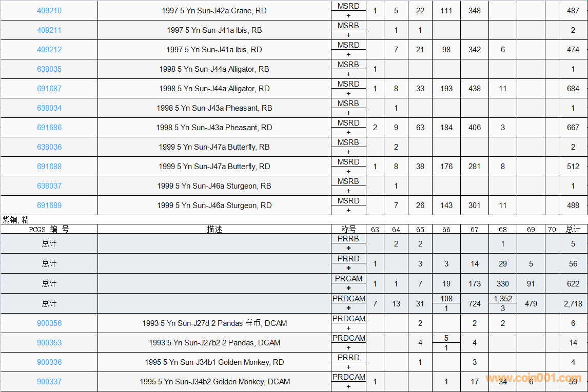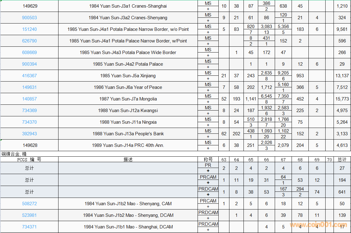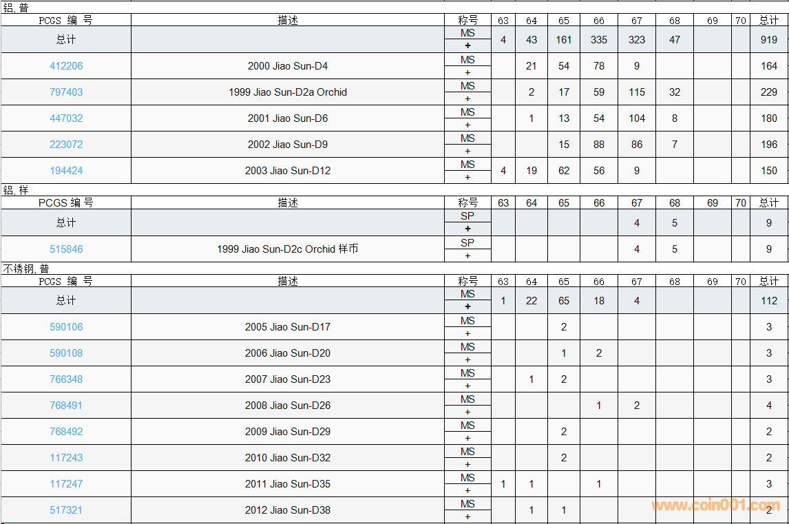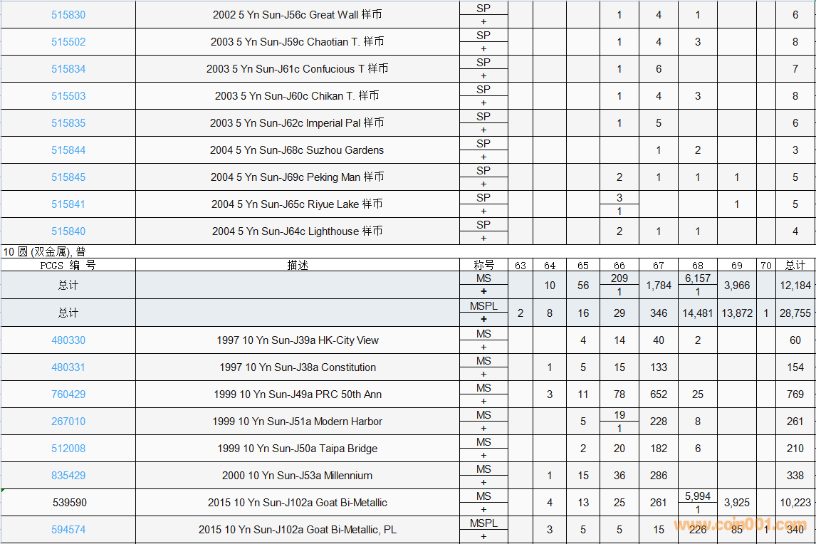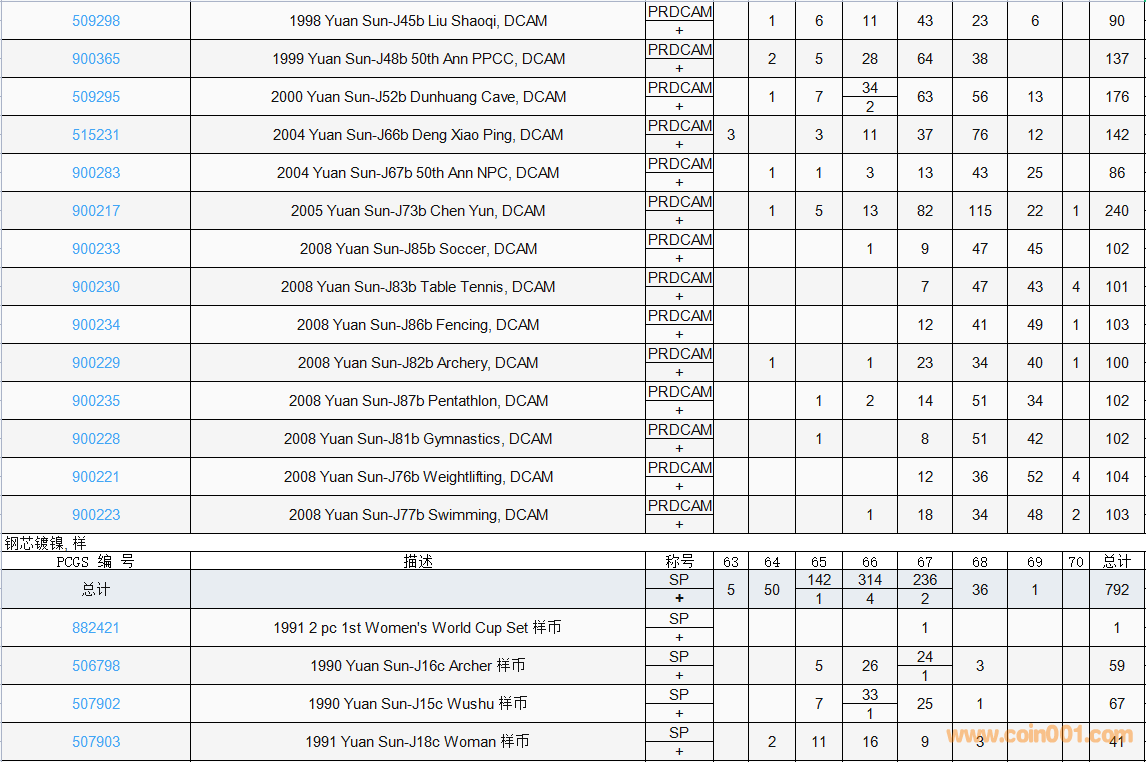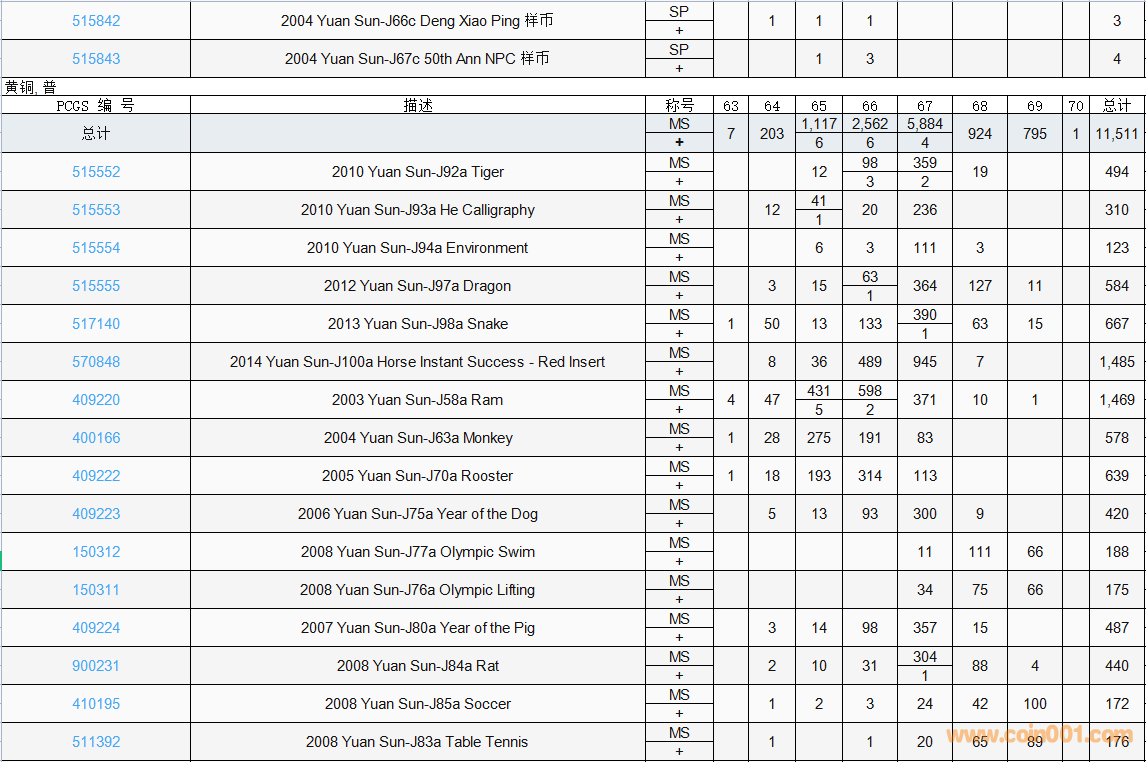 PCGS硬幣評(píng)級(jí)數(shù)量報(bào)告( ..
