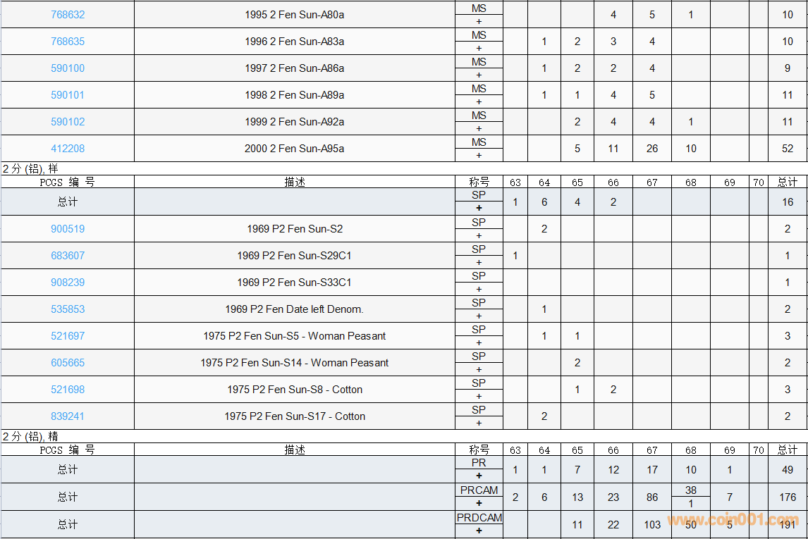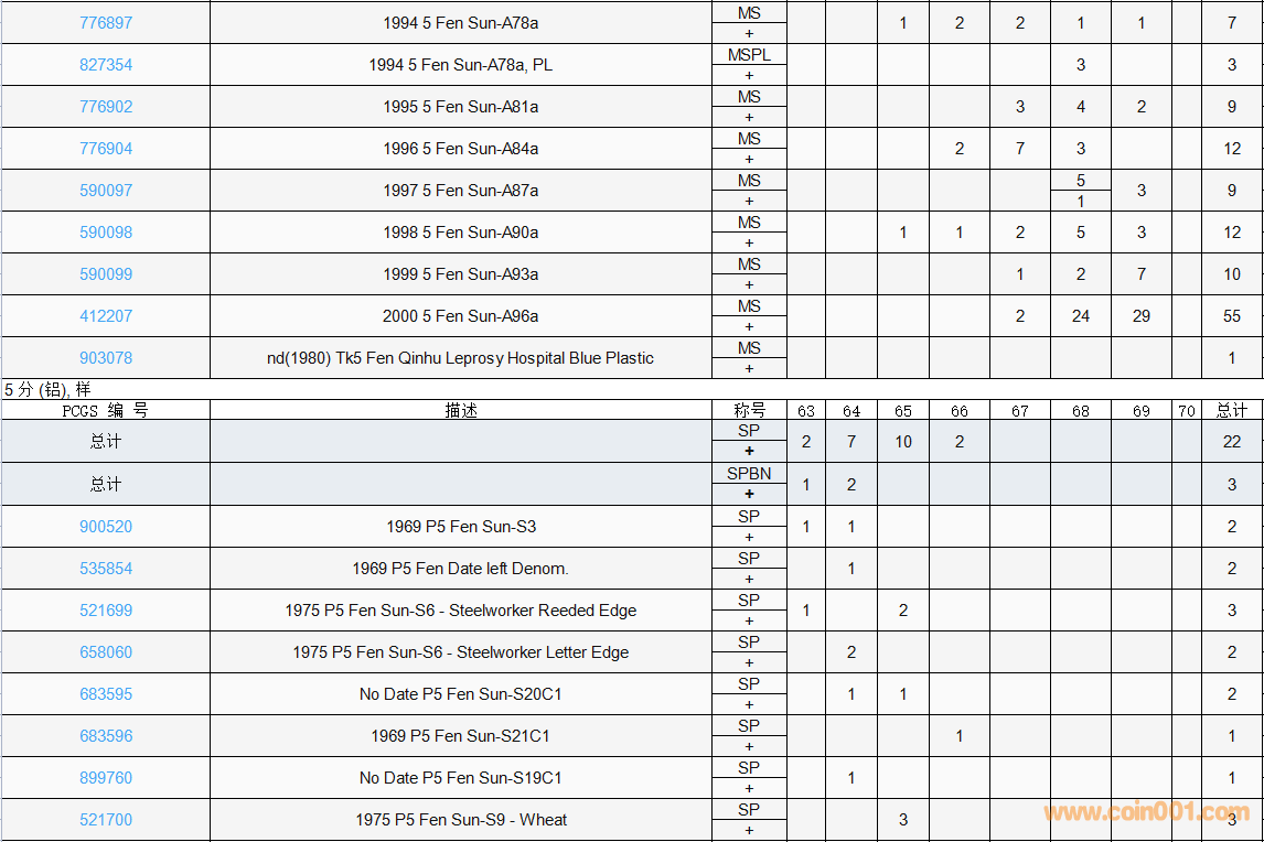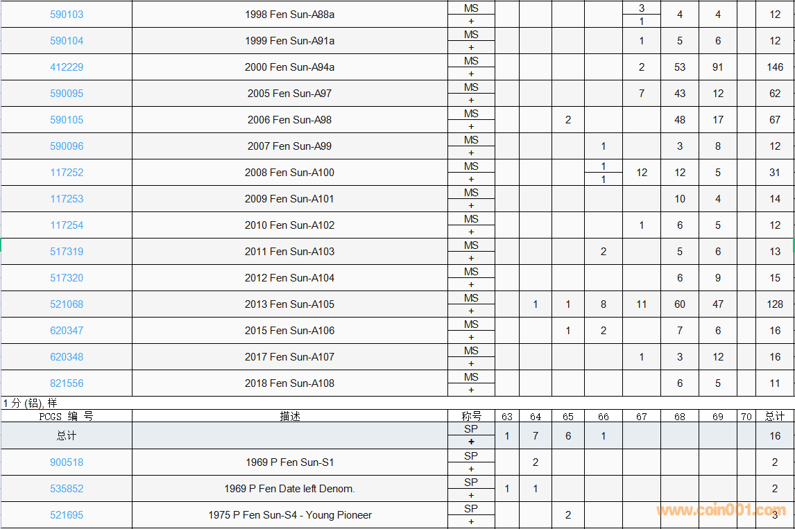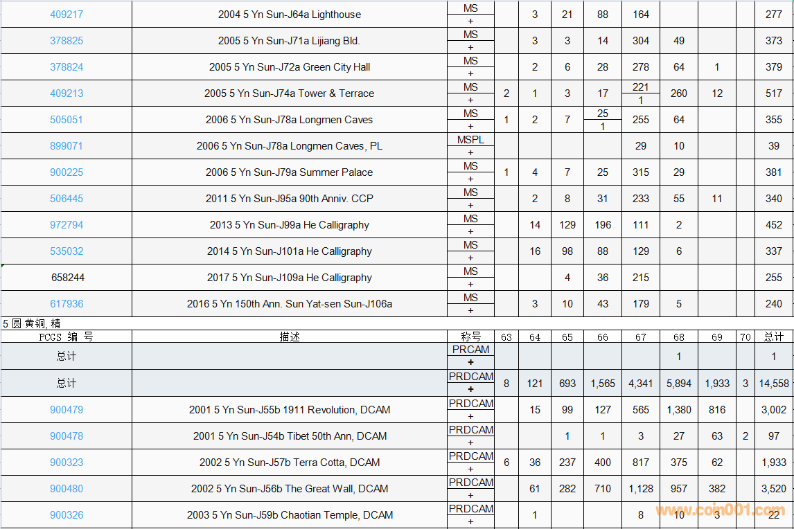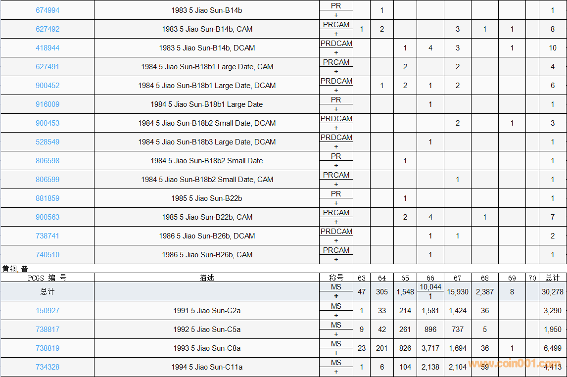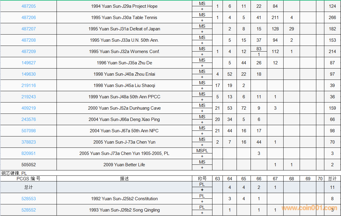 PCGS硬幣評(píng)級(jí)數(shù)量報(bào)告( ..