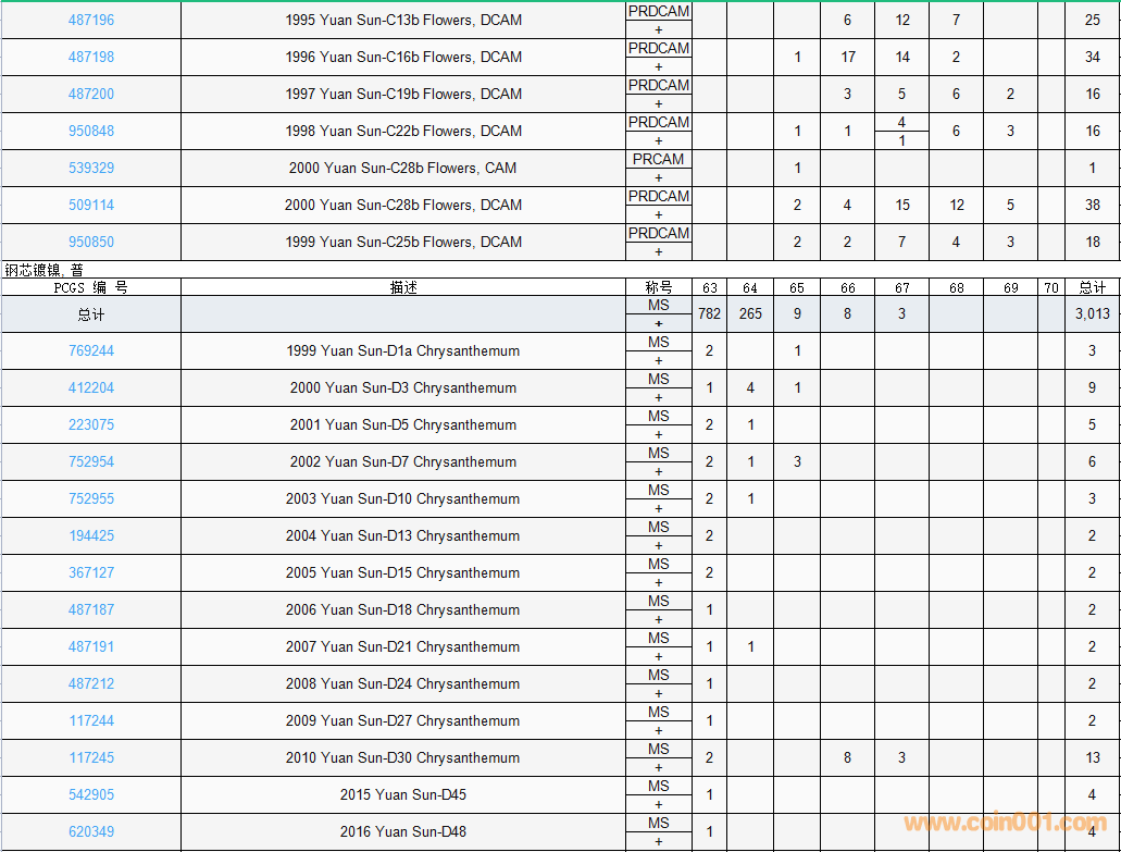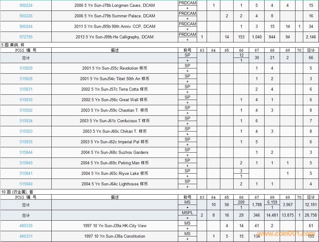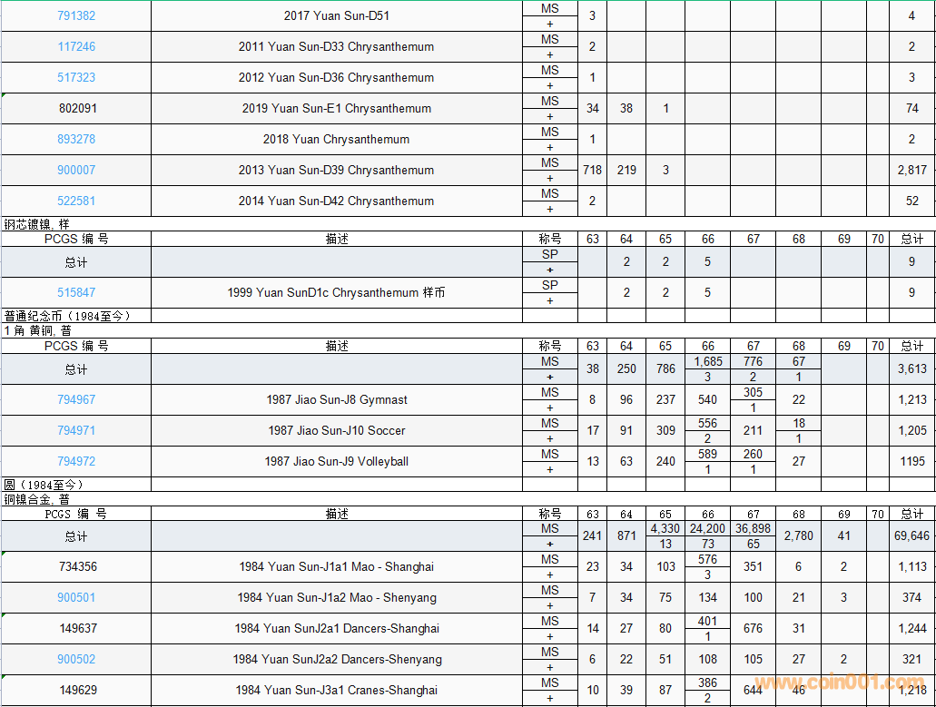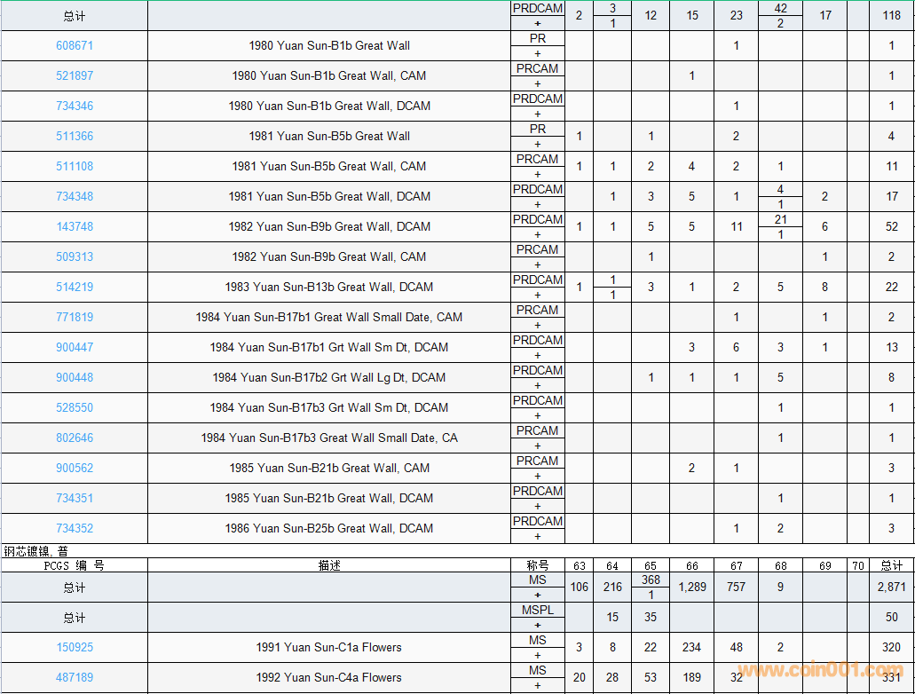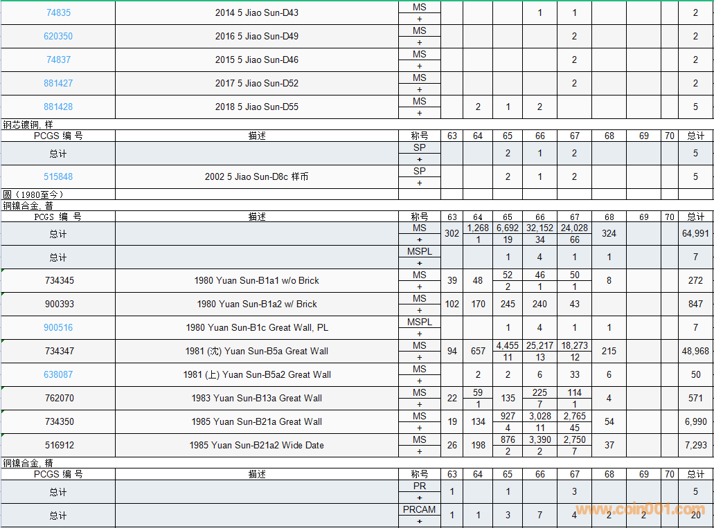 PCGS硬幣評級數(shù)量報告( ..