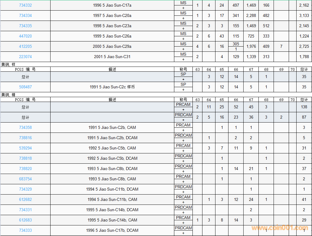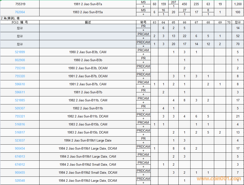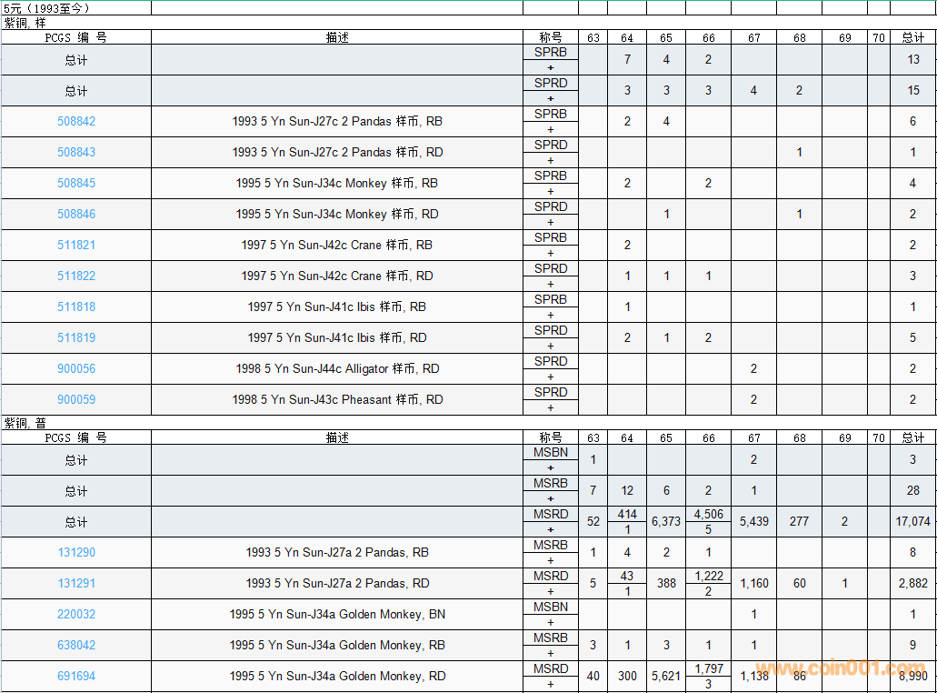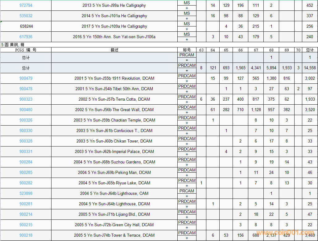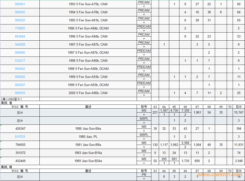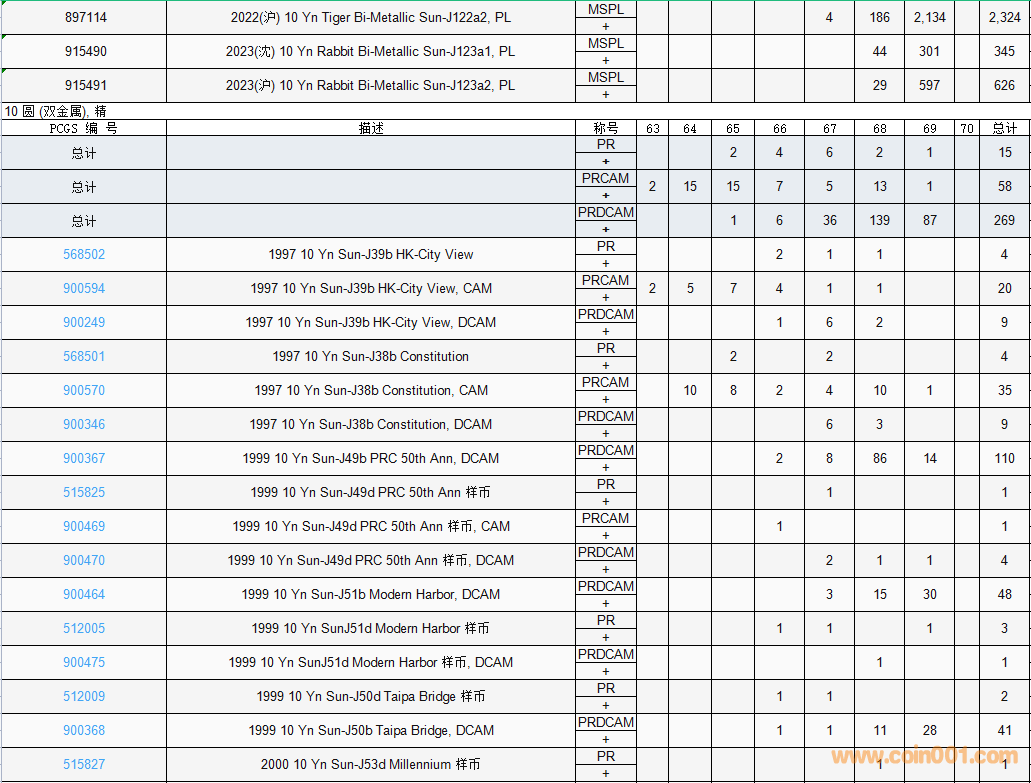 PCGS硬幣評級數(shù)量報告( ..