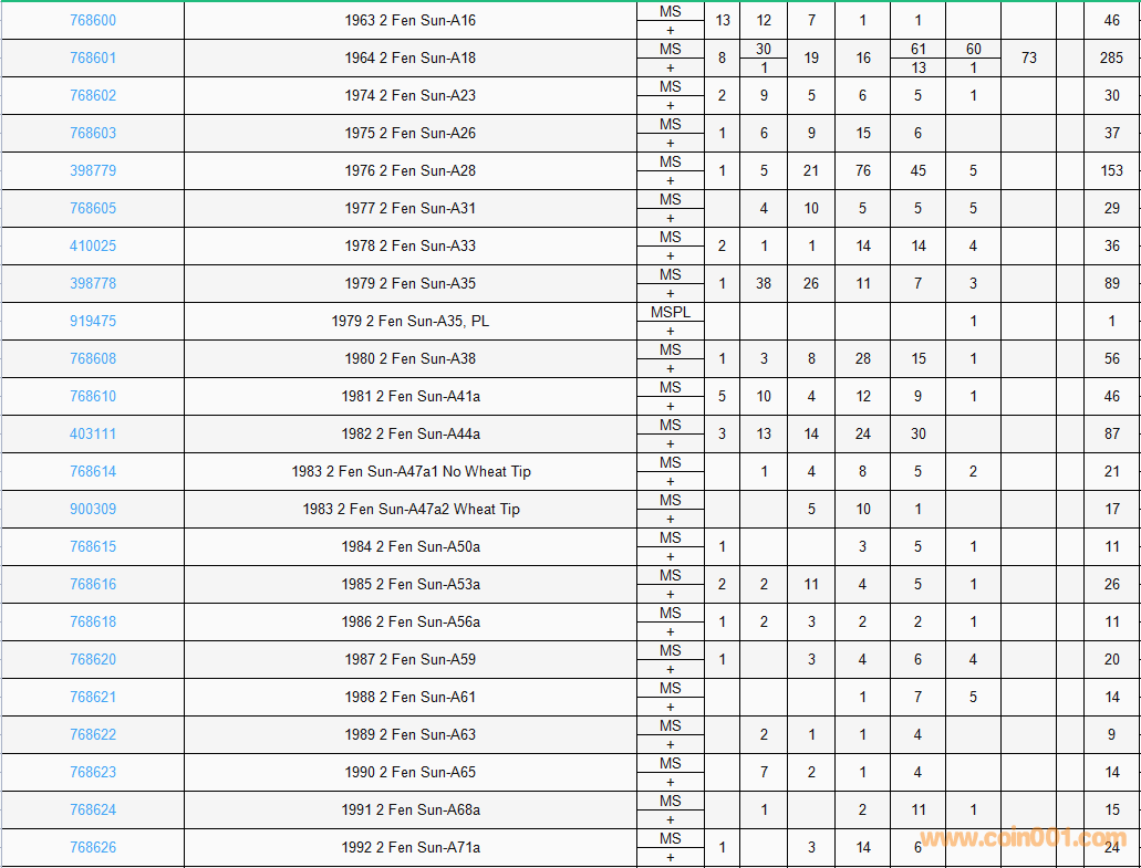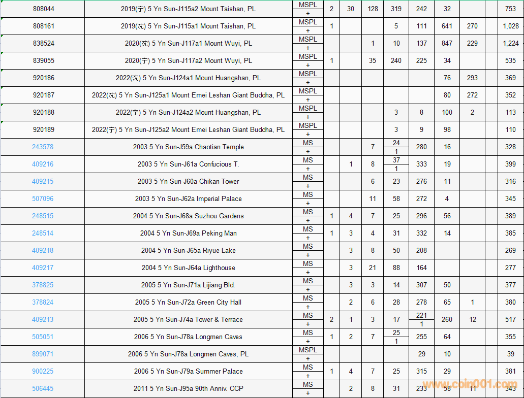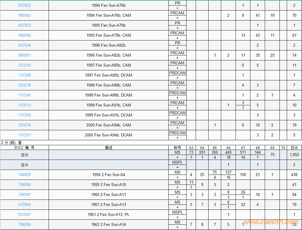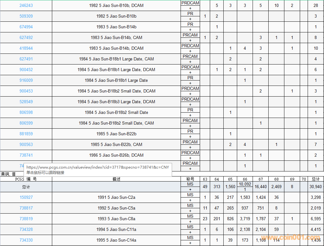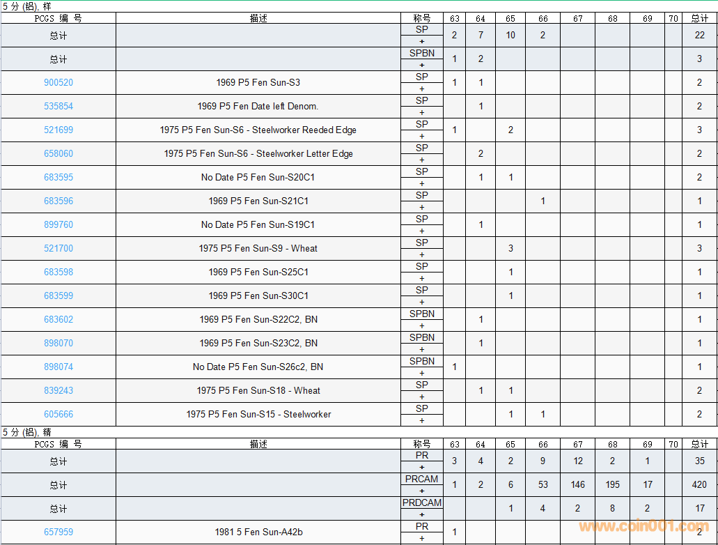 PCGS硬幣評級數(shù)量報告( ..