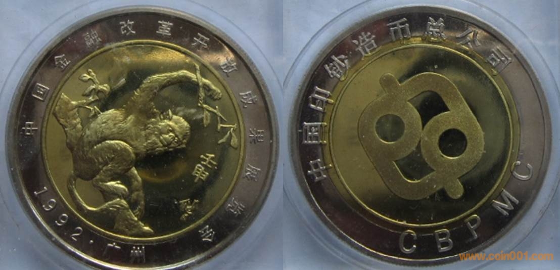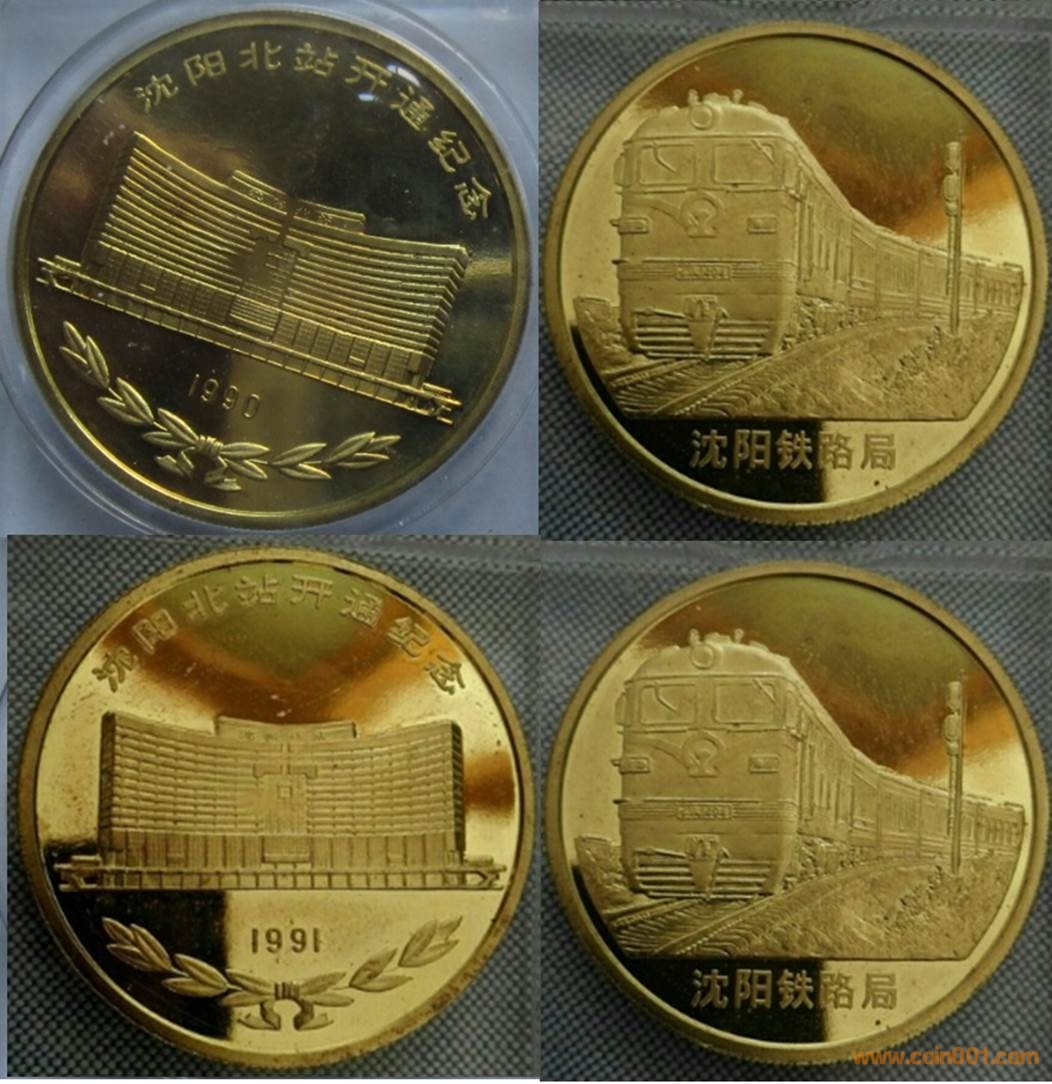 1985年制造,黃銅精制。正面為沈幣廠房,反面為疊幣圖案。此章有鍍金仿品。