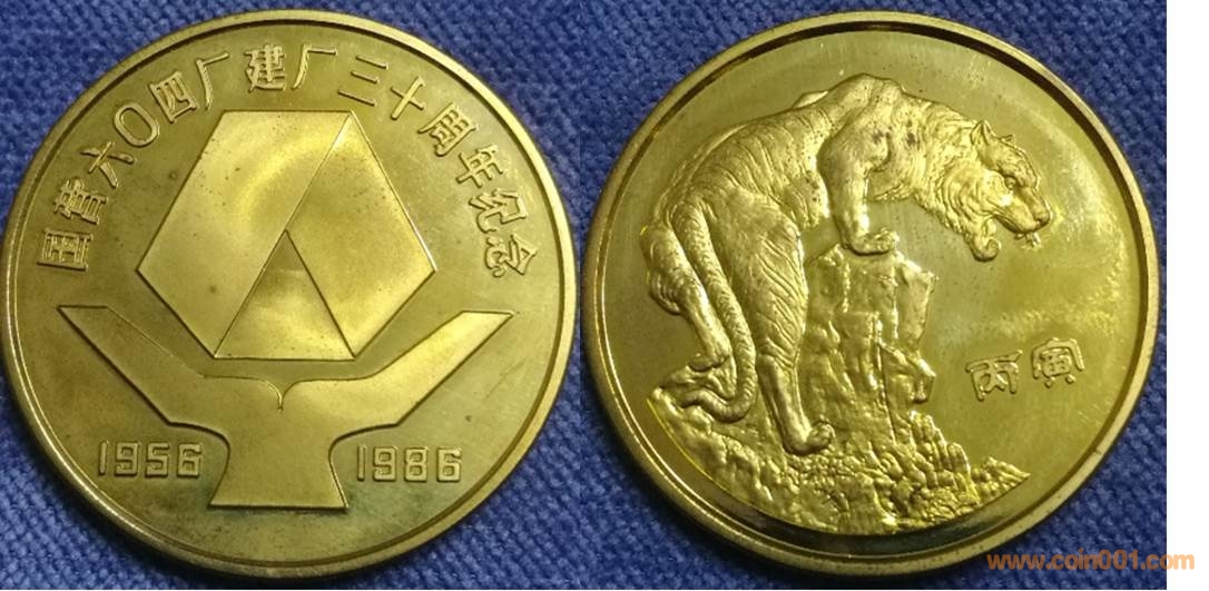1986年制造,黃銅精制.正面為圖標(biāo),反面為虎。