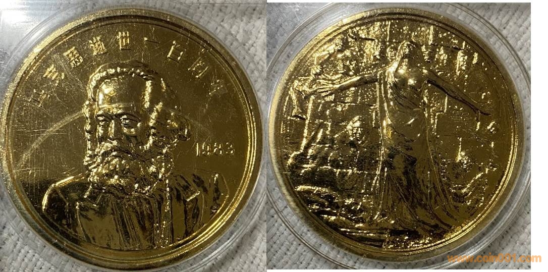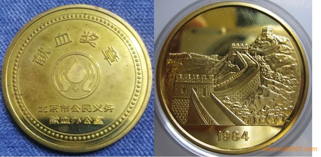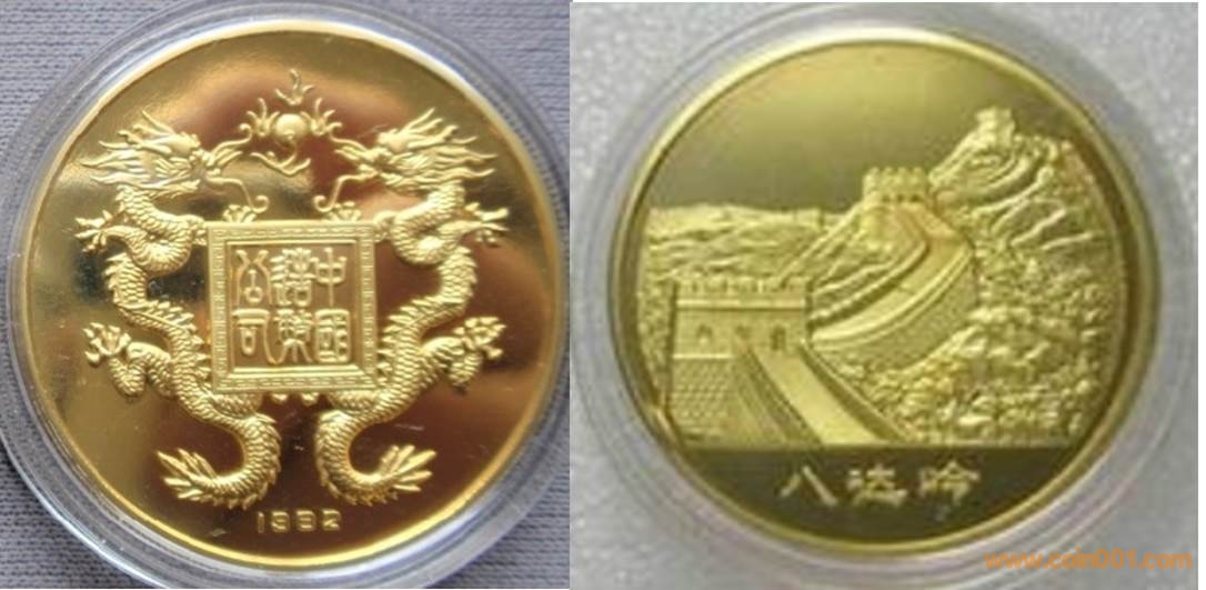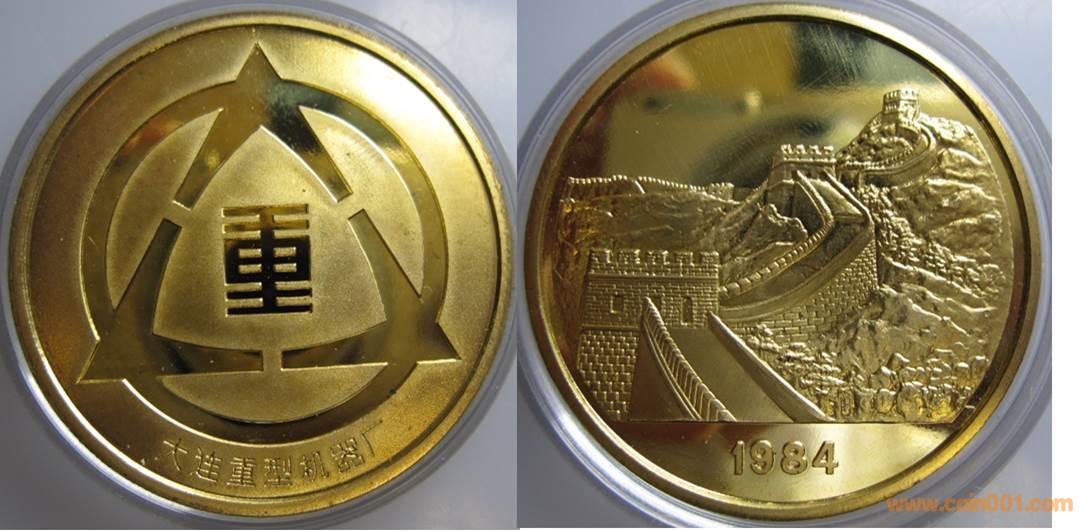 1984年制造,黃銅精制。正面為大樓,反面為長城。