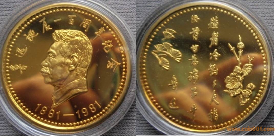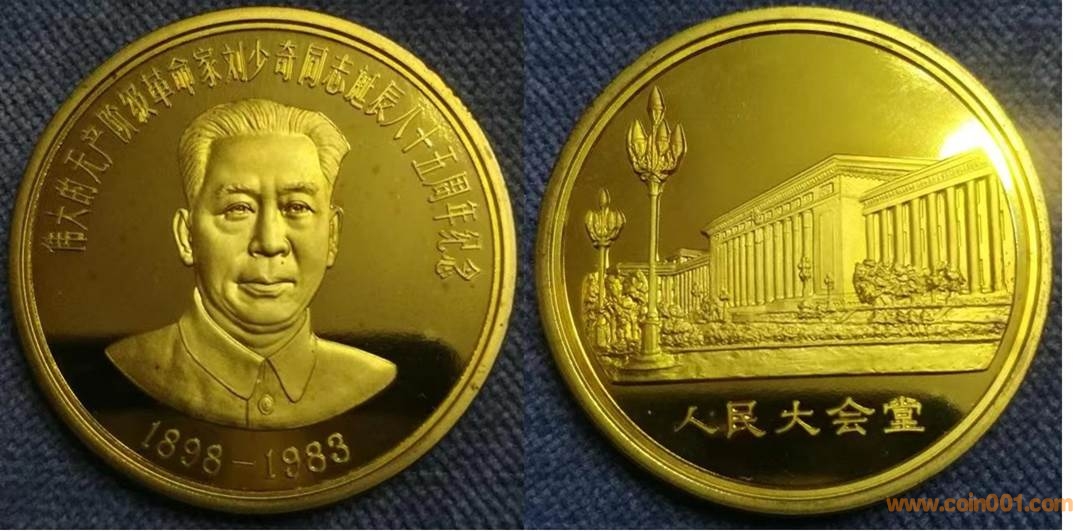 1984年制造,黃銅精制。正面為毛澤東題字,反面為建筑。