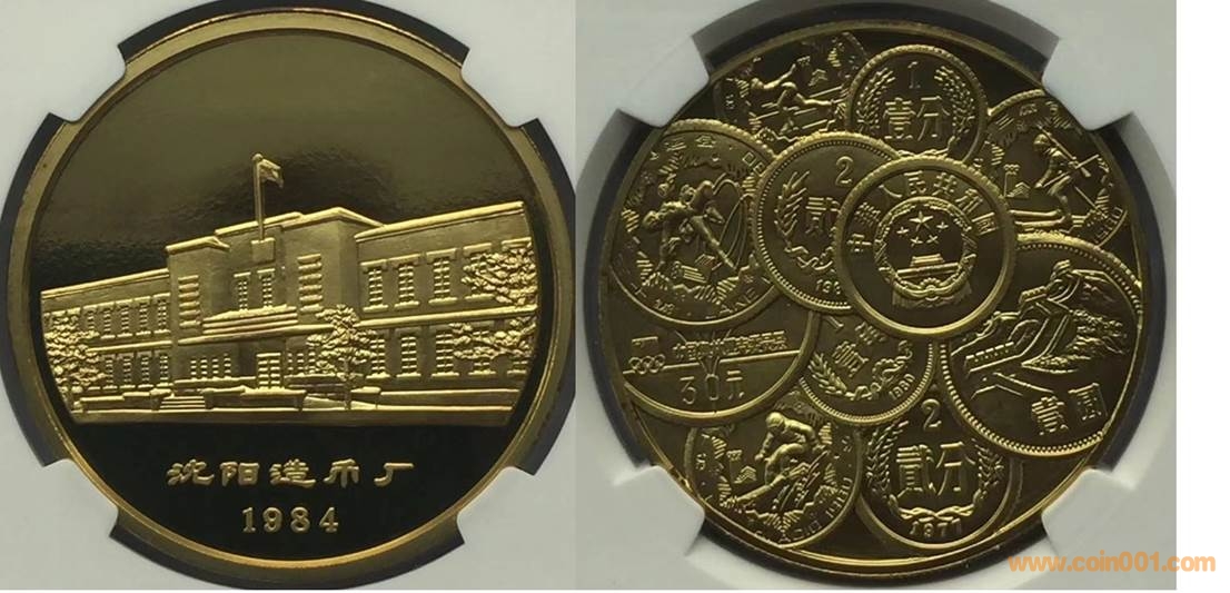 1984年制造,黃銅精制。正面為沈幣廠房,反面為疊幣。