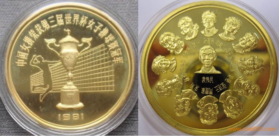 1986年制造,黃銅精制。正面為比賽場館,反面為女排扣球。