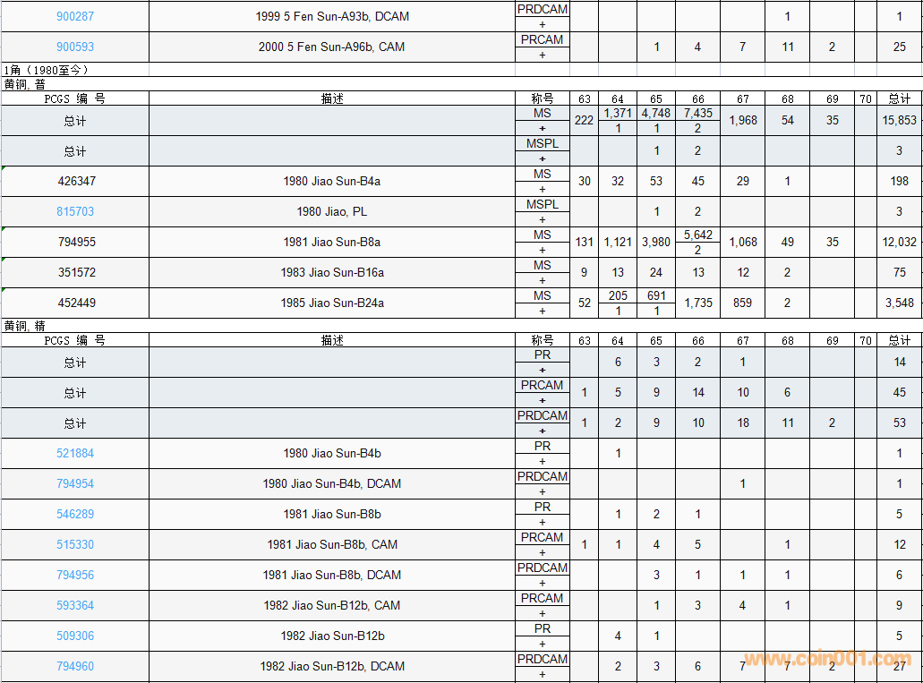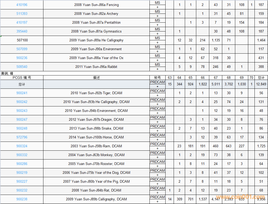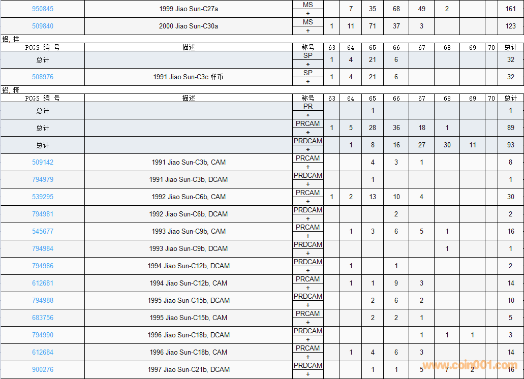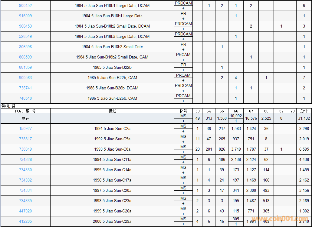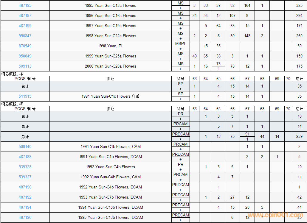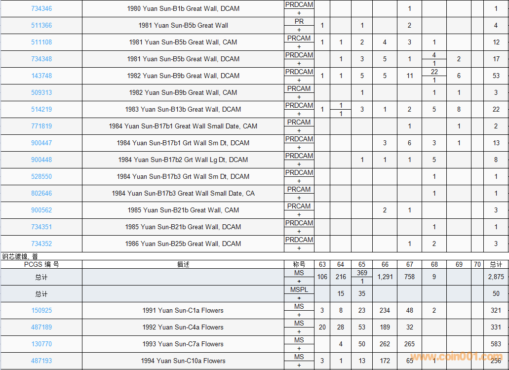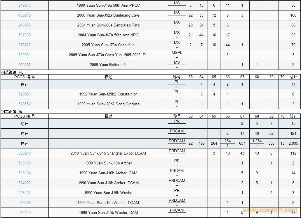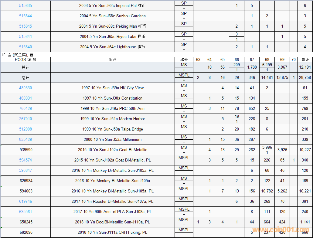 PCGS硬幣評級數(shù)量報(bào)告( ..
