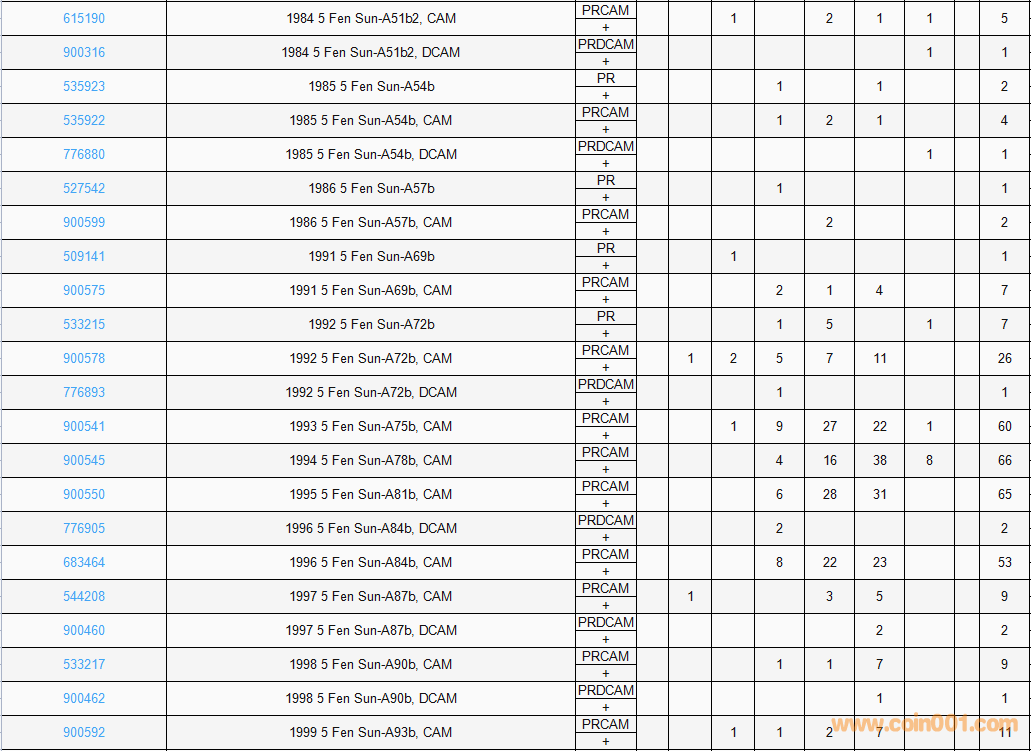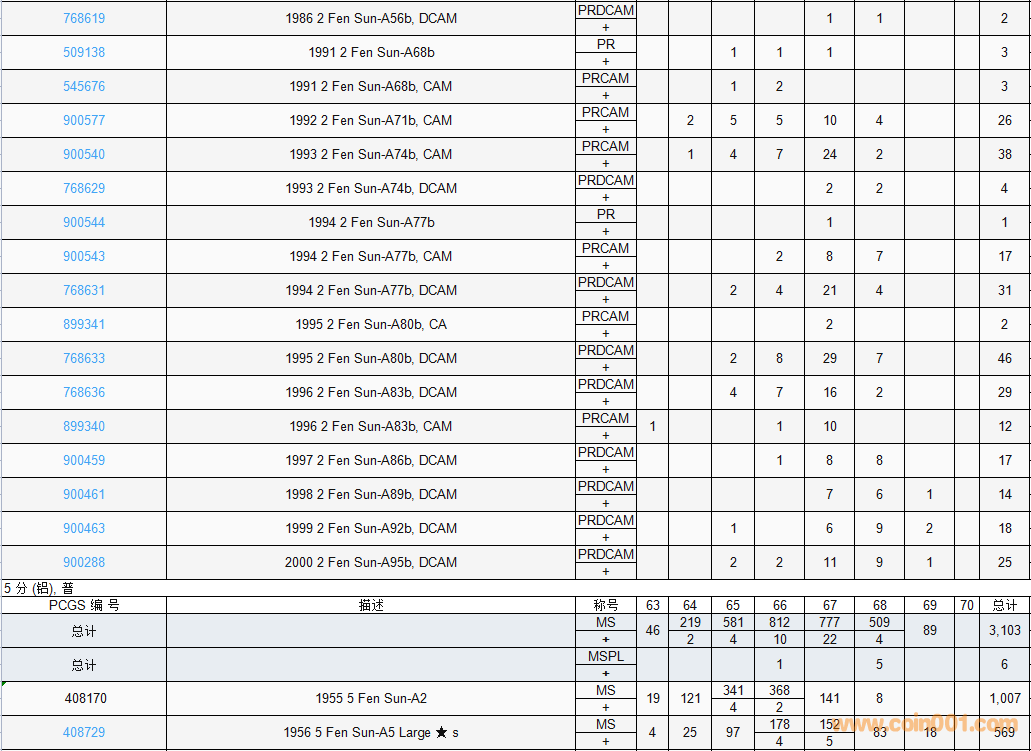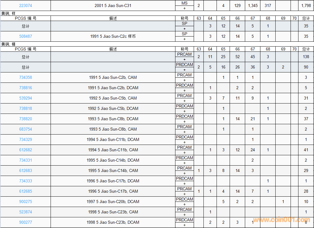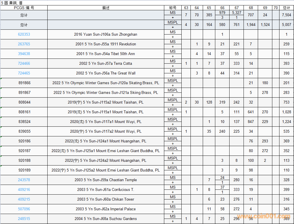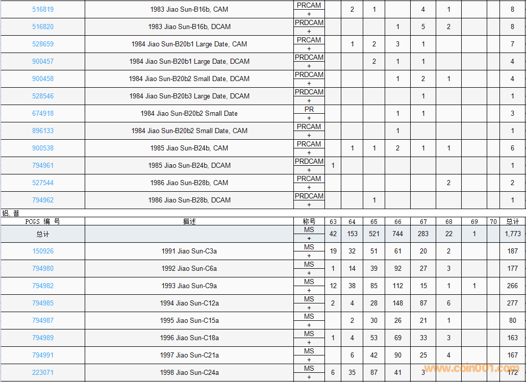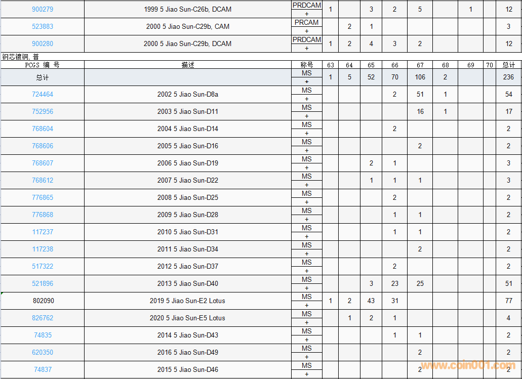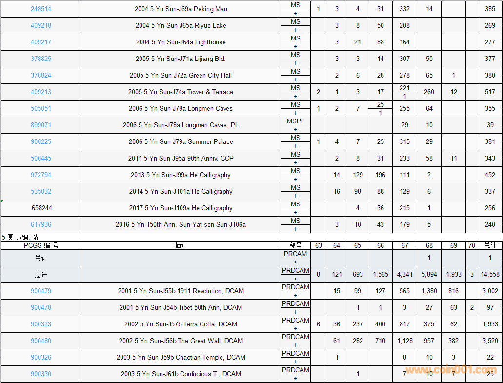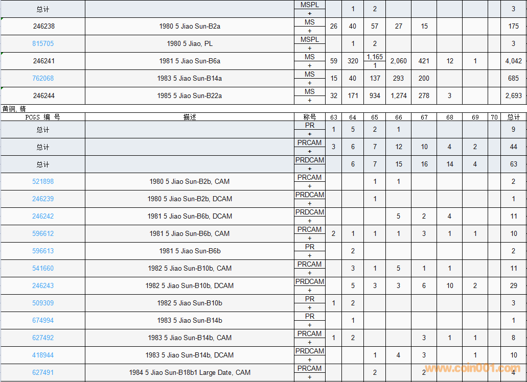 PCGS硬幣評級數(shù)量報(bào)告( ..