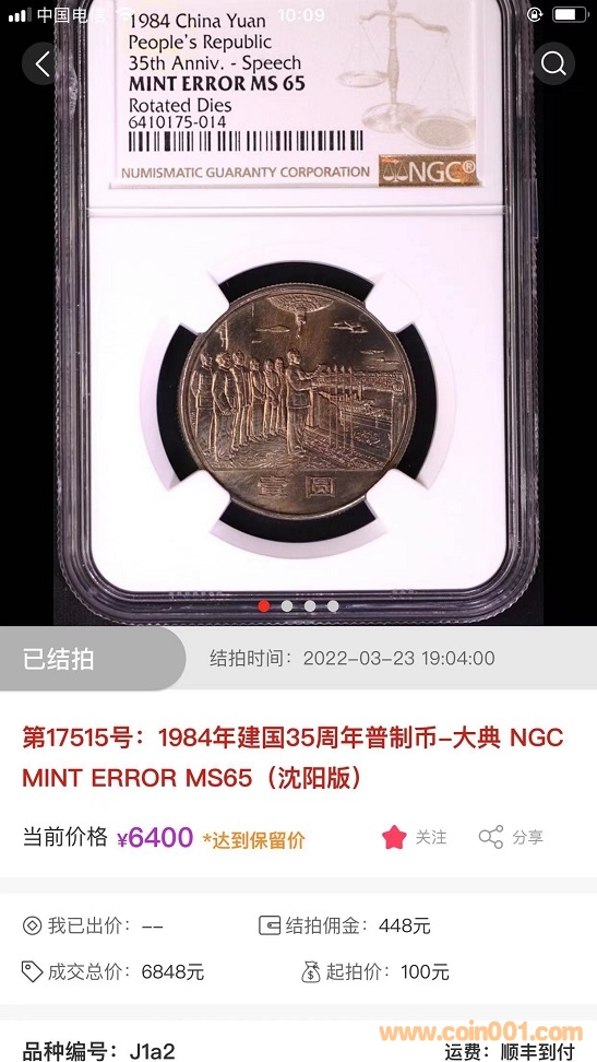 評級普通(精制)紀念幣交易