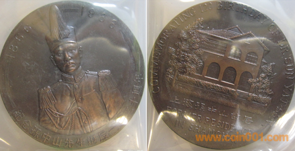 1981年制造,黃銅上色60mm上幣發(fā)行,發(fā)行量10枚內(nèi)。正面為孫中山,反面為黃花崗紀(jì)念碑。
