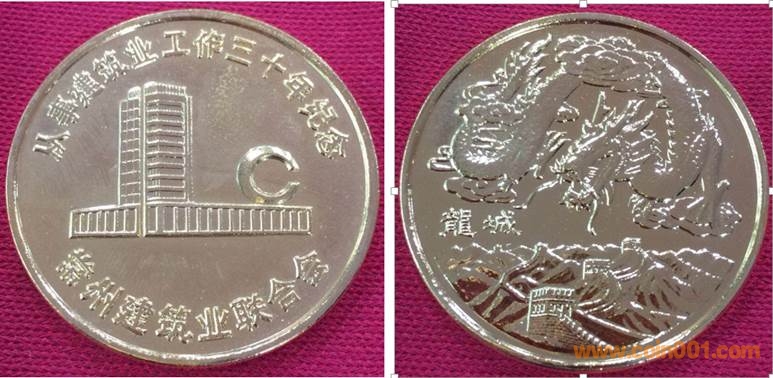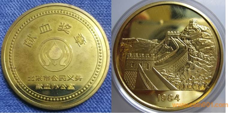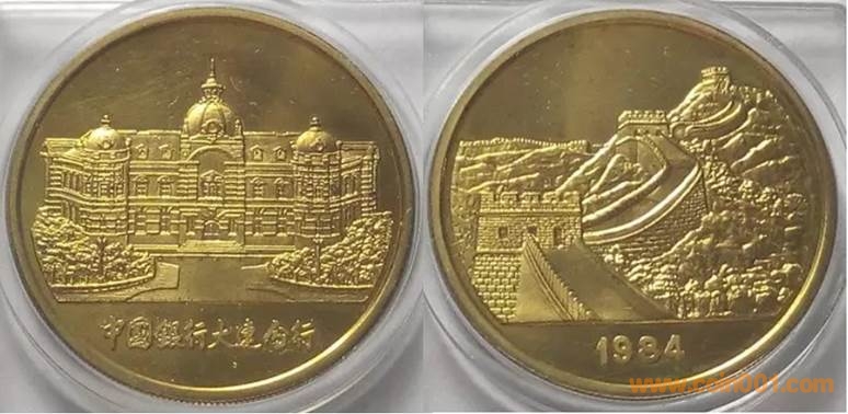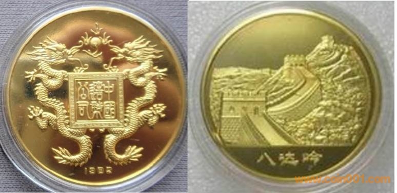 1984年制造,黃銅精制38.6mm上幣發(fā)行。正面為主題文字,反面為長城。